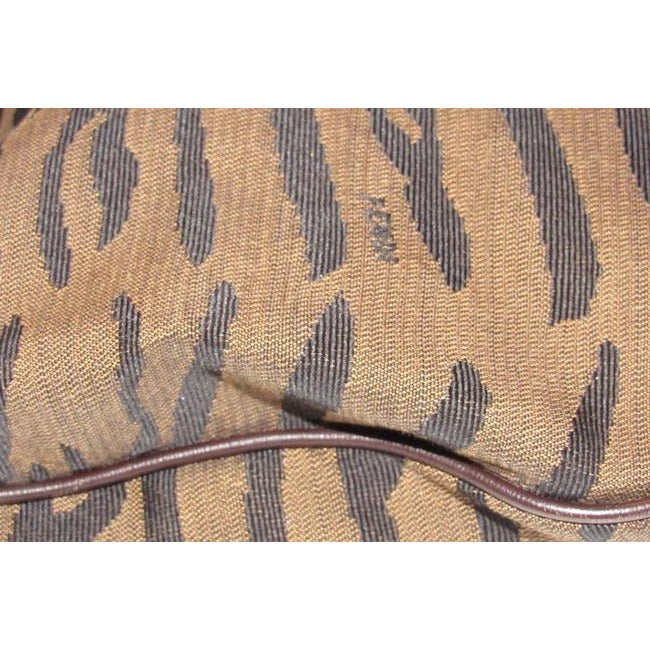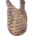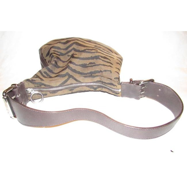 Fendi Large Oyster Style Shoulder Purse Brown And Black Tiger Print Canvas And Brown Leather Leather