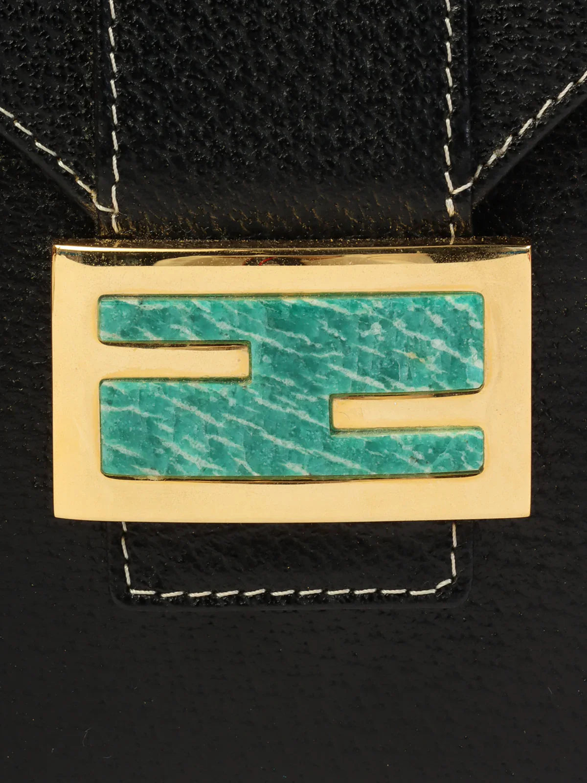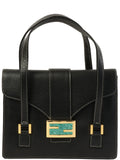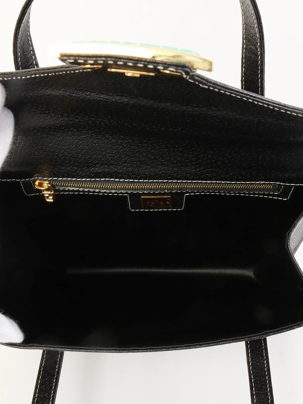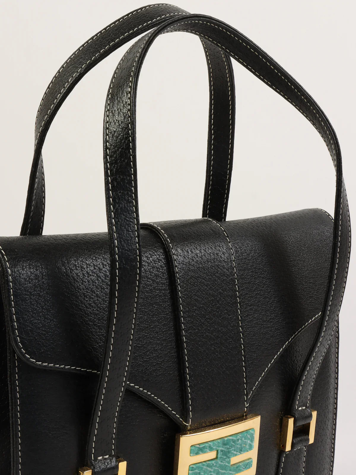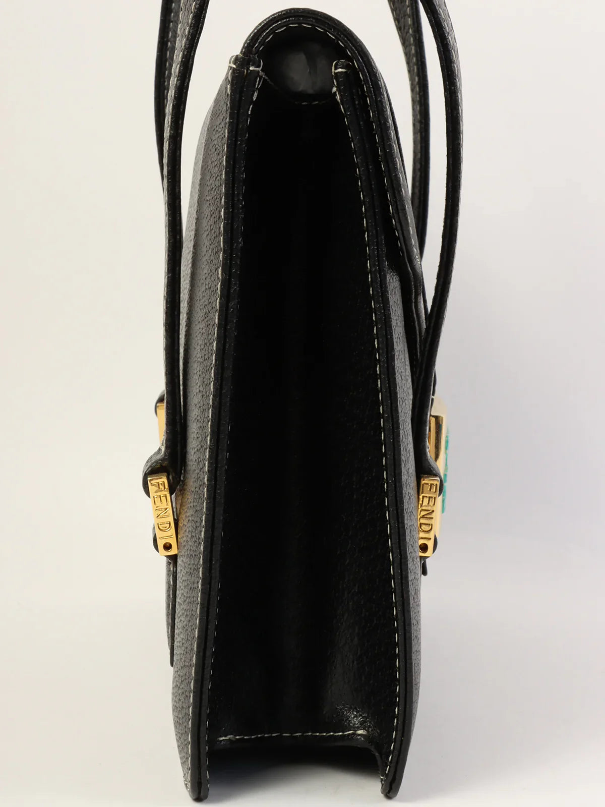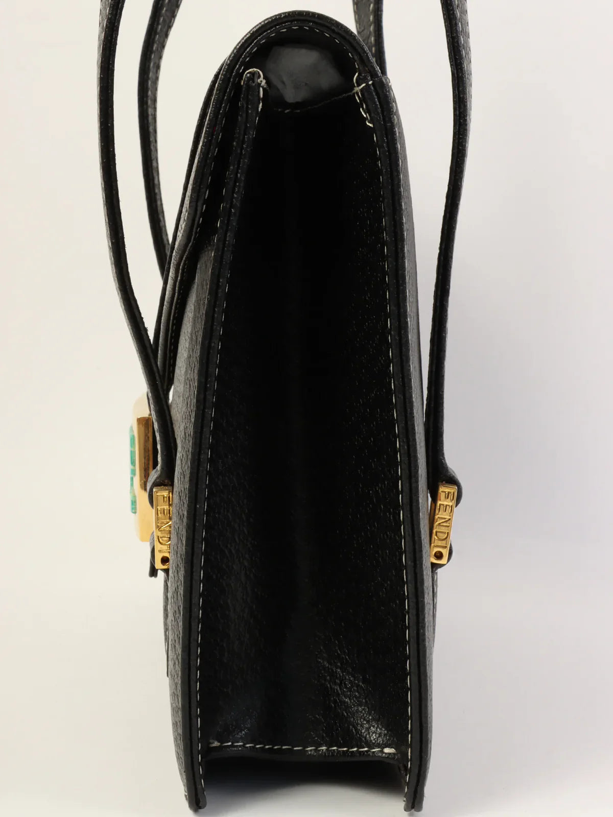 FENDI Leather Enamel Logo Plate Top Handle Bag Black/Green