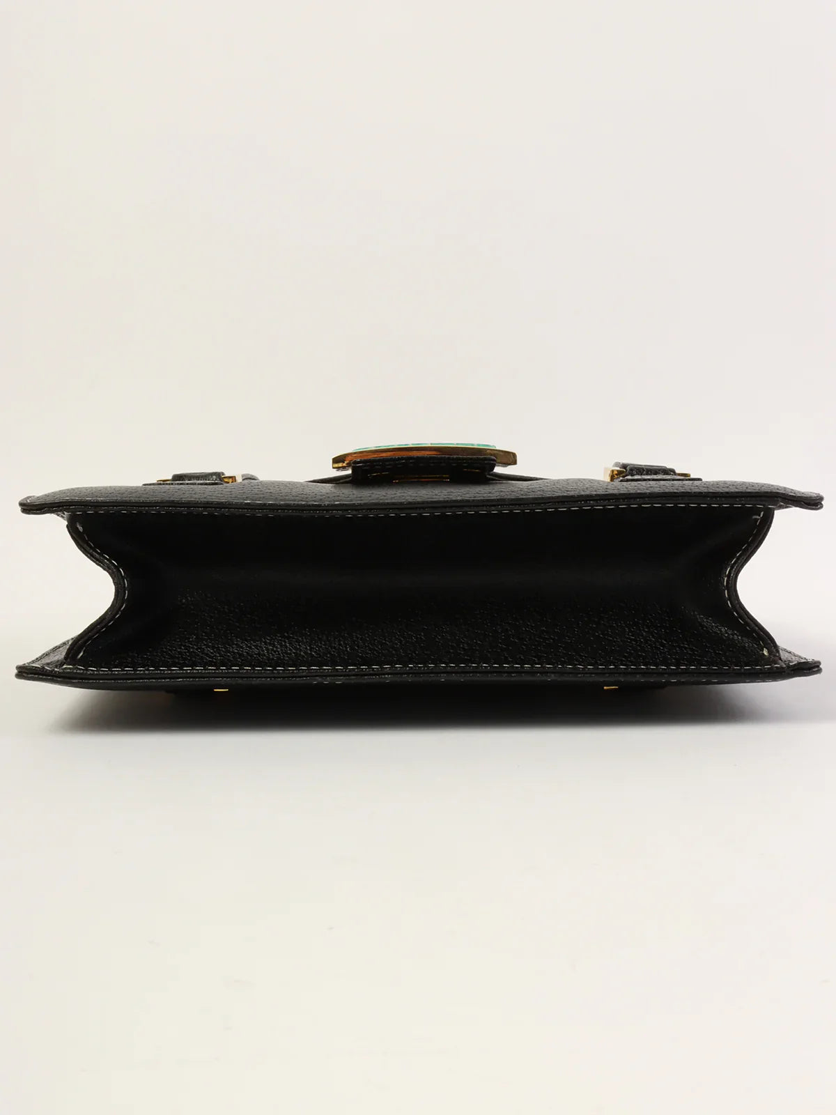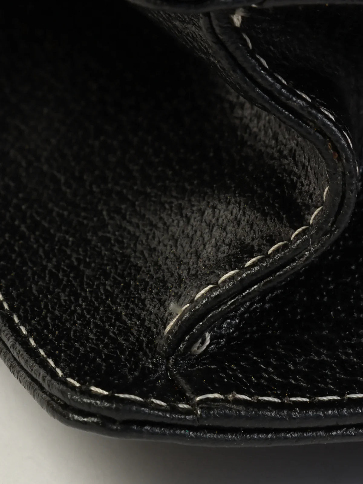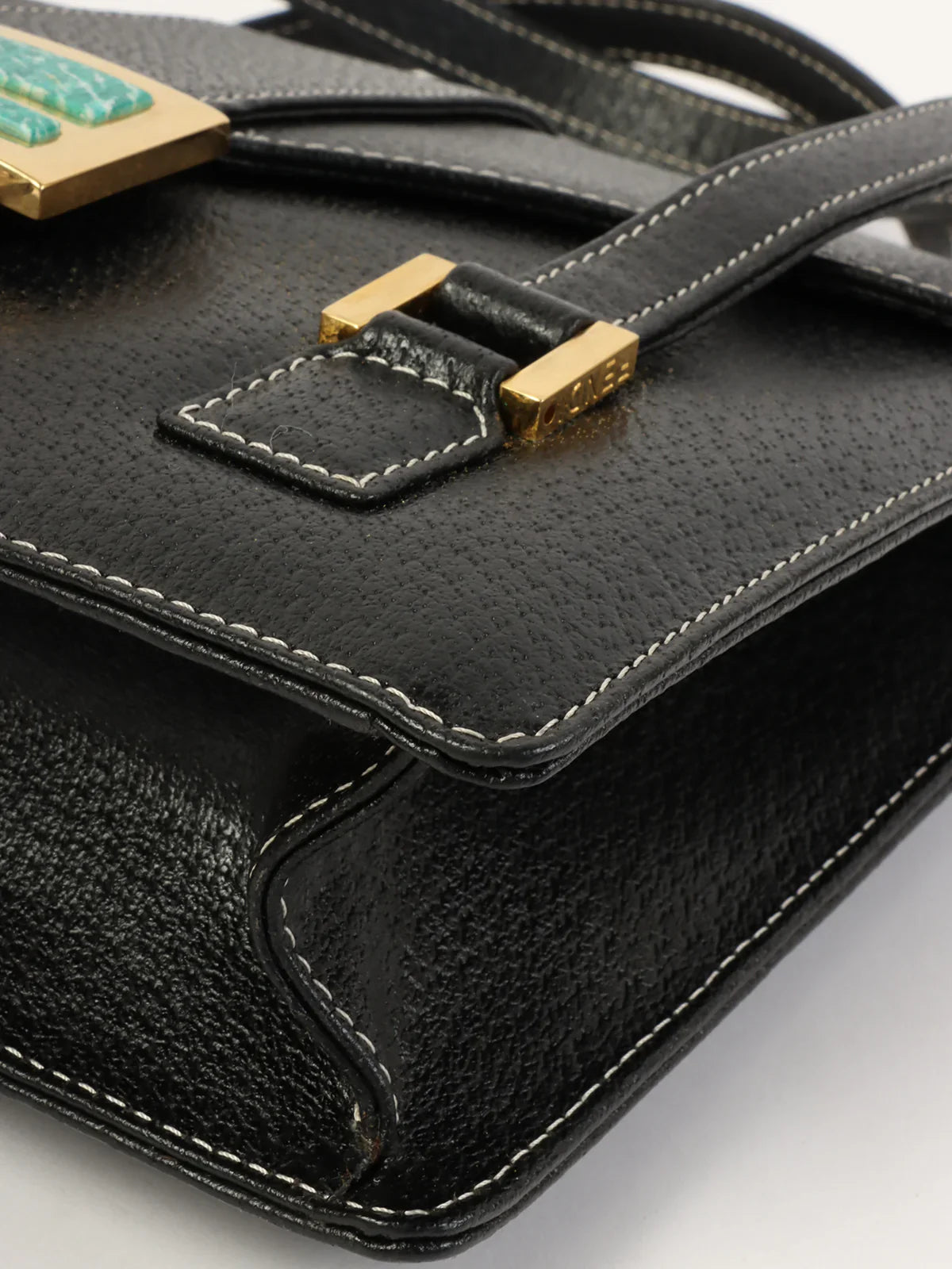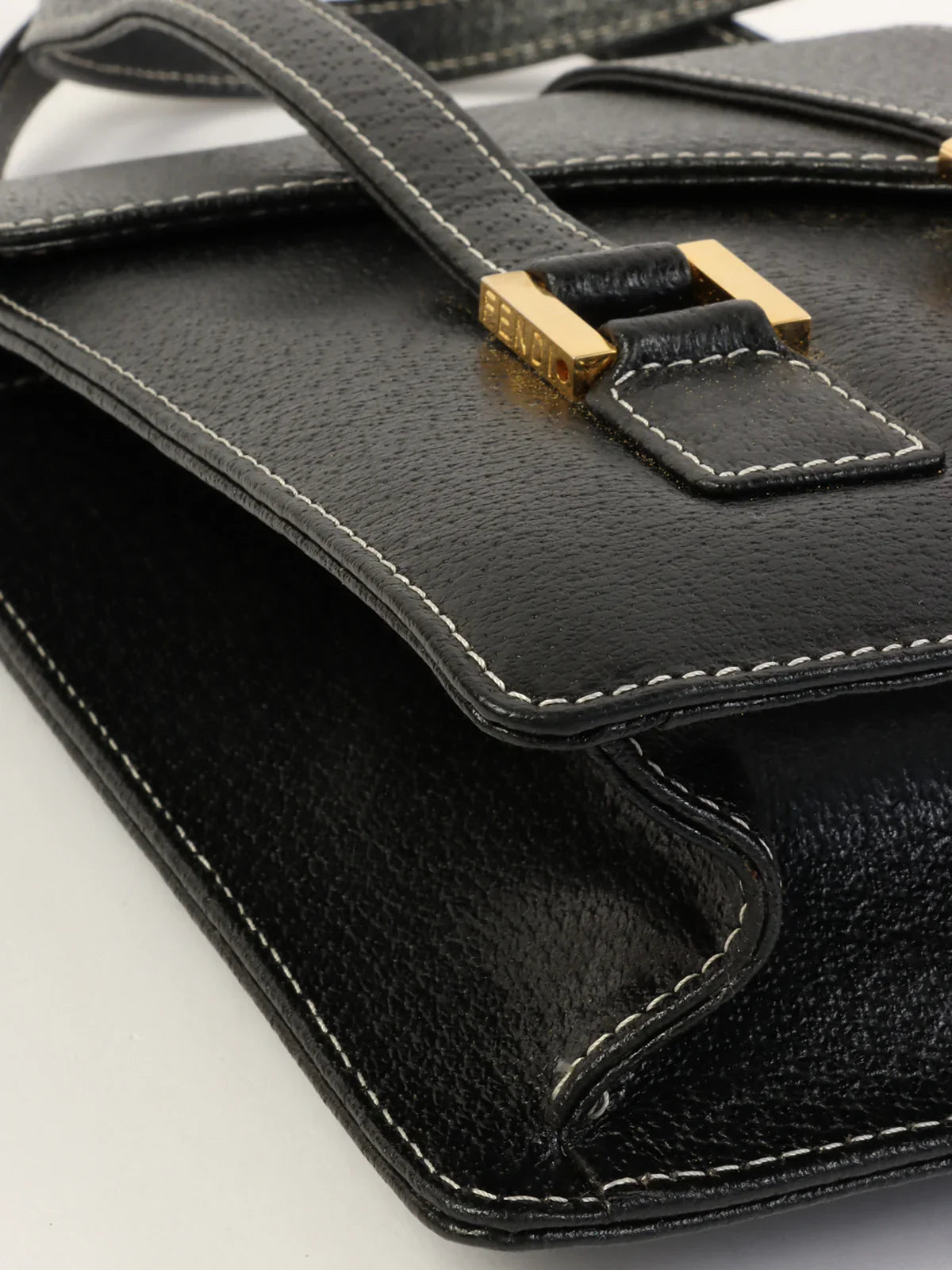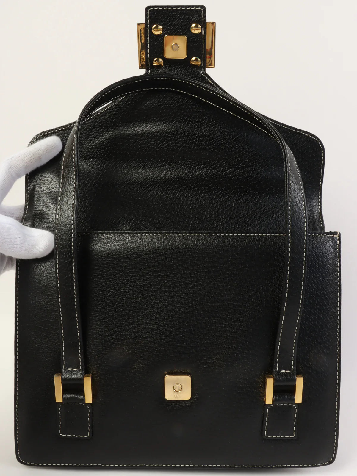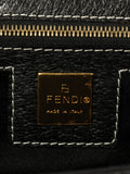 FENDI Leather Enamel Logo Plate Top Handle Bag Black/Green
