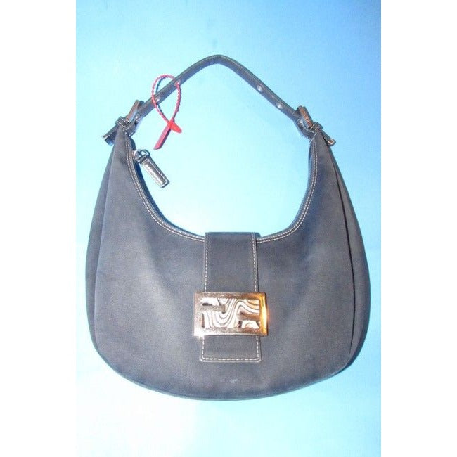 For sale is an amazing, Fendi, heavy dark rinse denim fabric and leather, zip top, hobo style, shoulder purse with chrome hardware and a leather strap with a bold chrome and multicolored enamel, FF logo, snap closure! This style purse by the Italian design house is timeless!