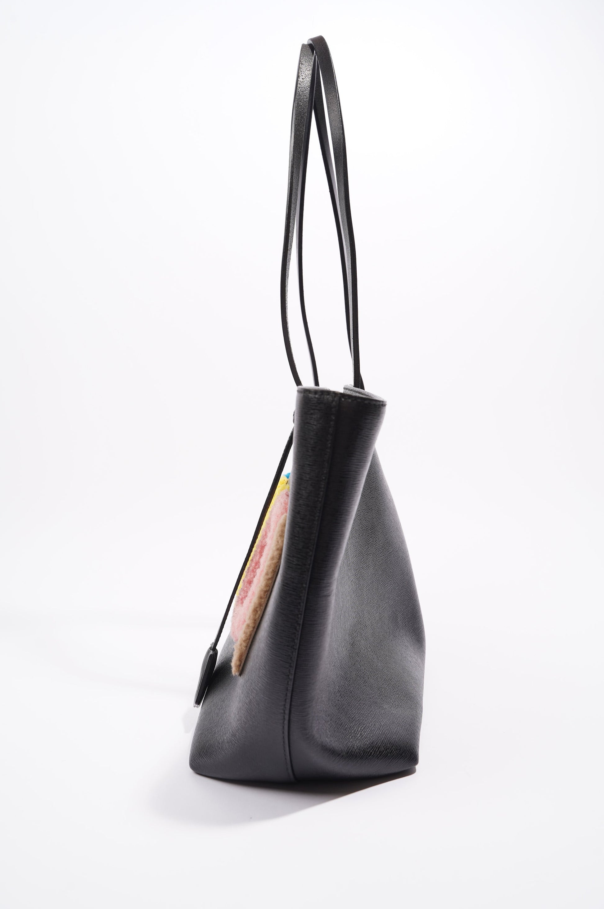 Fendi Logo Roll Tote Black Leather / Shearling Large