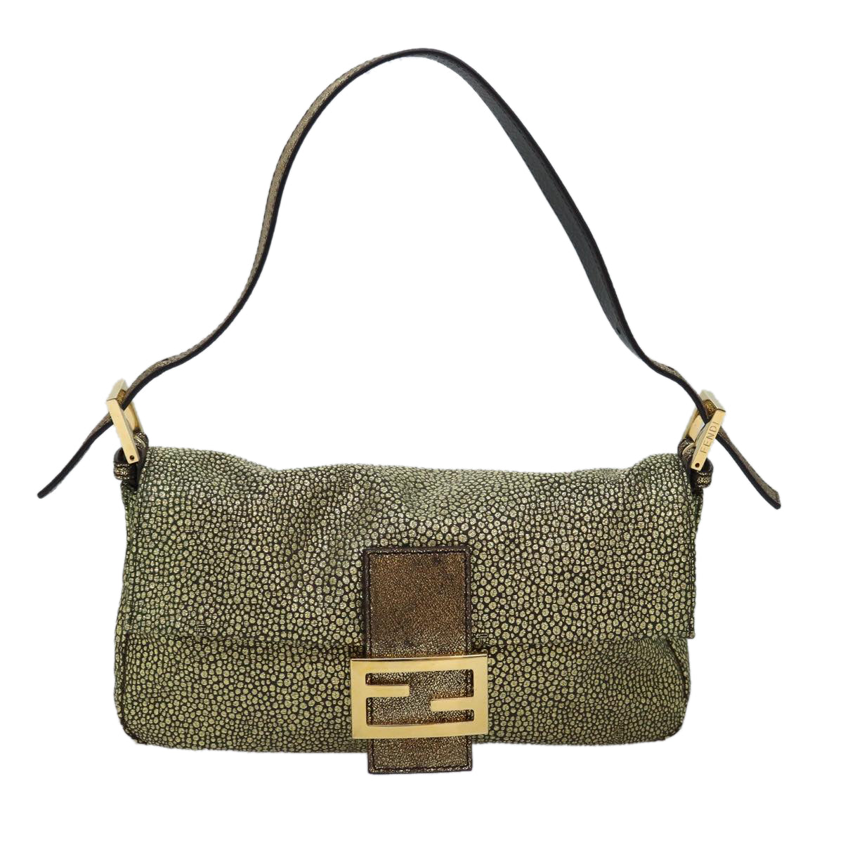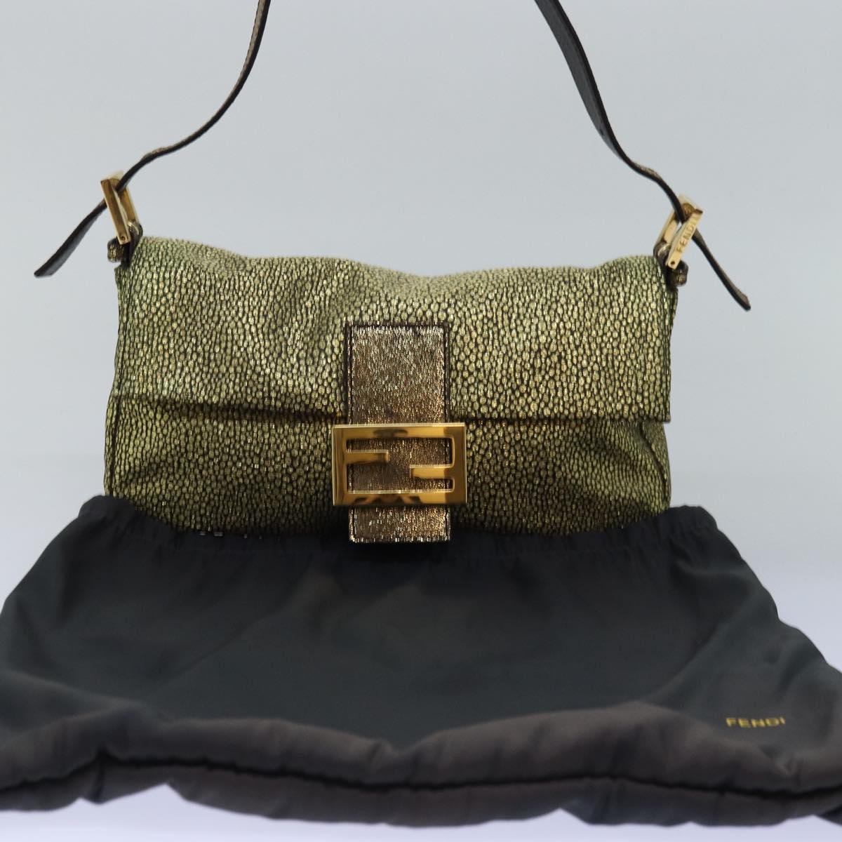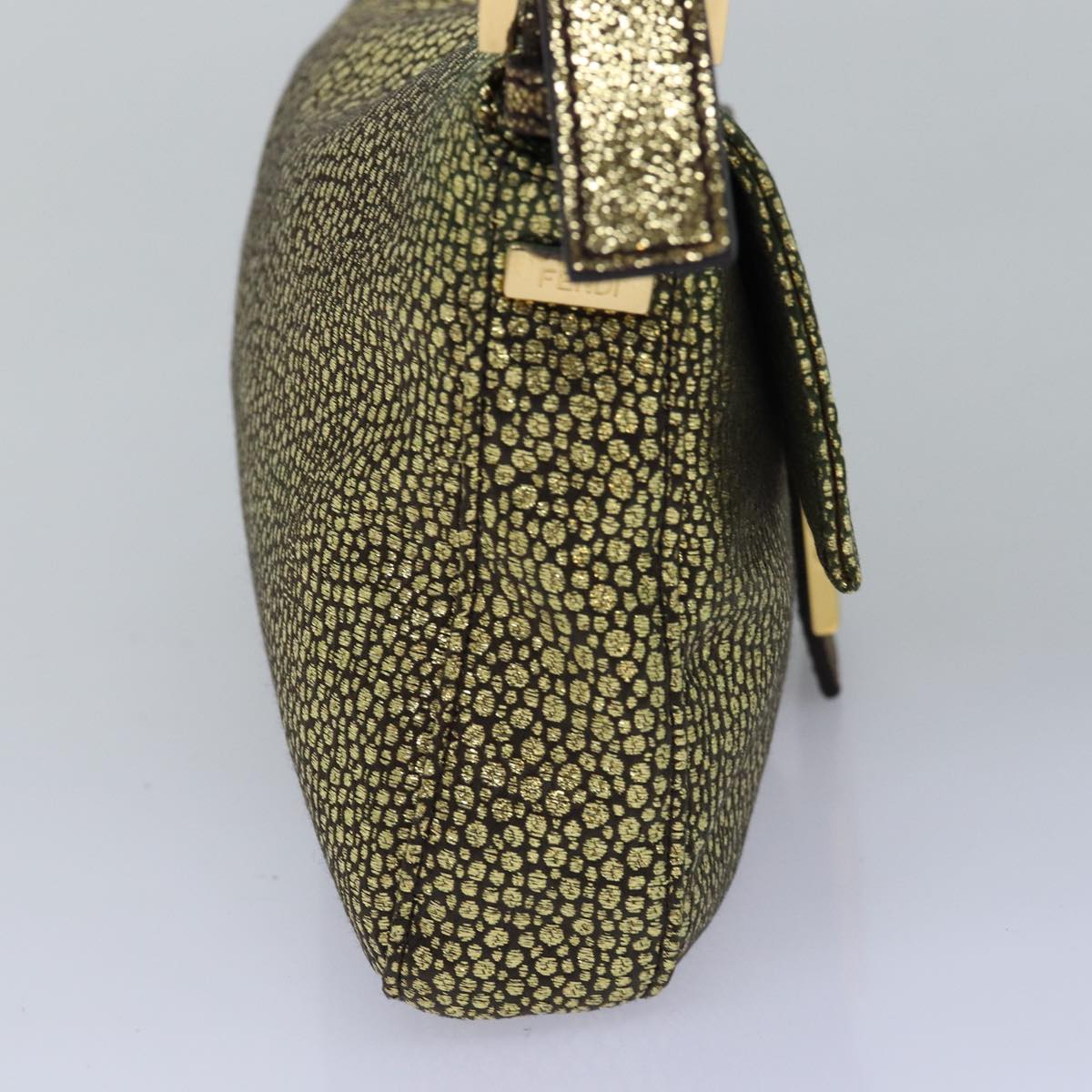 FENDI Mamma Baguette Shoulder Bag Canvas Gold Tone 40883613 Auth 74891A