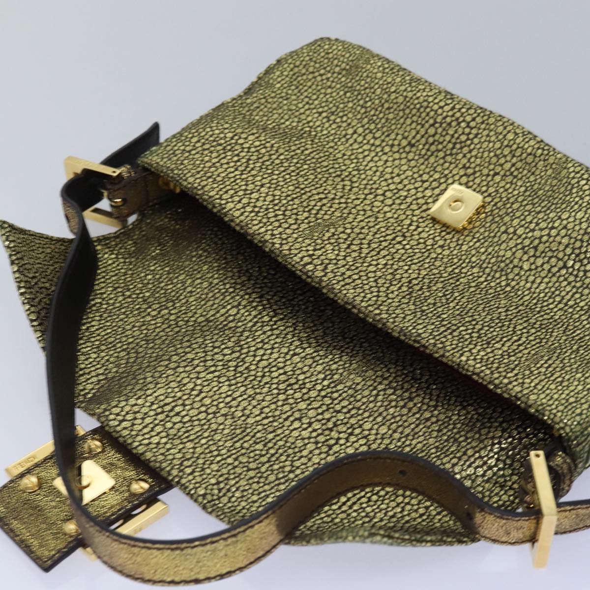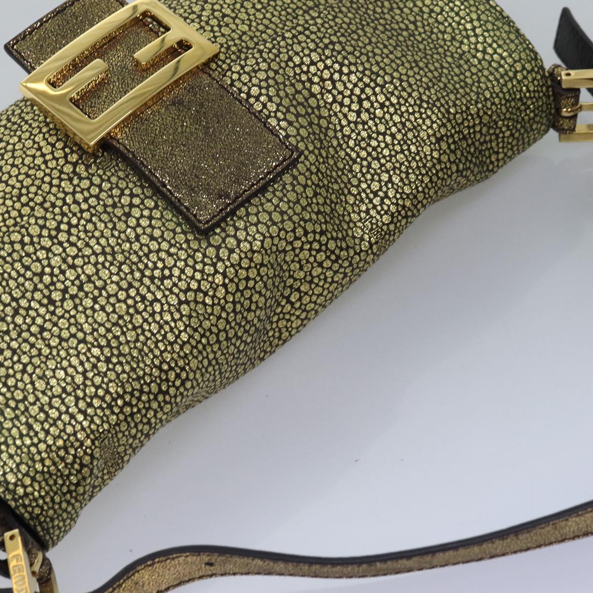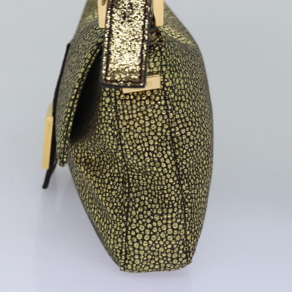 FENDI Mamma Baguette Shoulder Bag Canvas Gold Tone 40883613 Auth 74891A