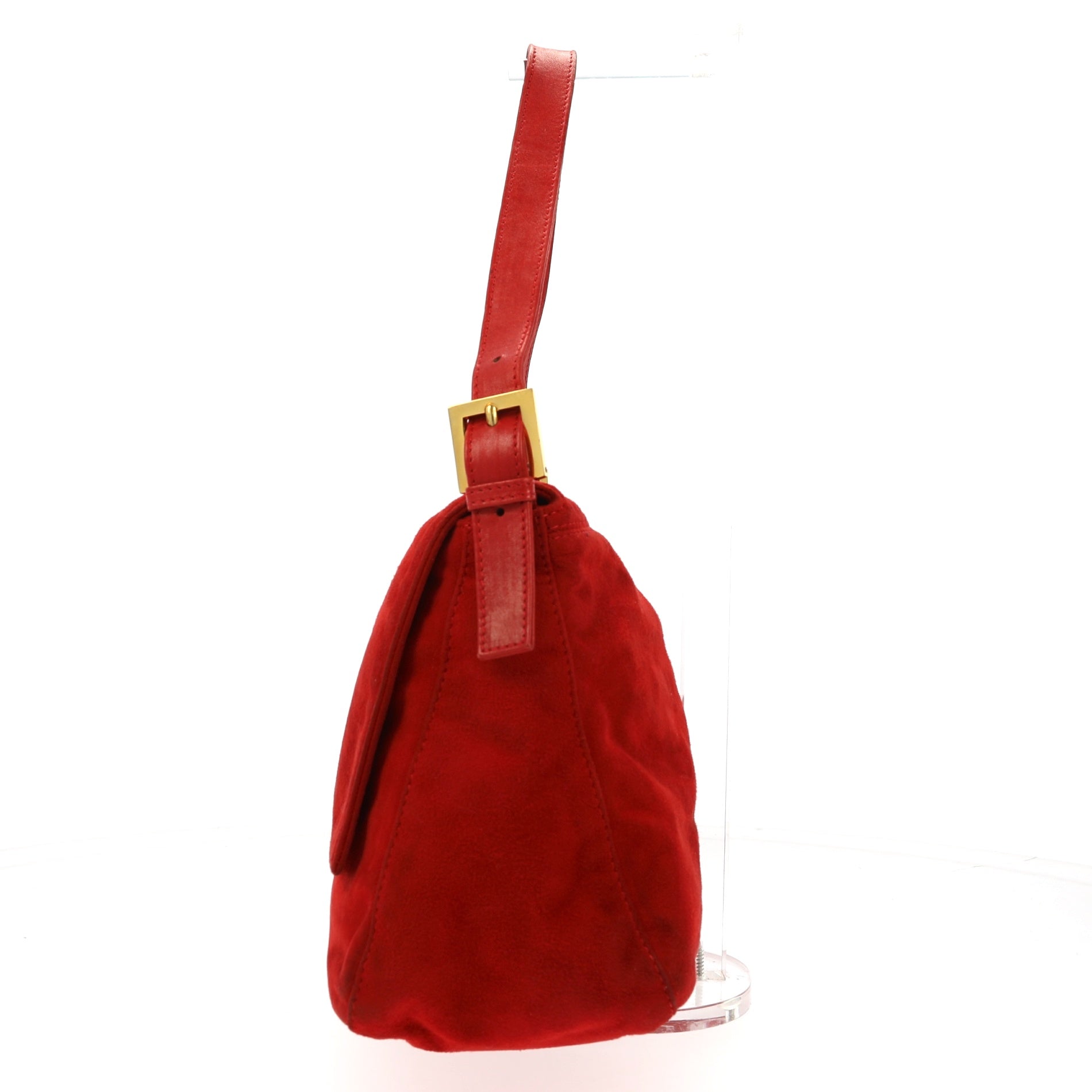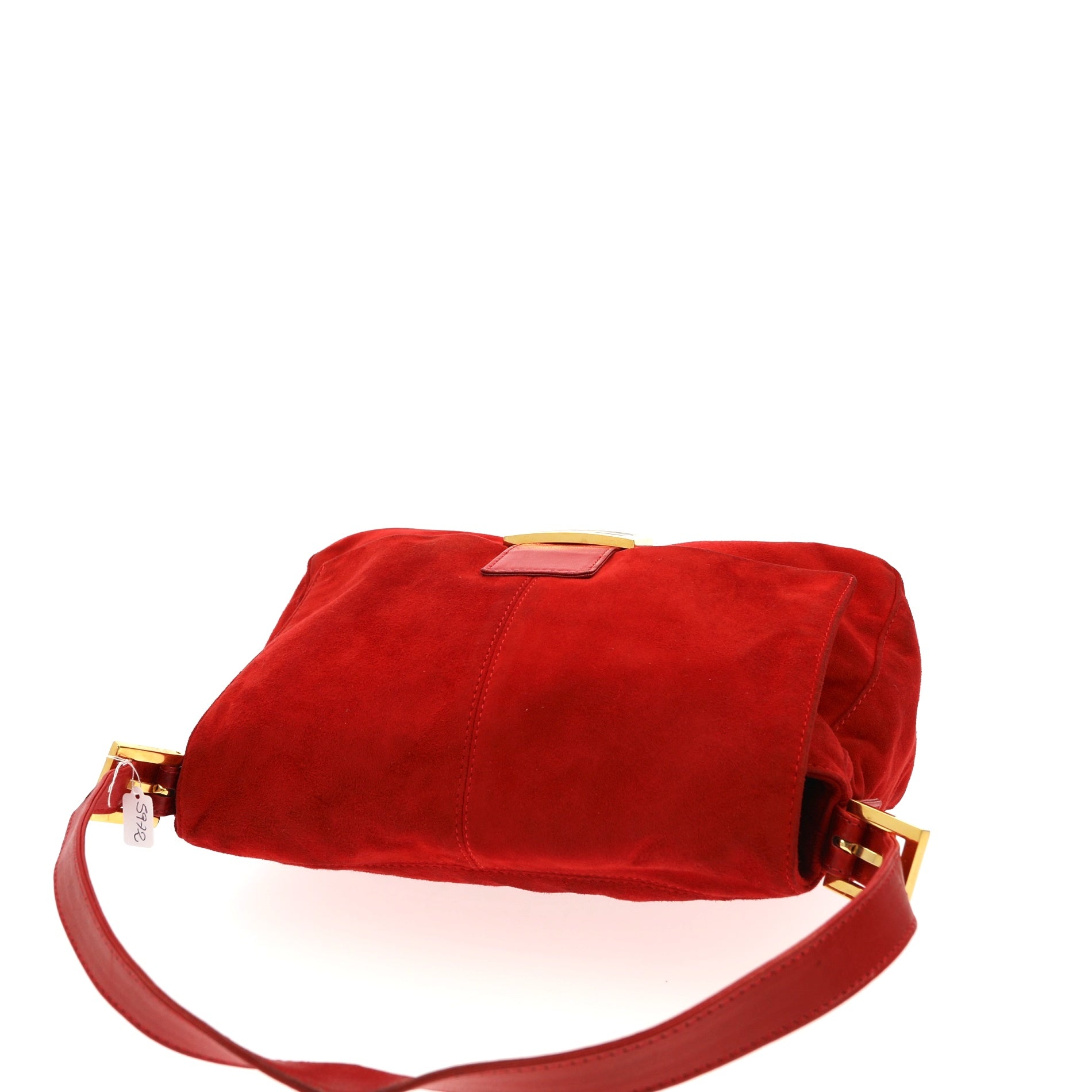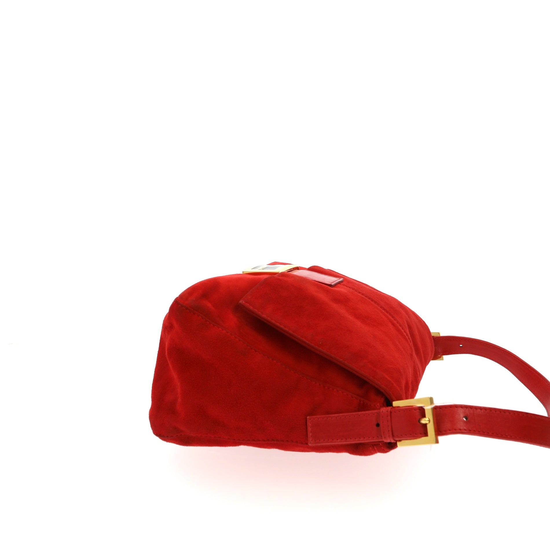 FENDI Mamma Baguette Shoulder Bag in Red Suede
