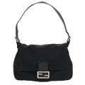 FENDI Mamma Baguette Shoulder Bag Nylon Black Silver Auth ep5493