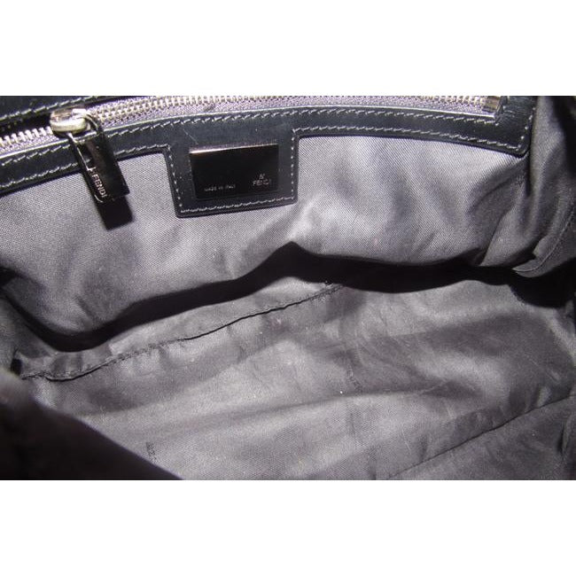 It has a back slot pocket and one main compartment with an interior zip pocket. The lining is the traditional, black fabric Fendi is known for using and it is very clean. The piping, strap, all leather areas, and hardware are excellent! Inside, the black fabric interior shows little to no use at all. In the pocket there is a leather tag with the serial #22018BR001JQ5048.