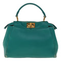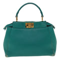FENDI Micro Peek A Boo Hand Bag Leather Turquoise Blue Auth 64807