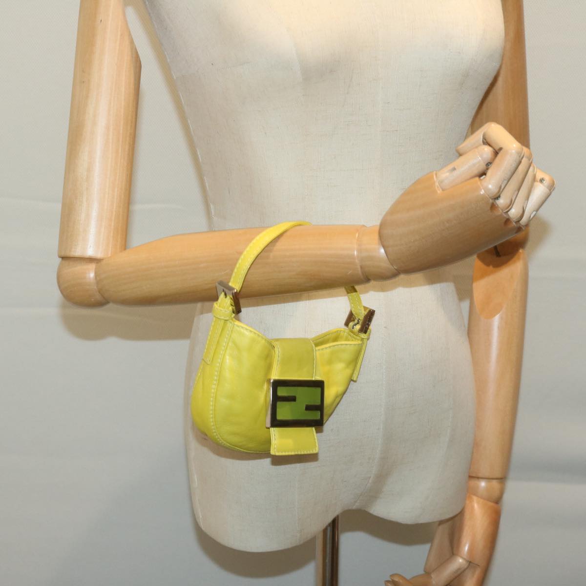 FENDI Mini Croissant Hand Bag Leather Yellow Auth yk10174A