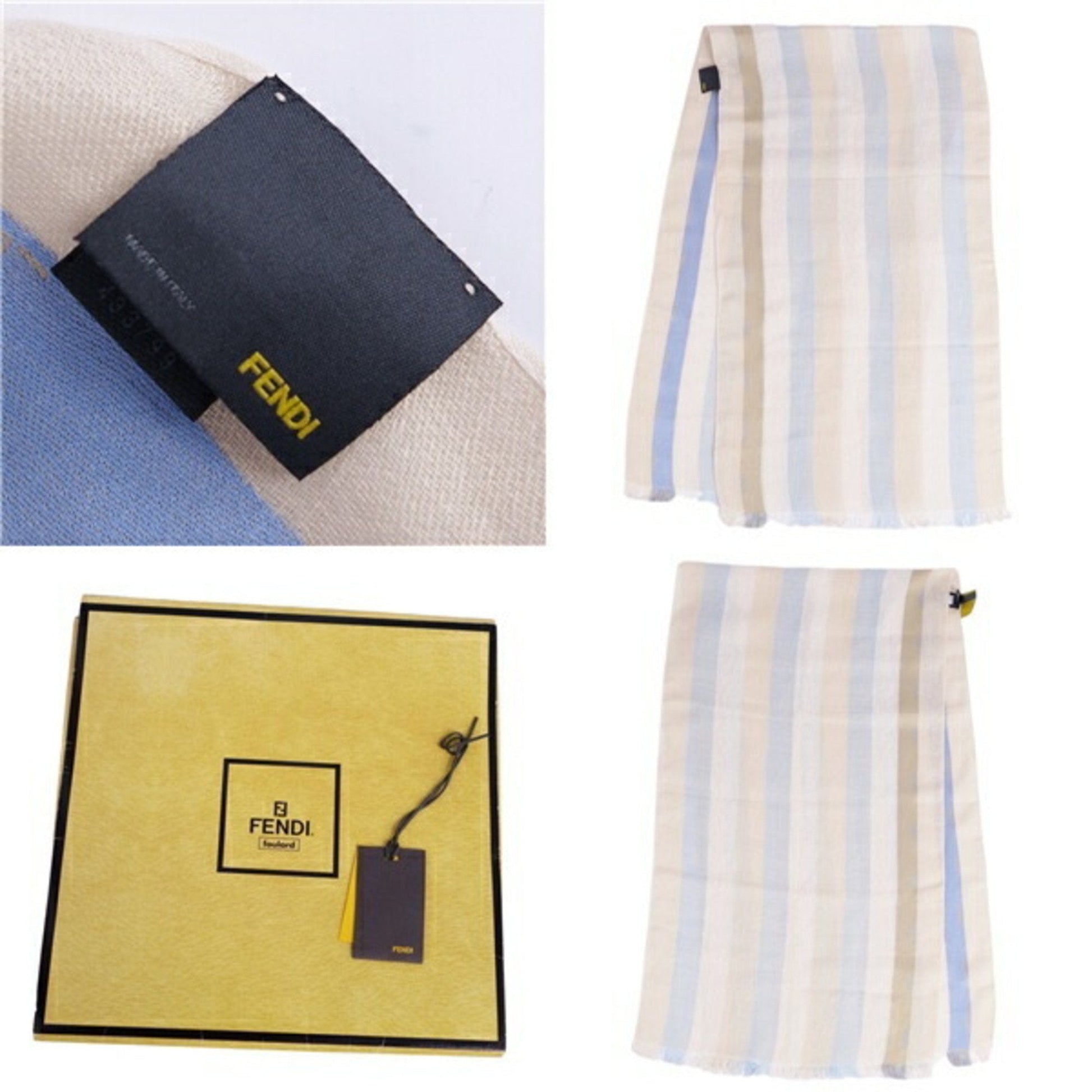 Fendi muffler stole striped pattern linen silk ladies beige blue