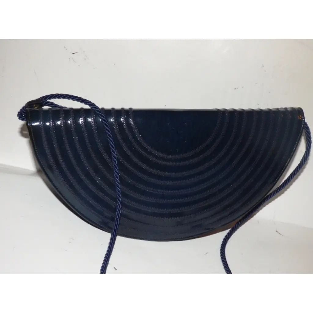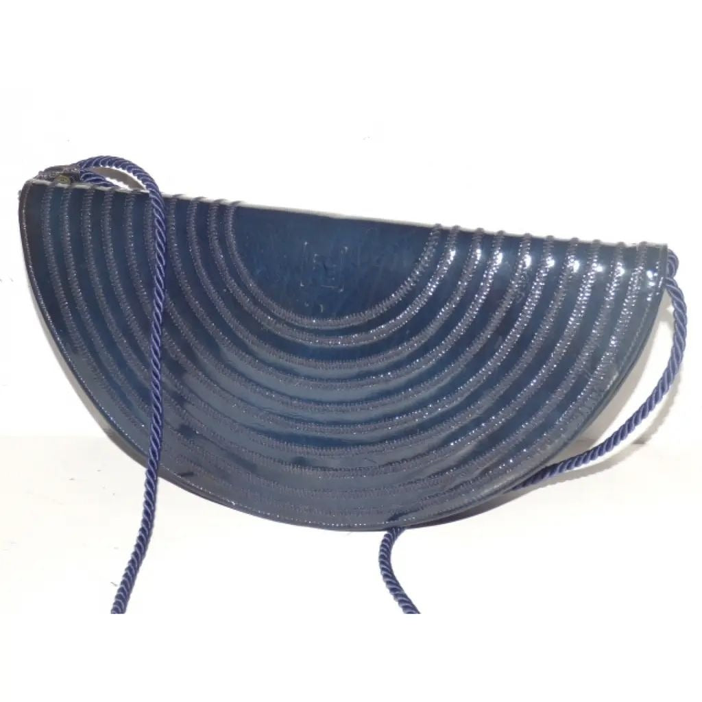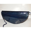For sale is a vintage, Fendi, mod look, navy blue, lacquered/ patent leather, two-way- cross body/shoulder purse or clutch in the shape of a stylized fan! A gorgeous bag in amazing vintage condition that was created by the Italian design house during the time when Karl Lagerfeld made Fendi his home!