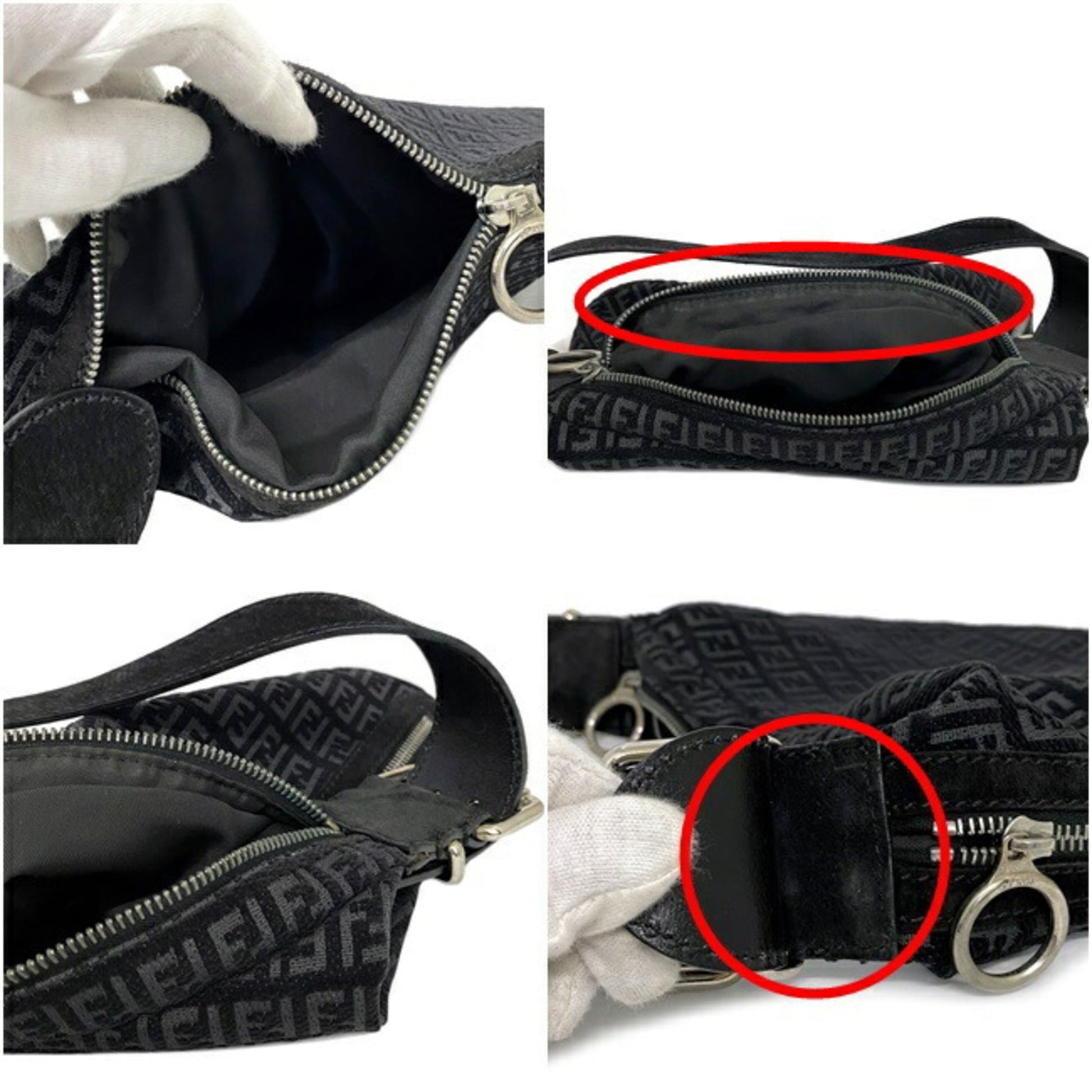 Fendi One Shoulder Bag Black Silver Zucca Suede Leather FENDI Handbag Women's
