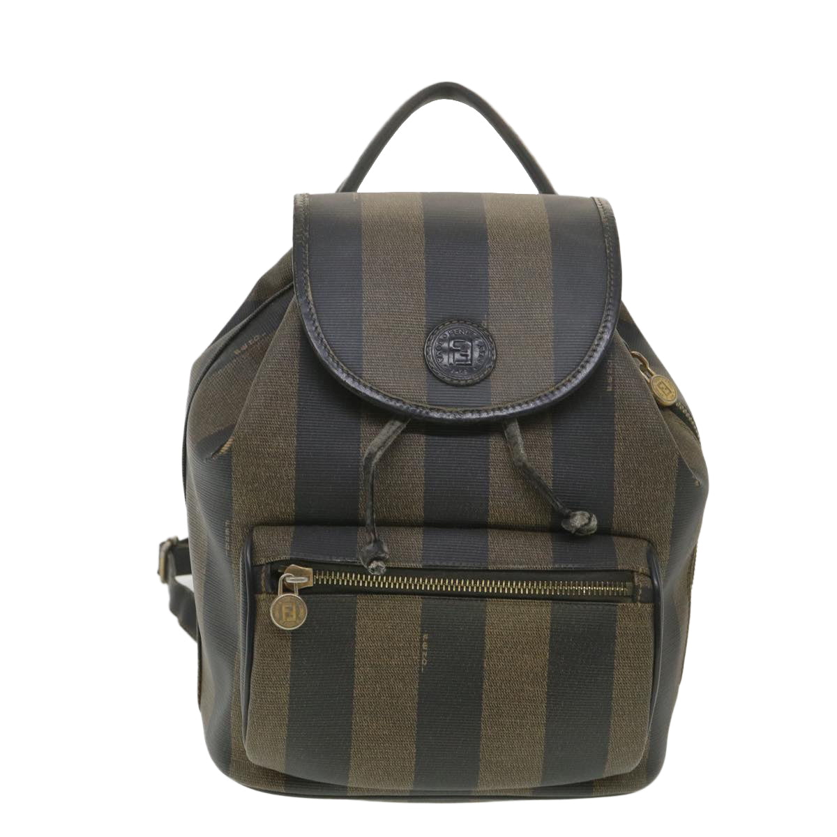 FENDI Pecan Canvas Backpack Brown Black Auth bs4573