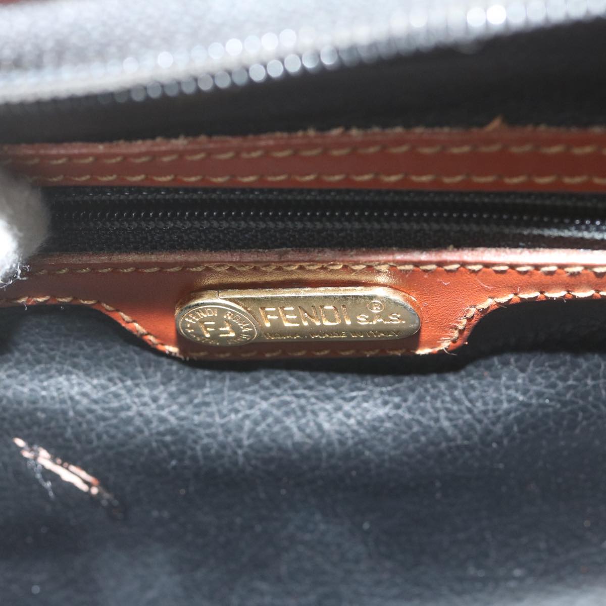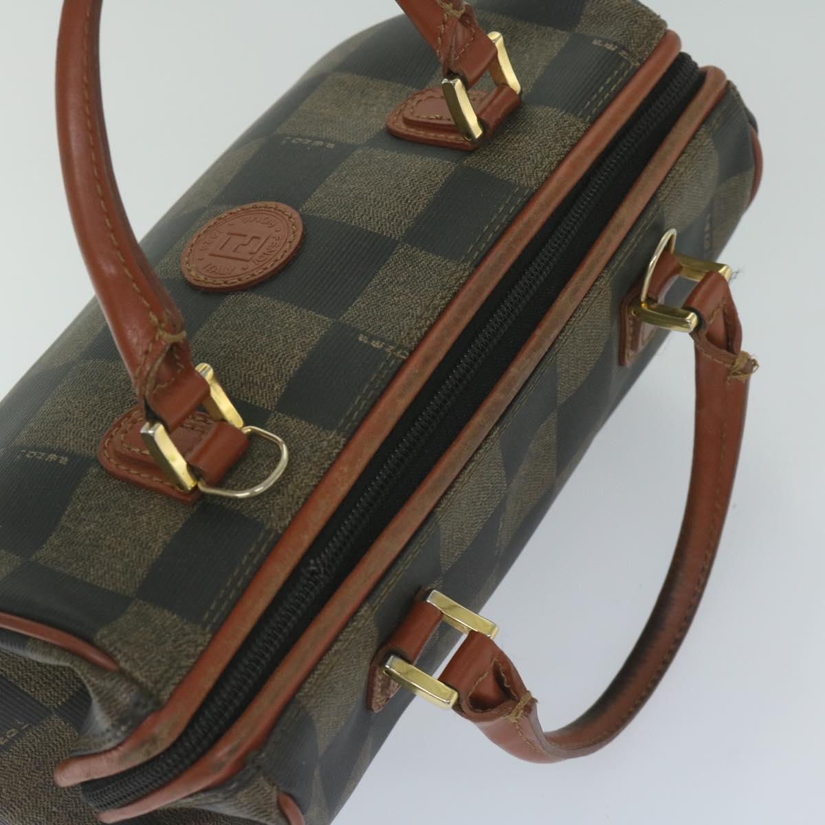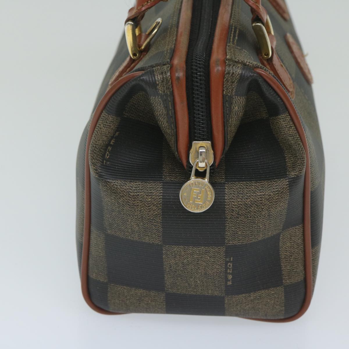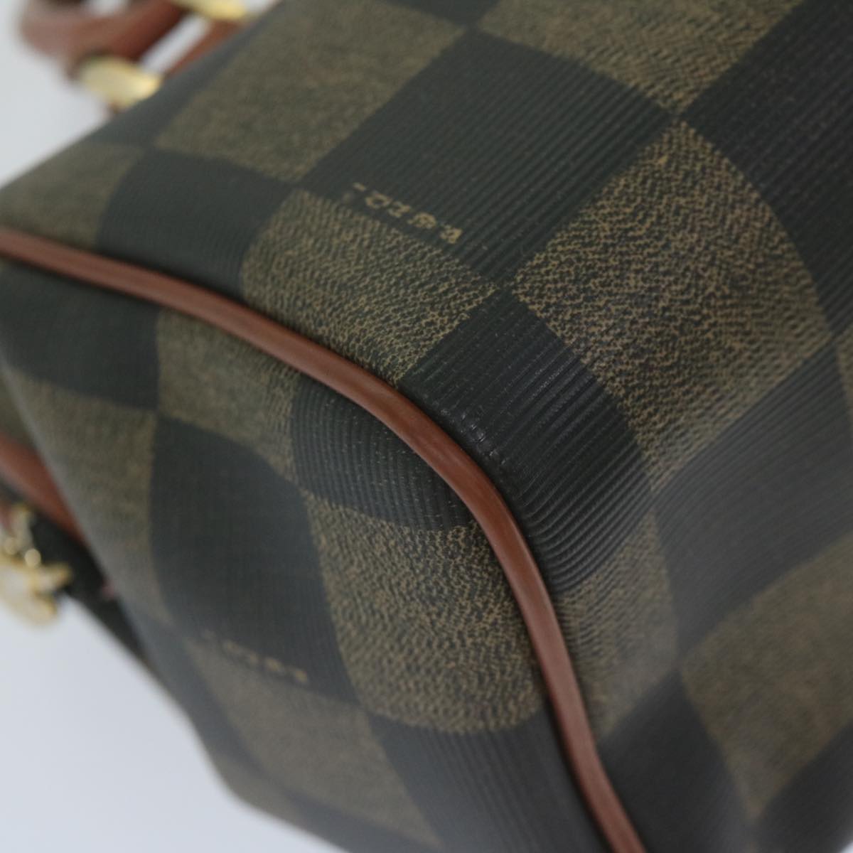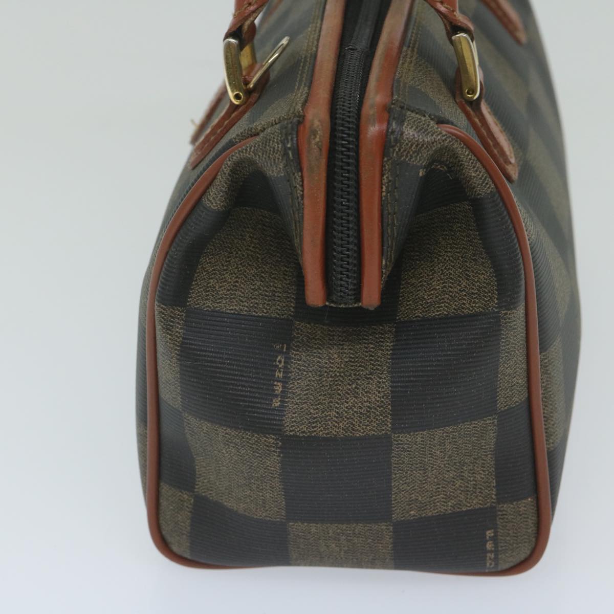 FENDI Pecan Canvas Boston Bag Black Brown Auth hk943