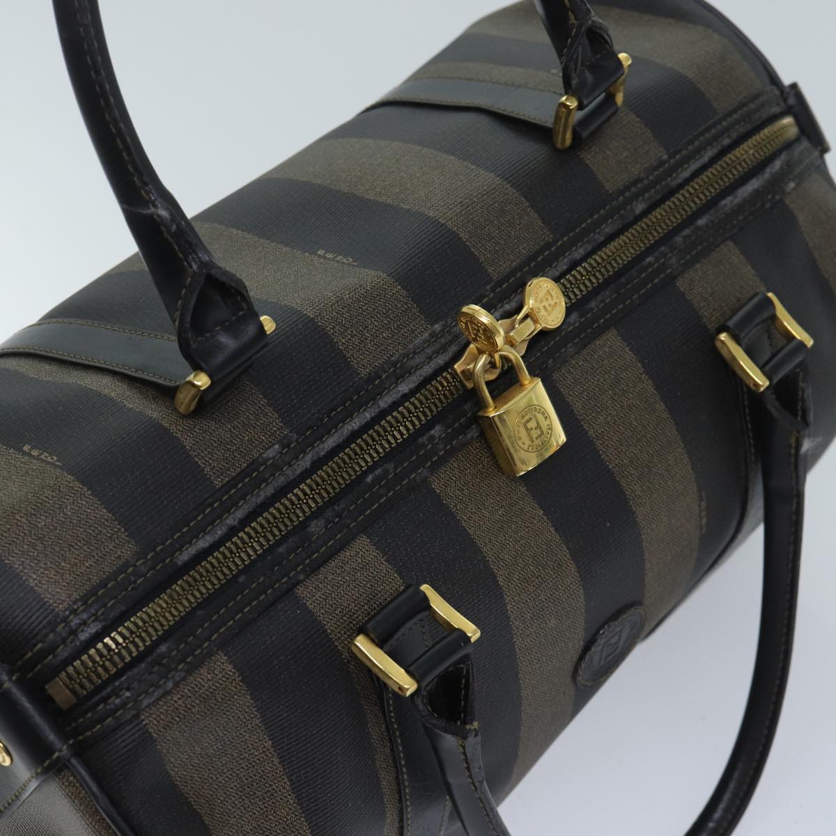 FENDI Pecan Canvas Boston Bag Brown Auth yk11462