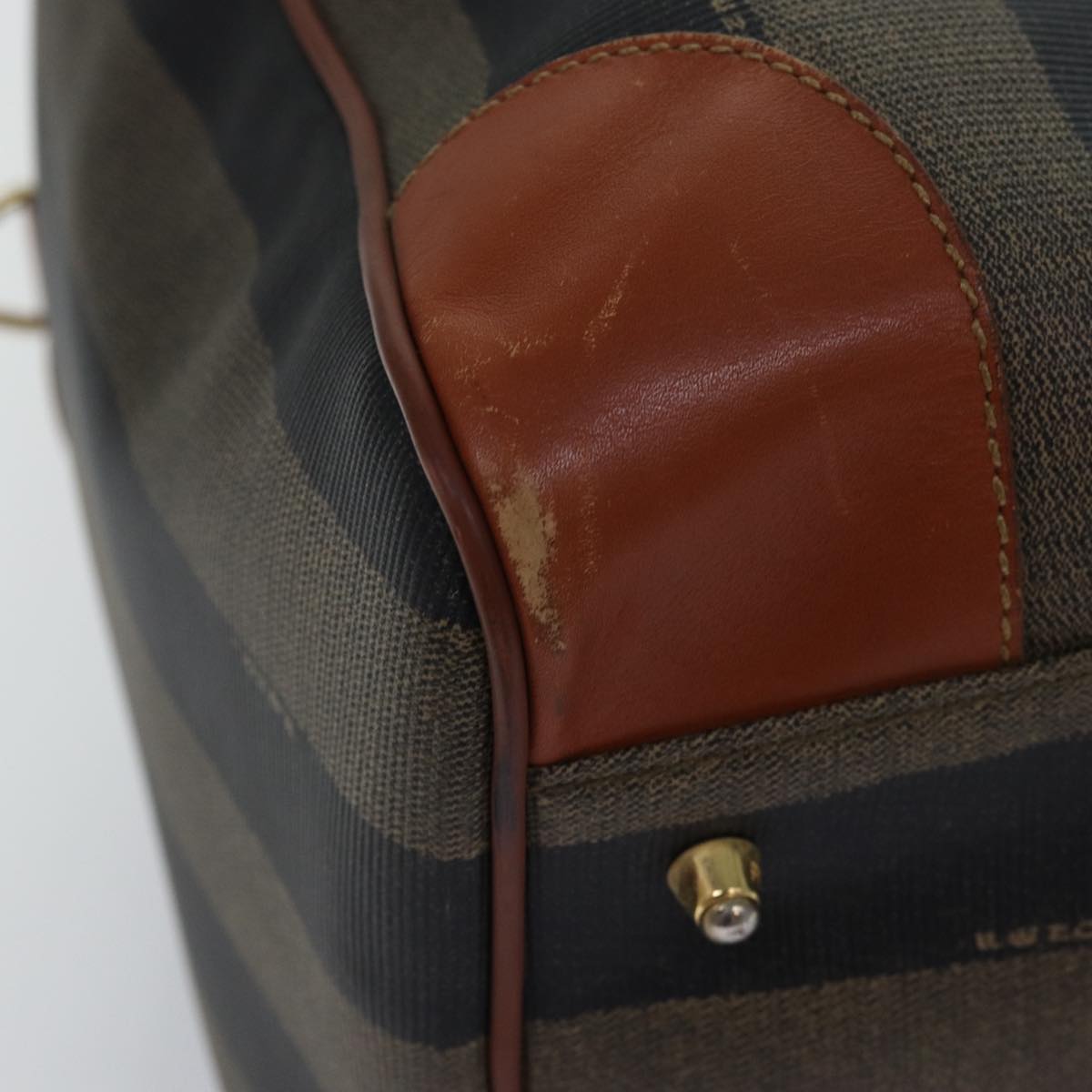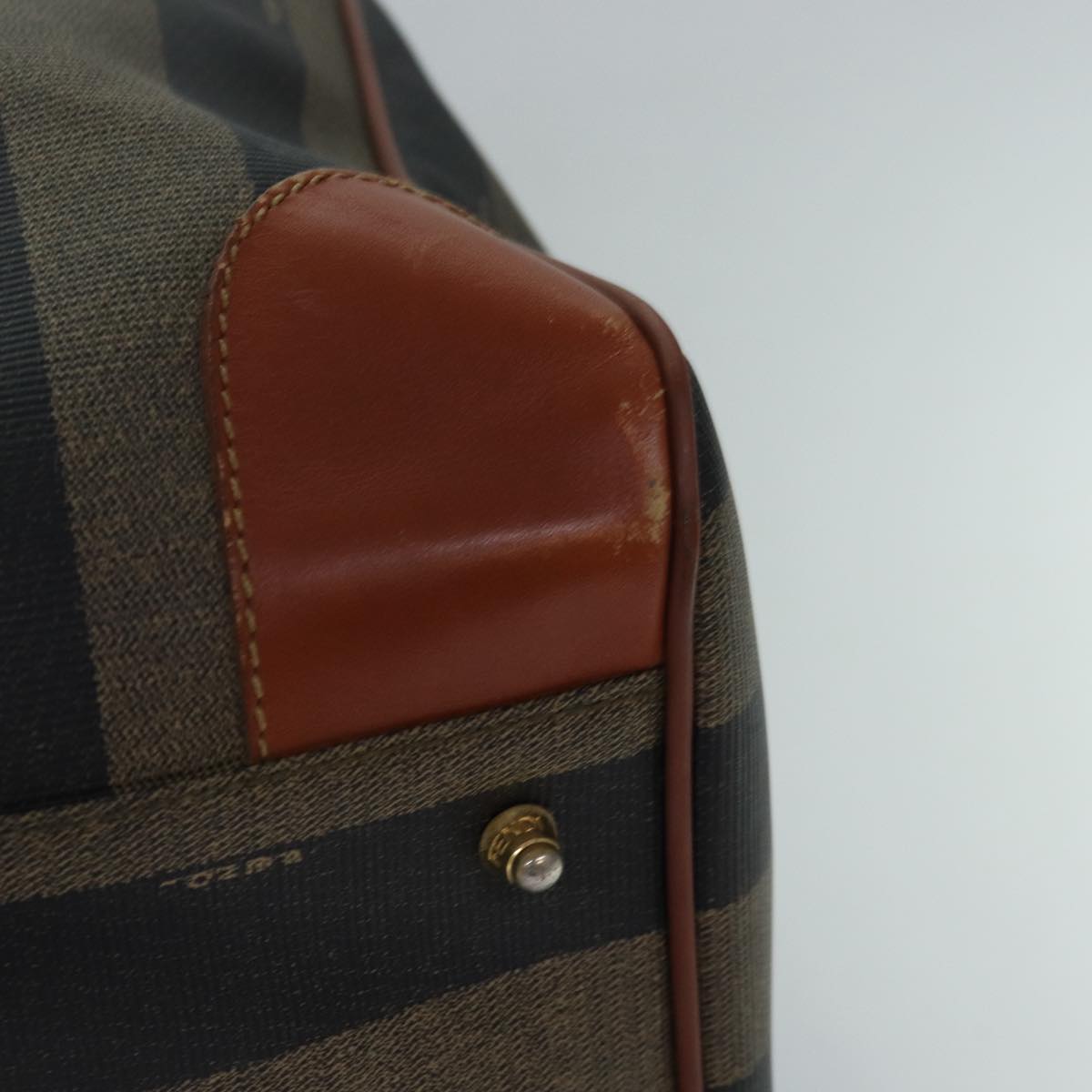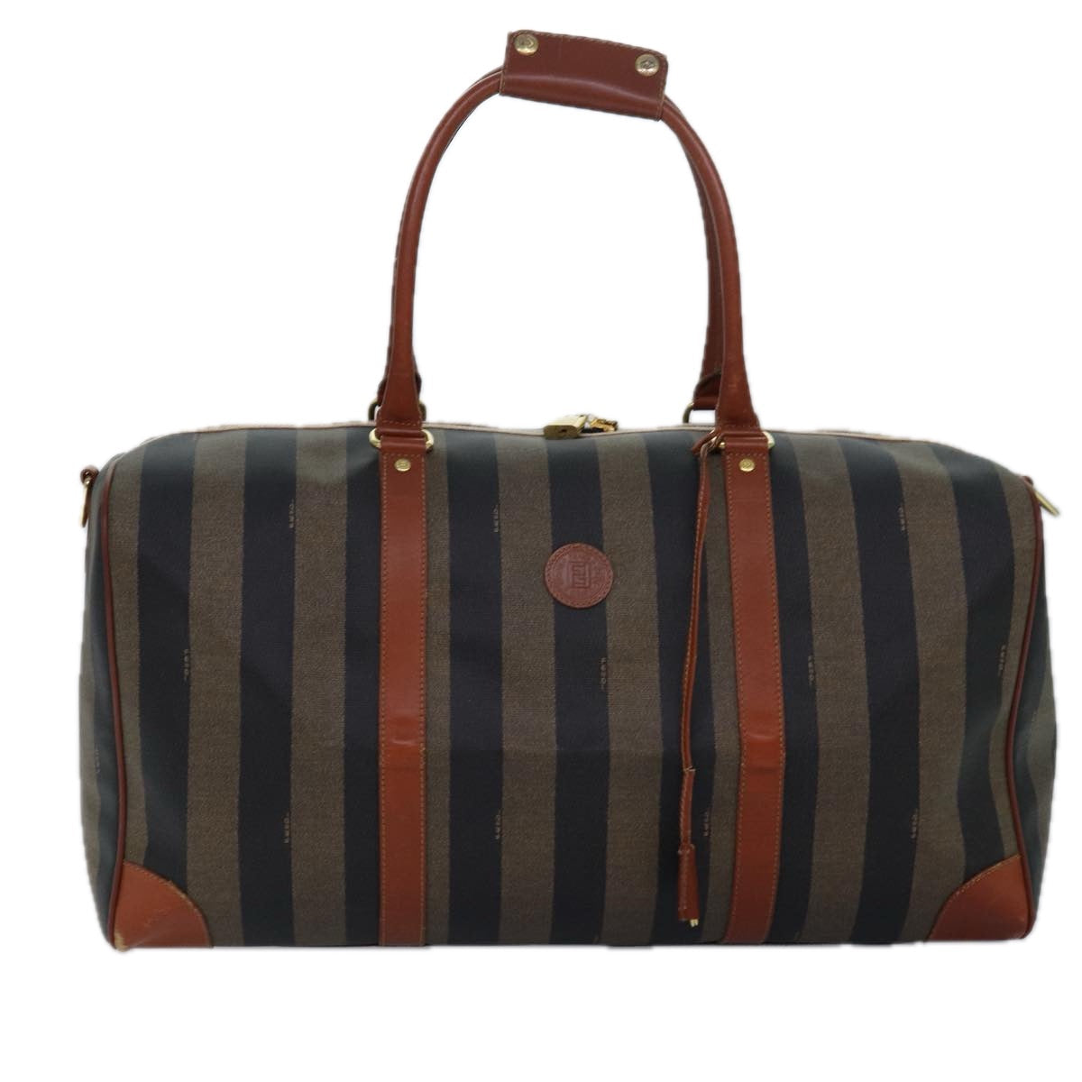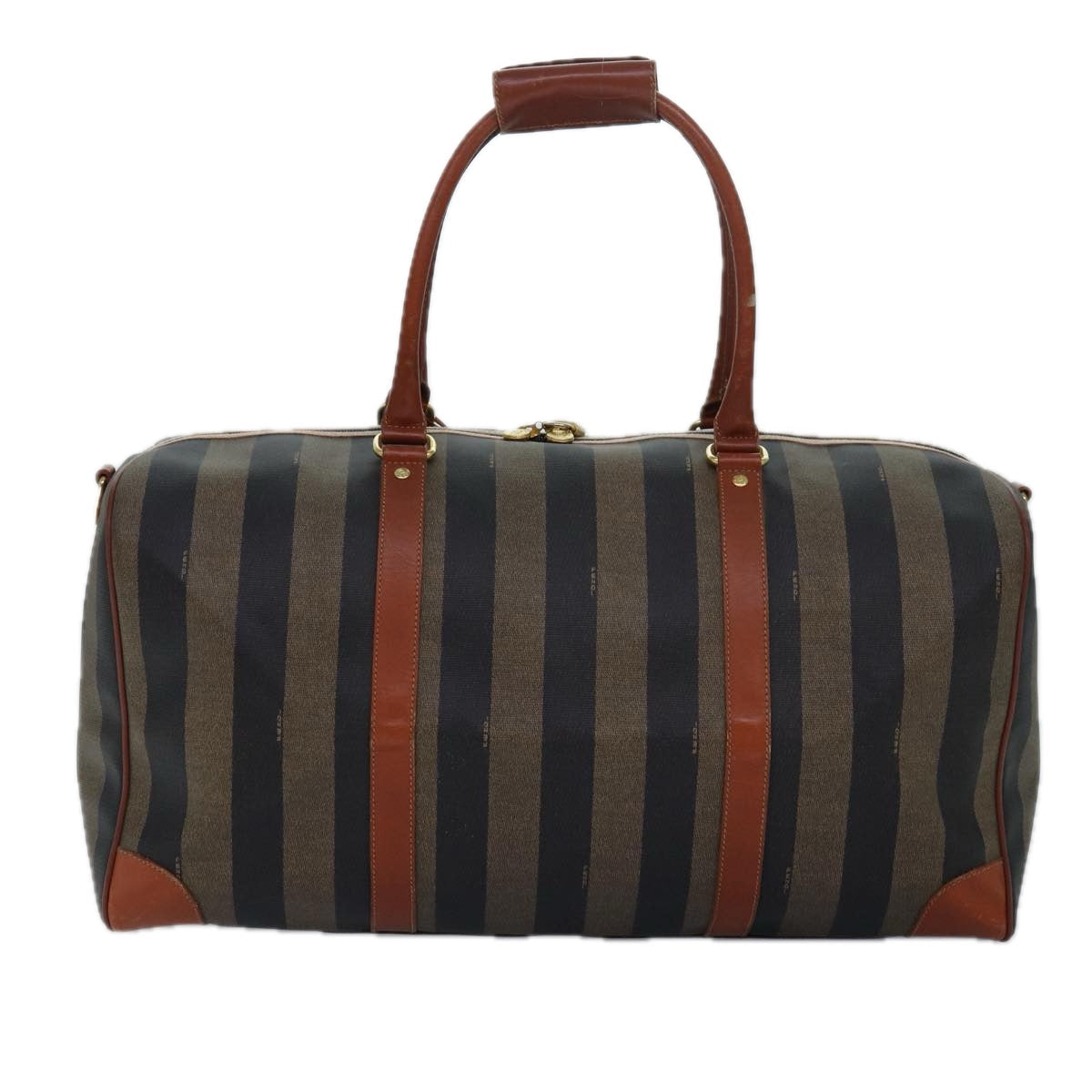 FENDI Pecan Canvas Boston Bag Brown Black Auth yk13671