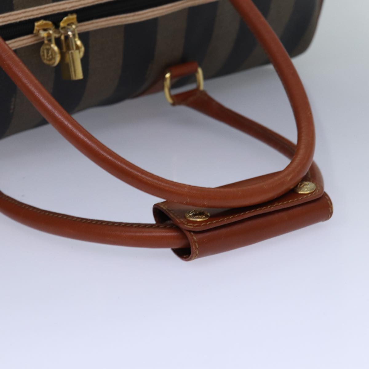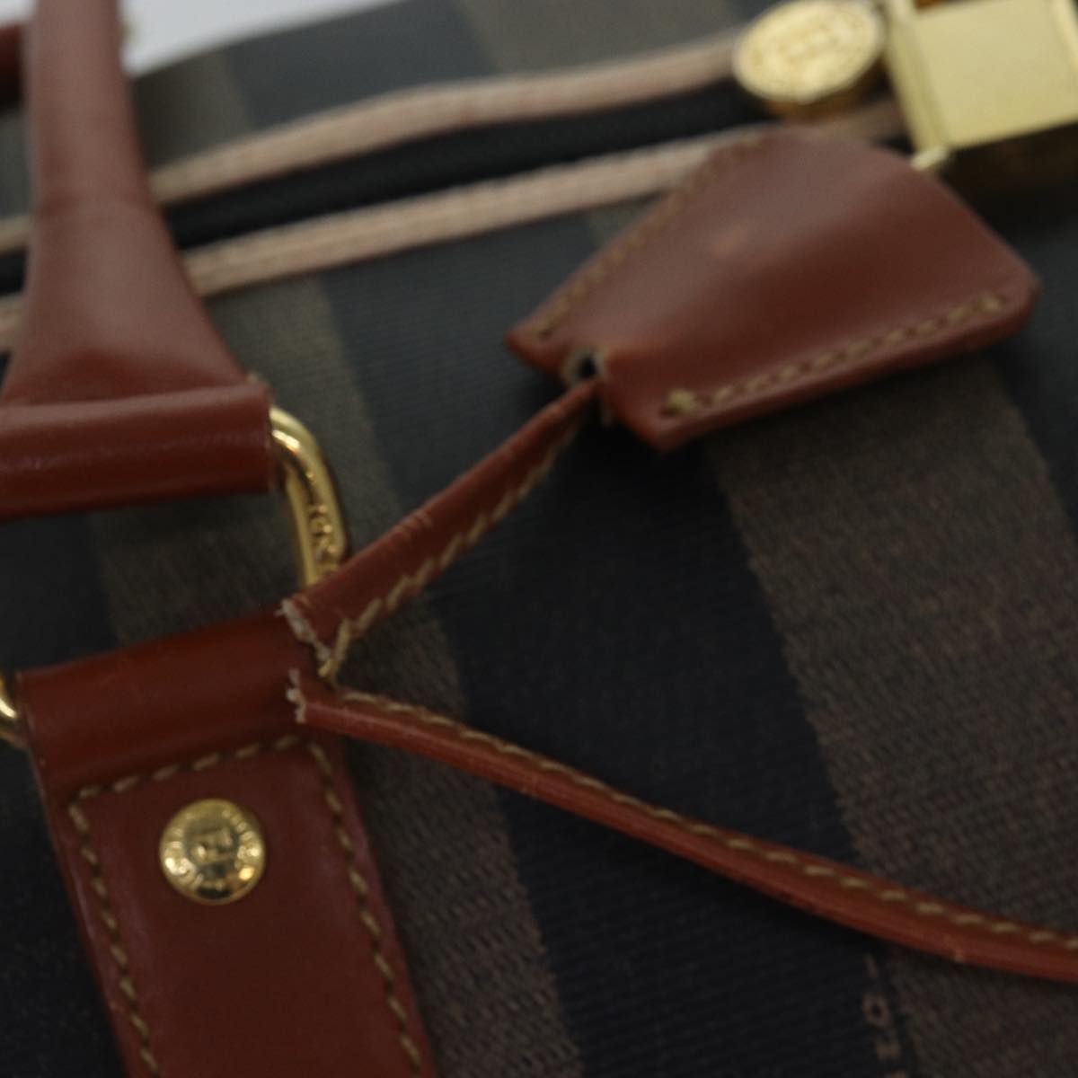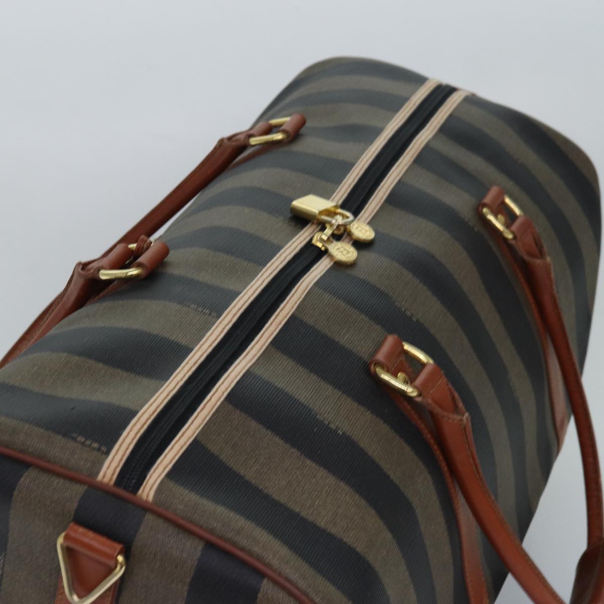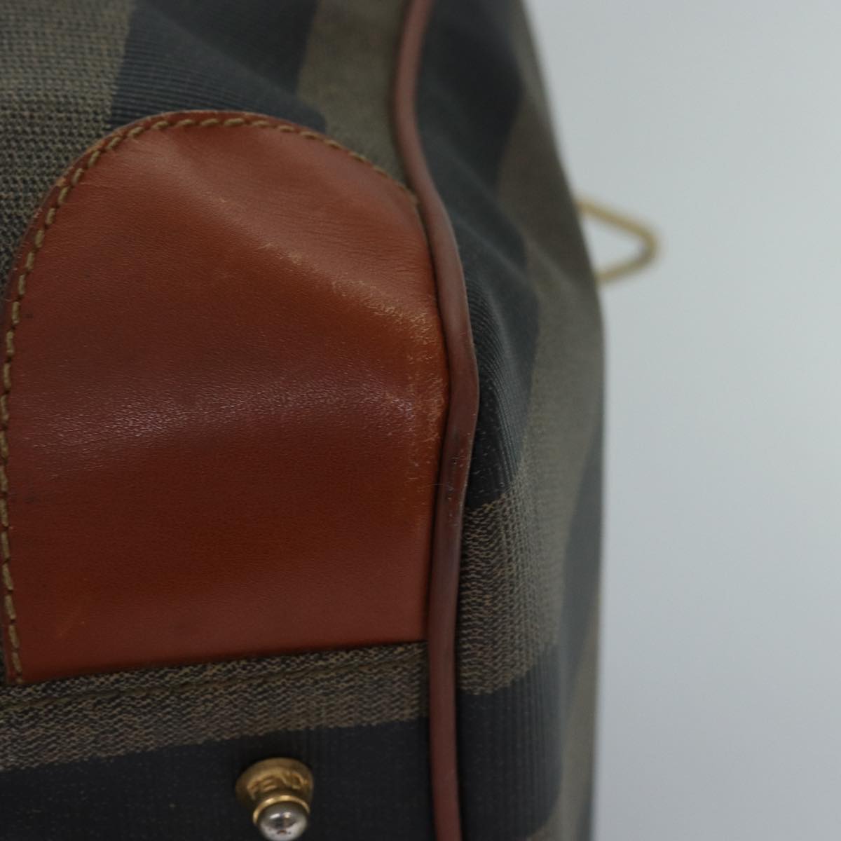 FENDI Pecan Canvas Boston Bag Brown Black Auth yk13671