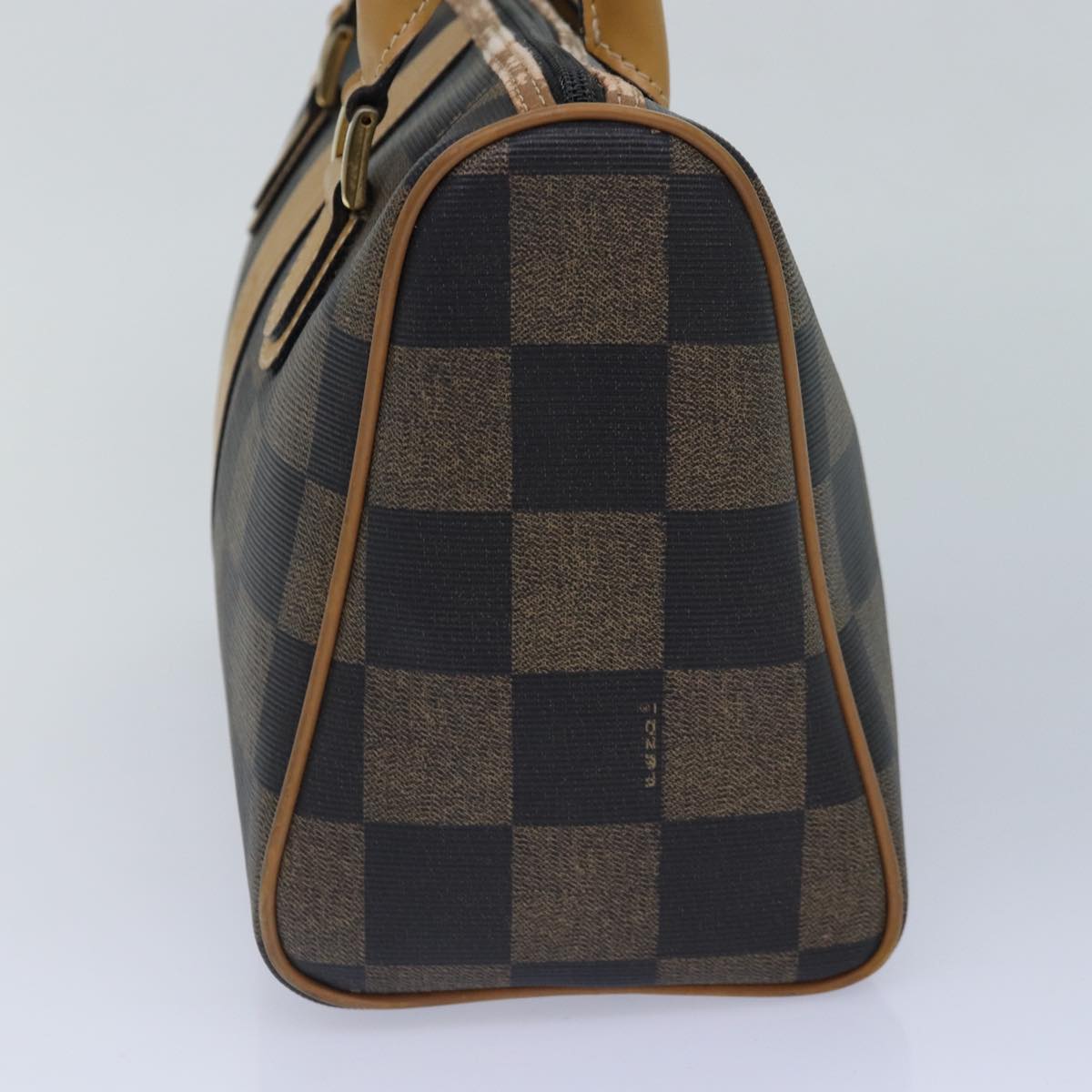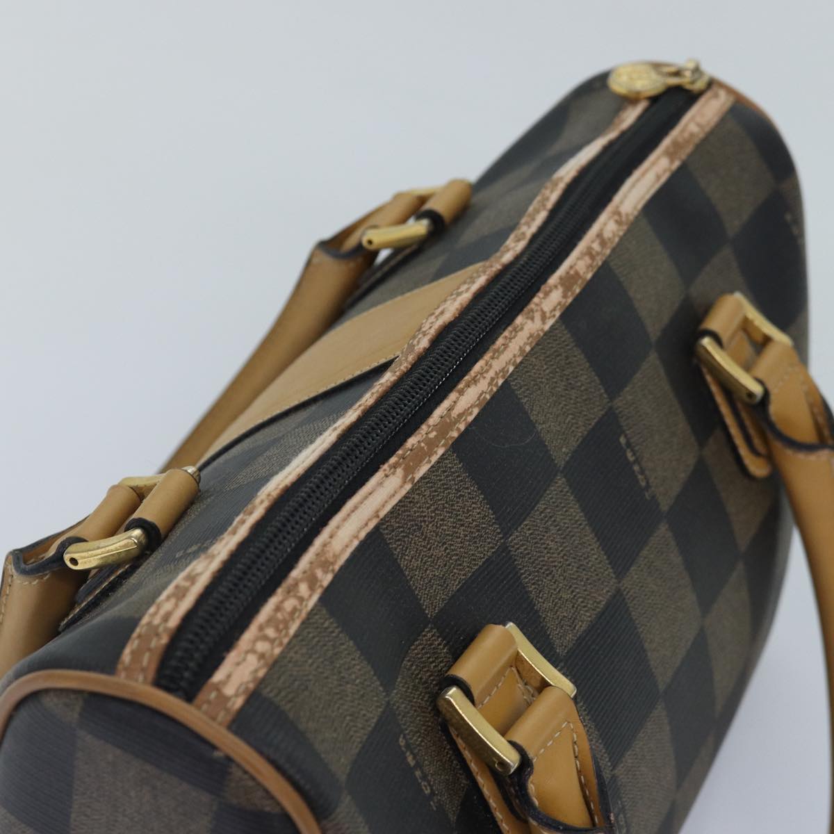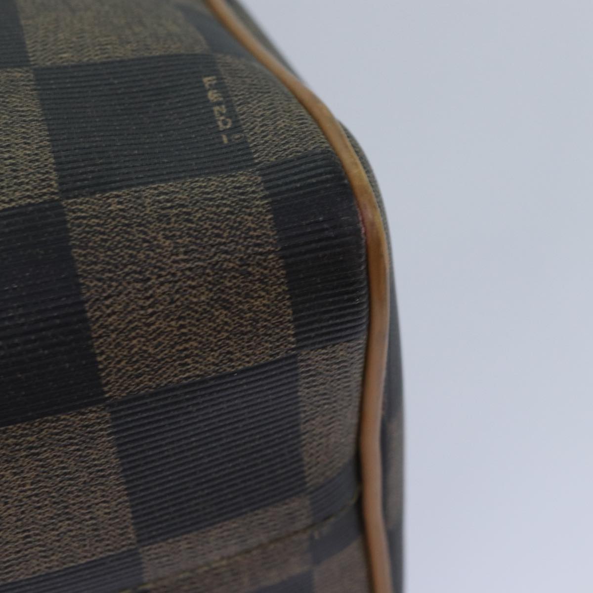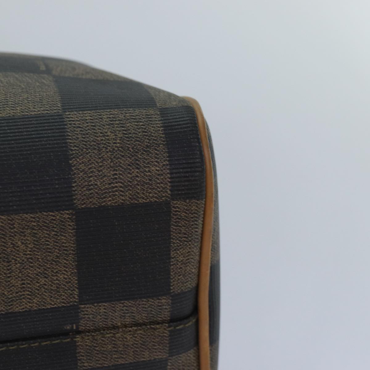 FENDI Pecan Canvas Boston Bag Brown Black gold Auth 89110