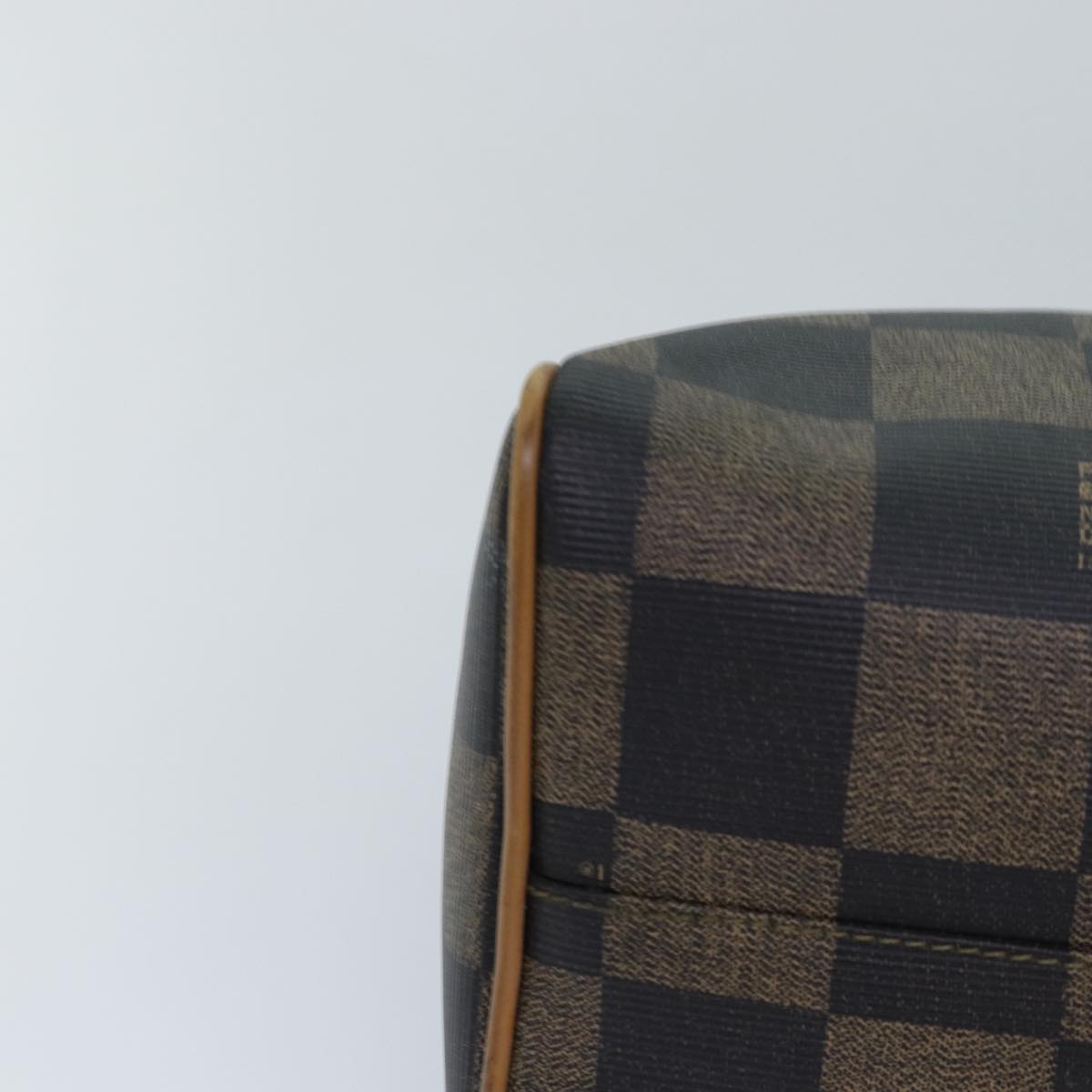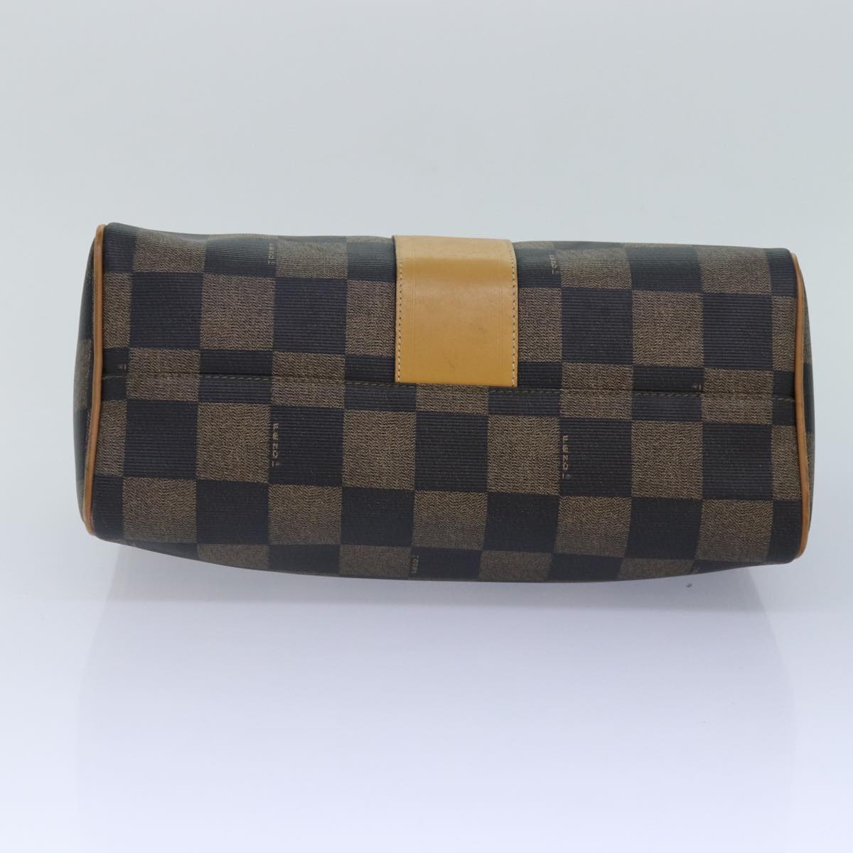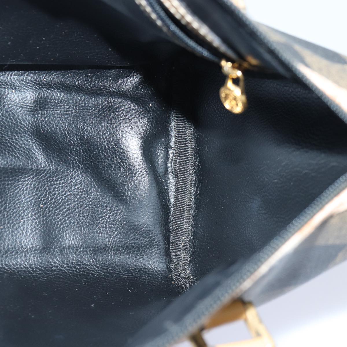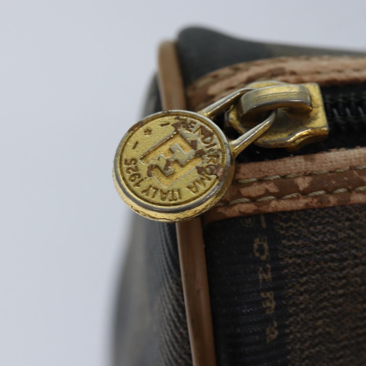 FENDI Pecan Canvas Boston Bag Brown Black gold Auth 89110