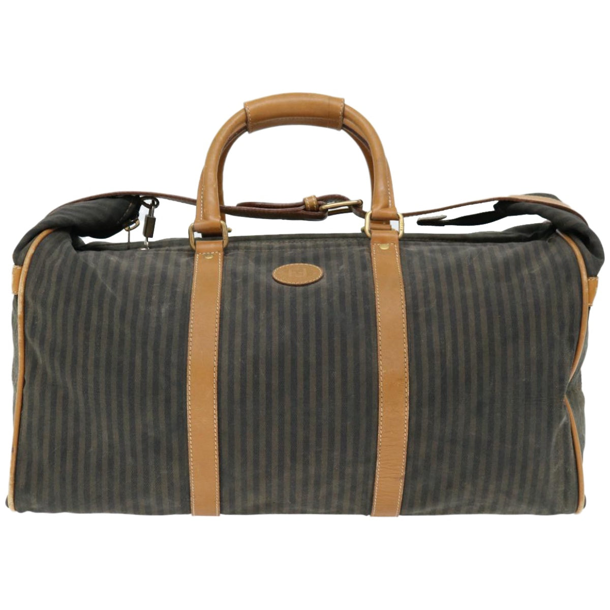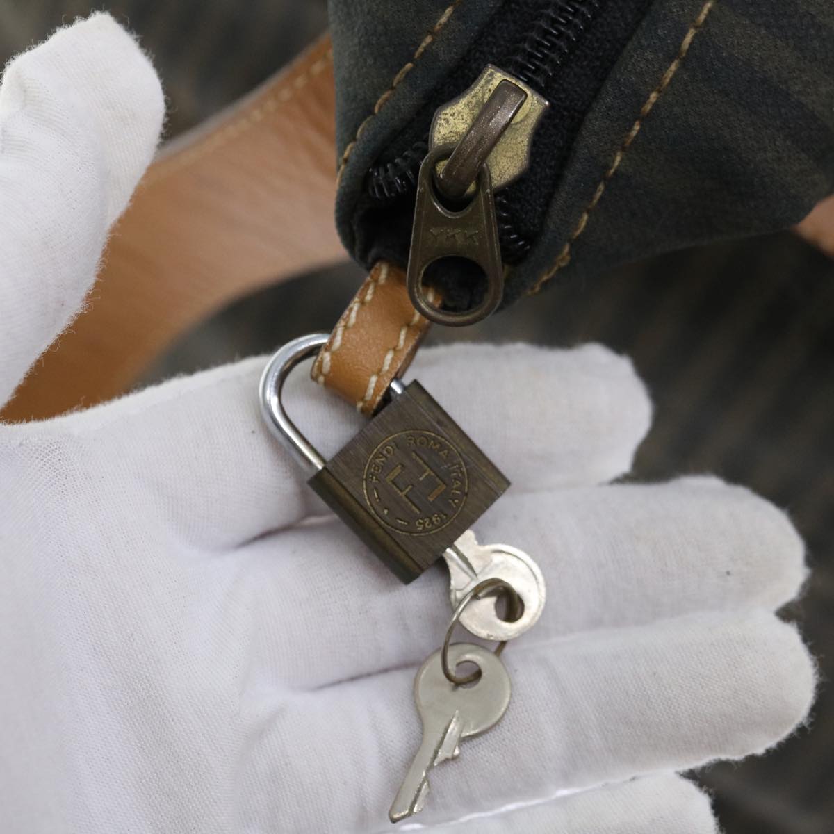 FENDI Pecan Canvas Boston Bag Coated Canvas 2way Brown Khaki Auth bs12003