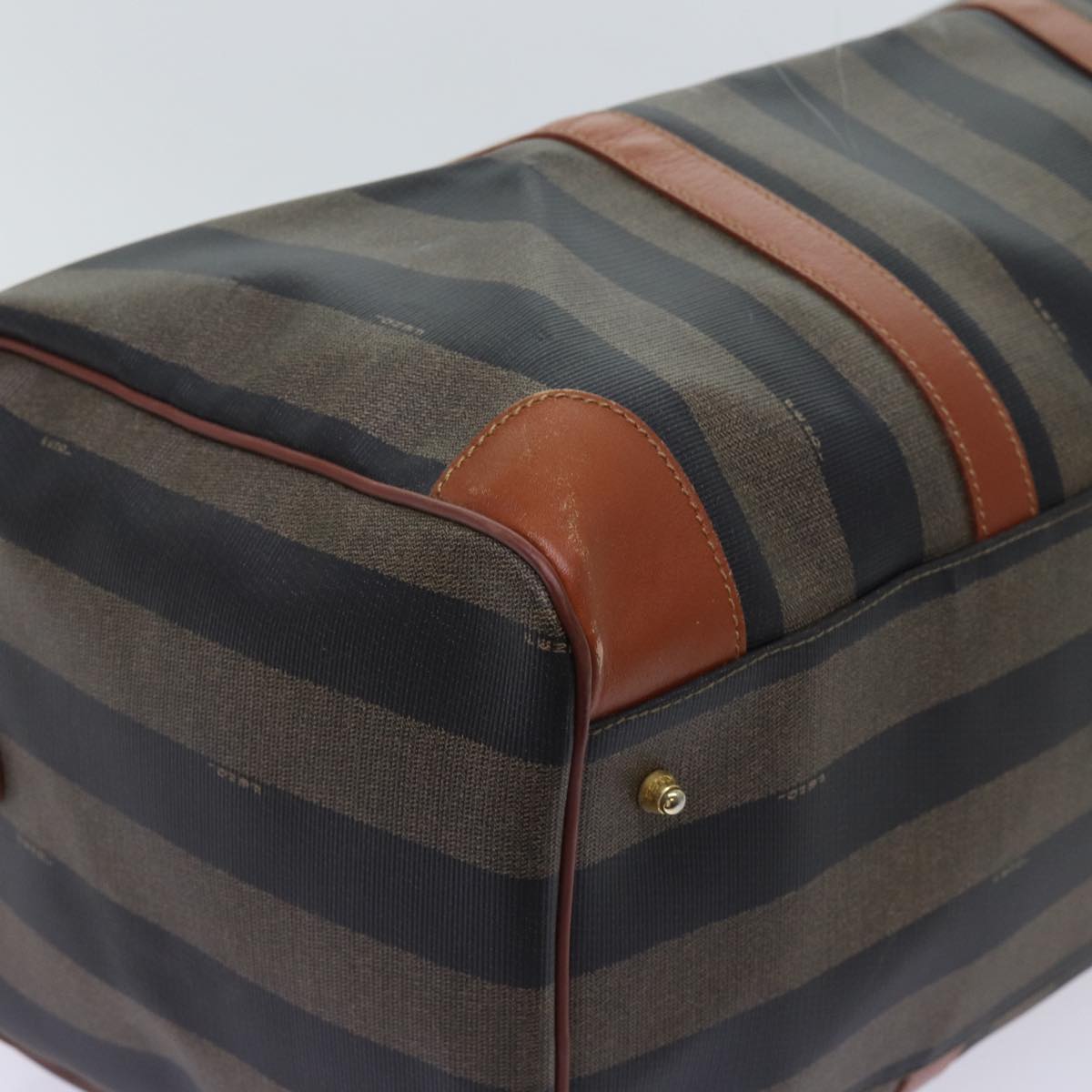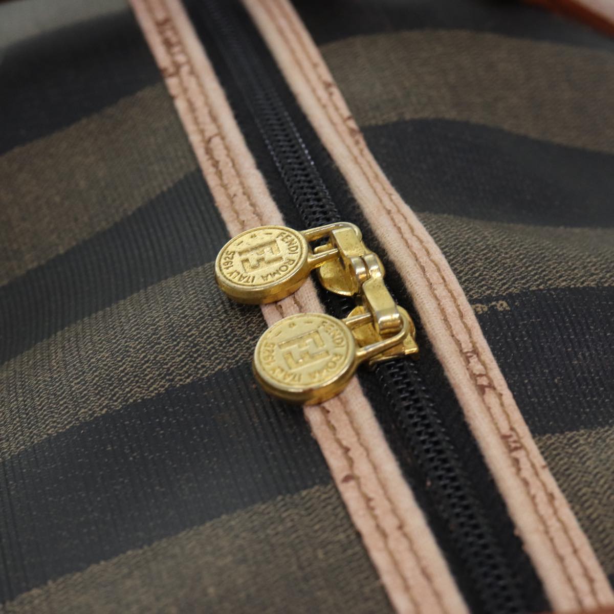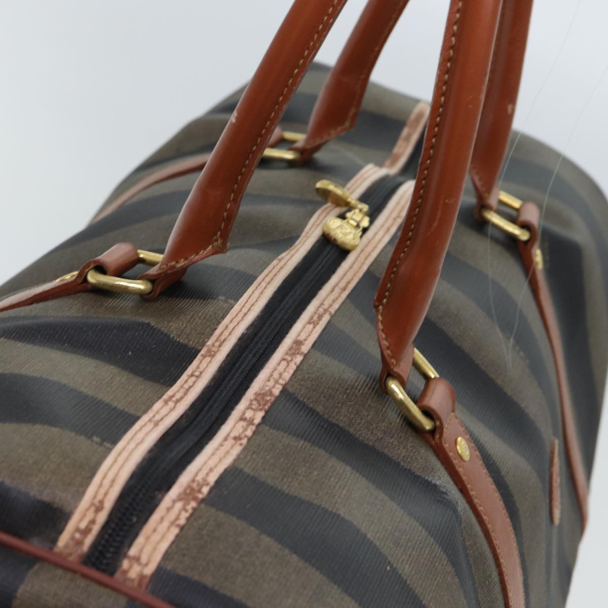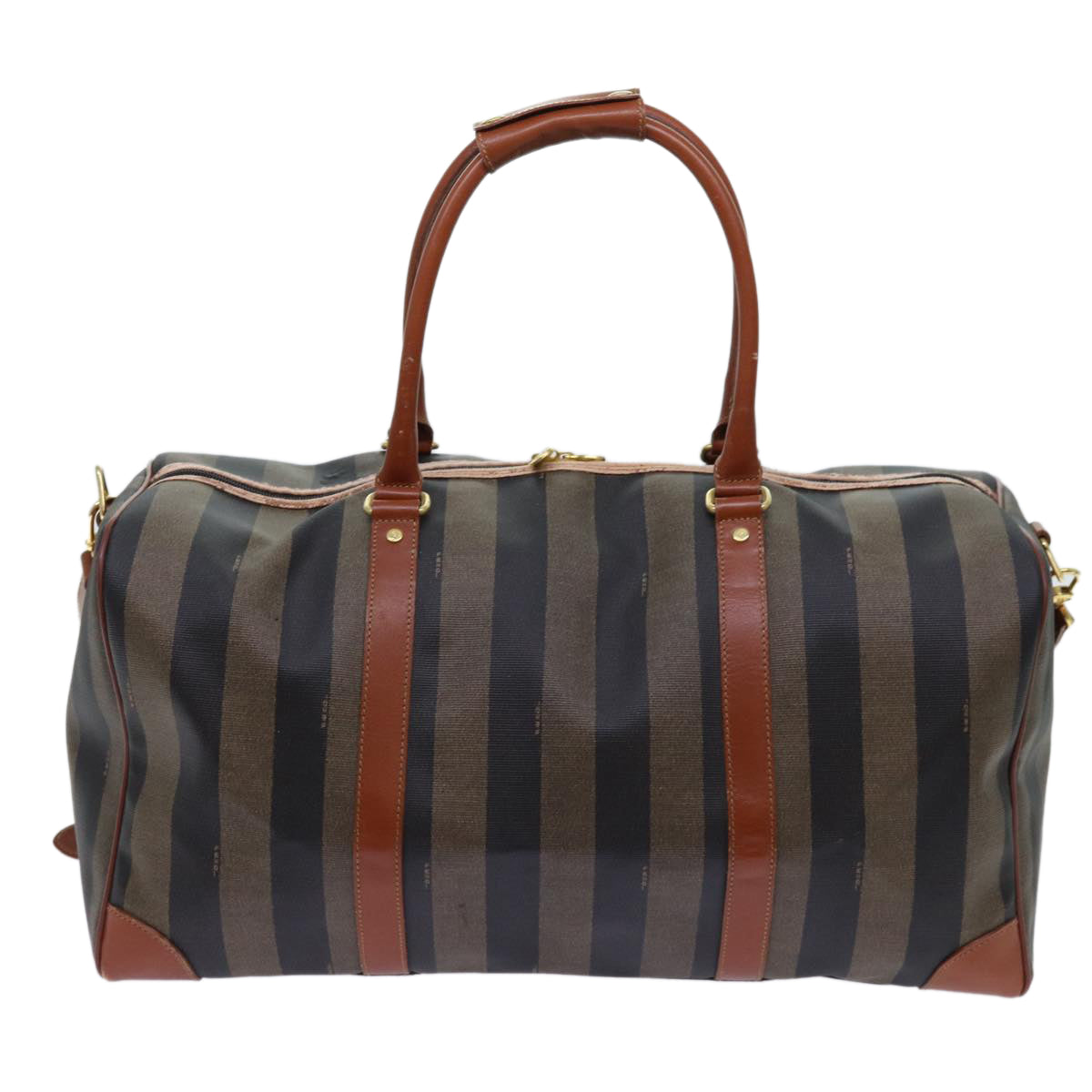 FENDI Pecan Canvas Boston Bag Coated Canvas 2way Brown Khaki Auth hk1140