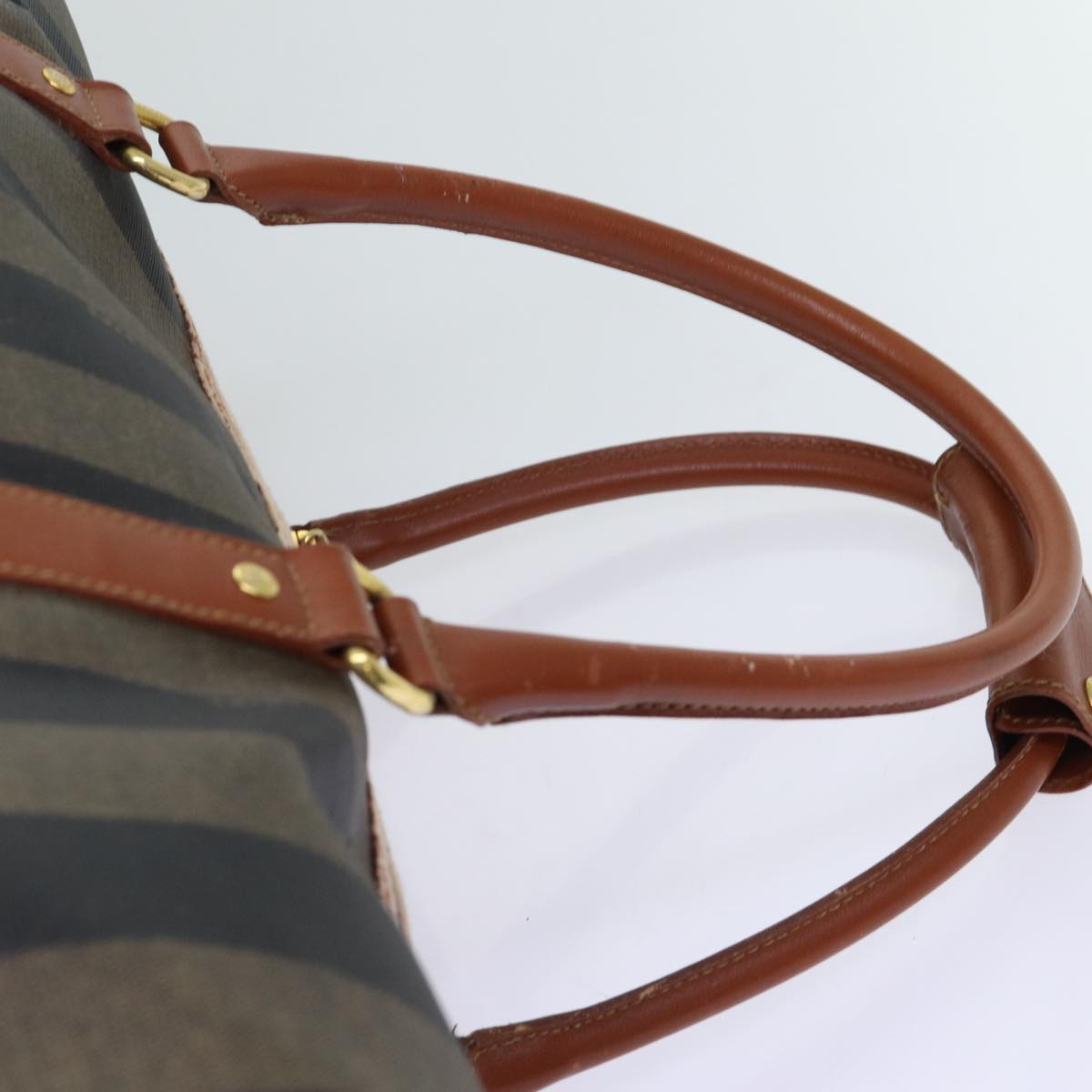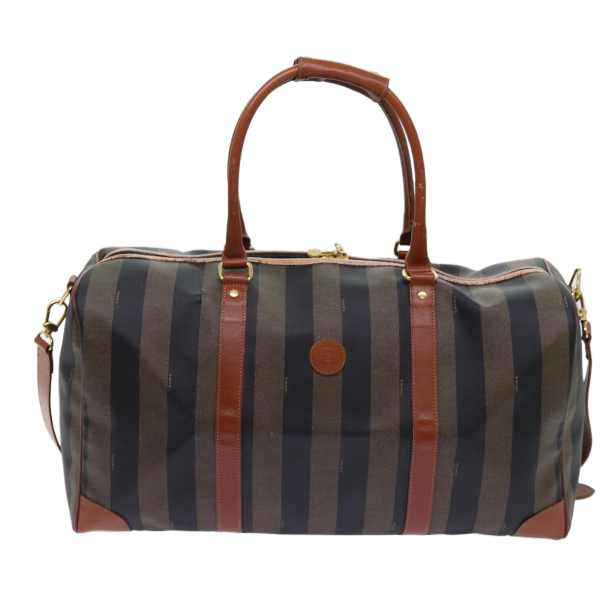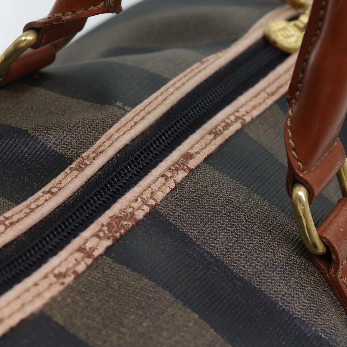 FENDI Pecan Canvas Boston Bag Coated Canvas 2way Brown Khaki Auth hk1140