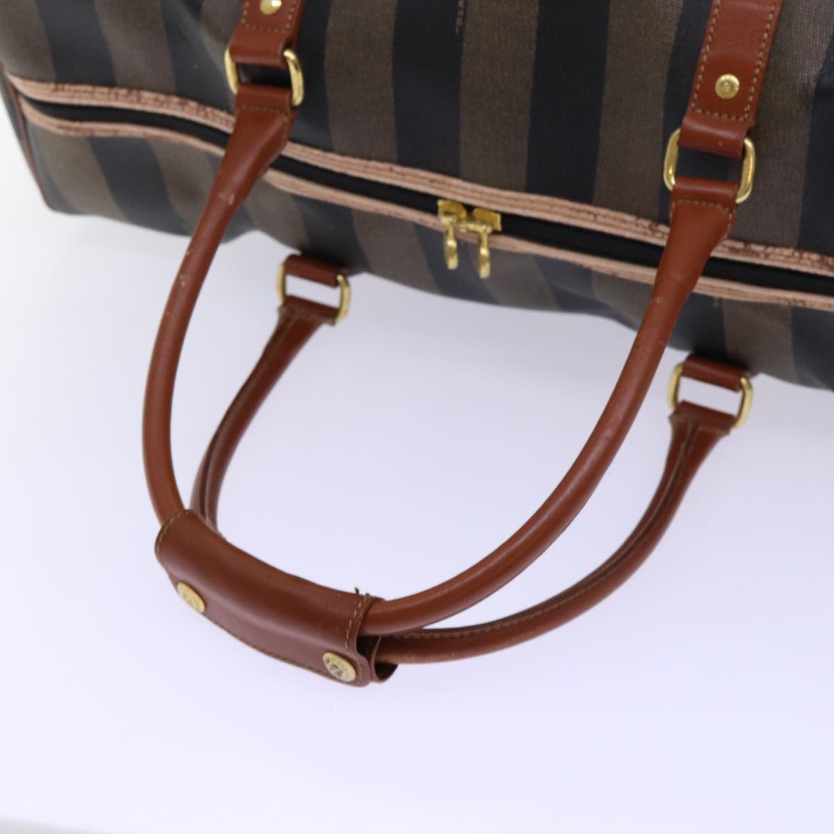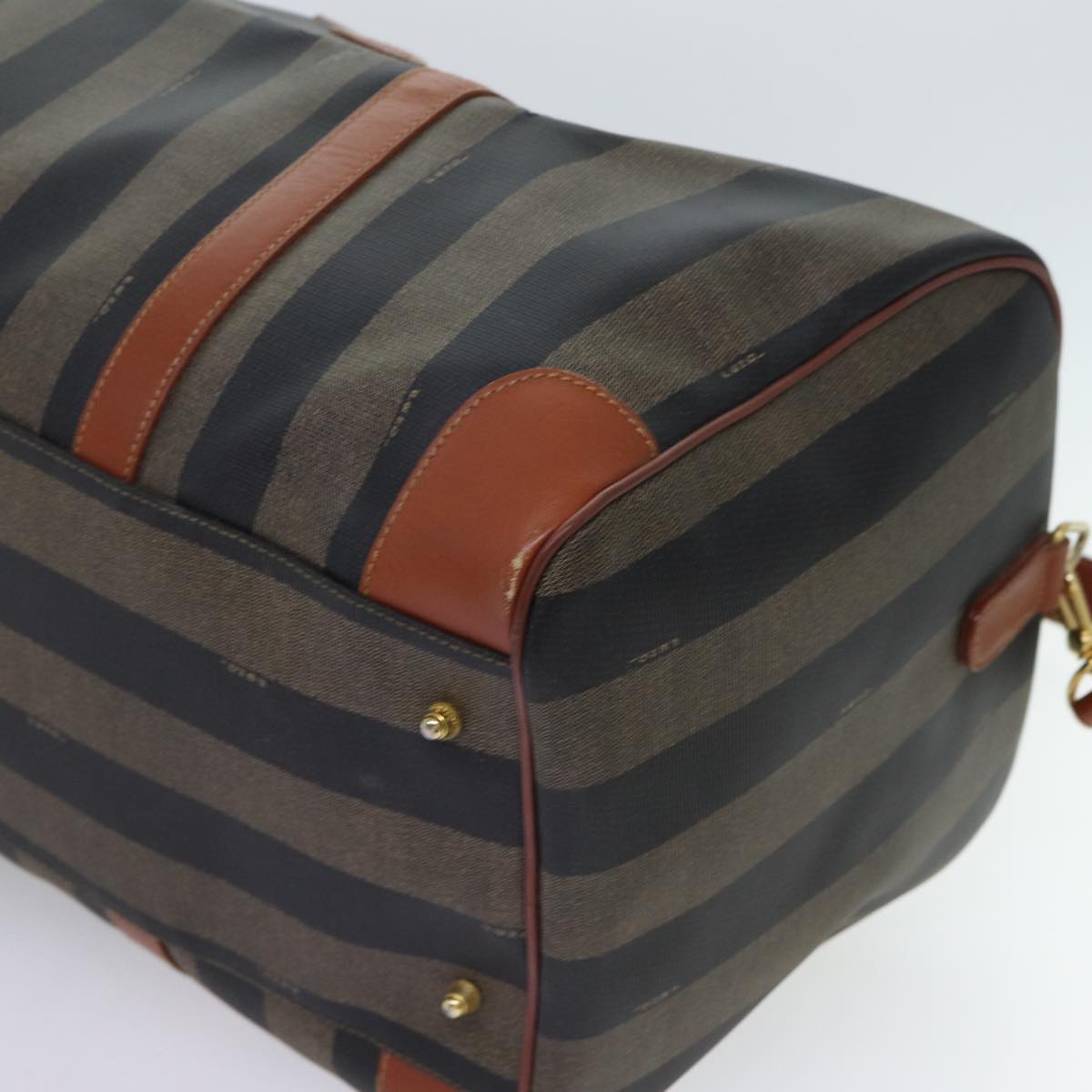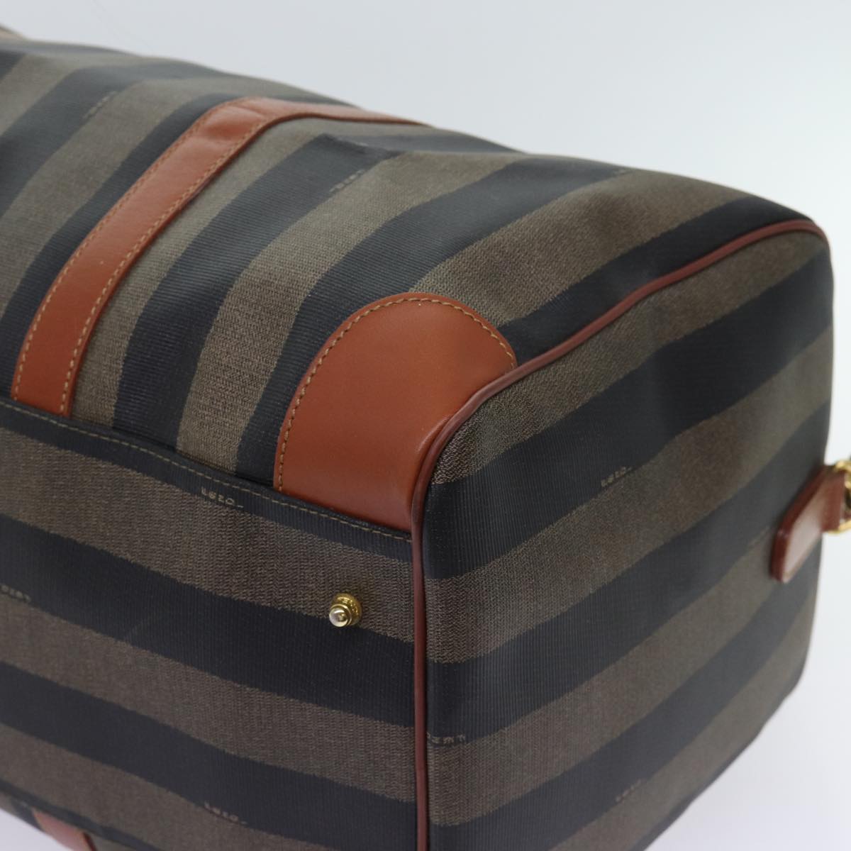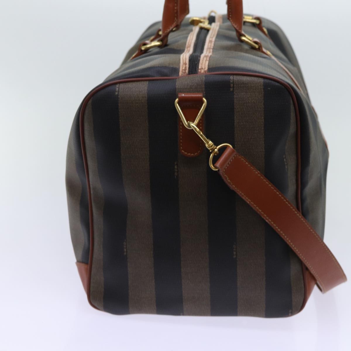 FENDI Pecan Canvas Boston Bag Coated Canvas 2way Brown Khaki Auth hk1140