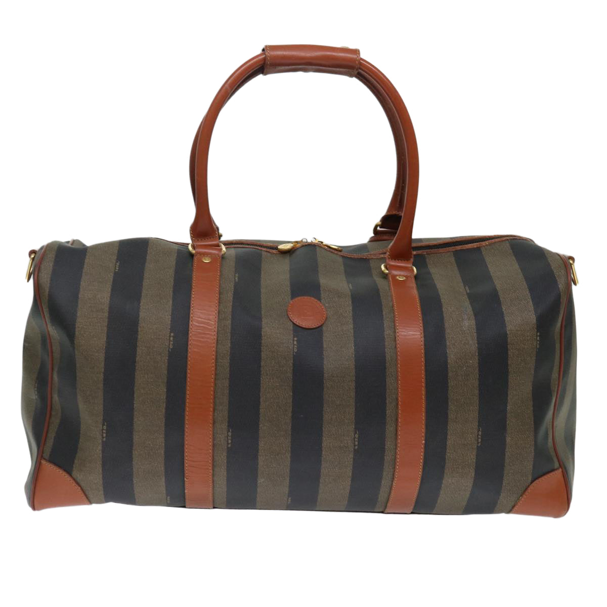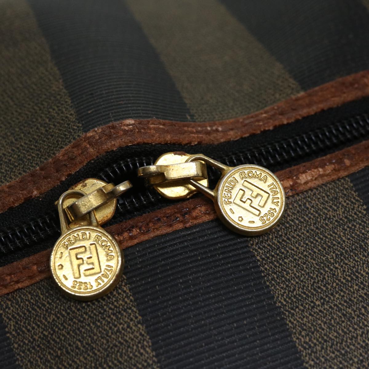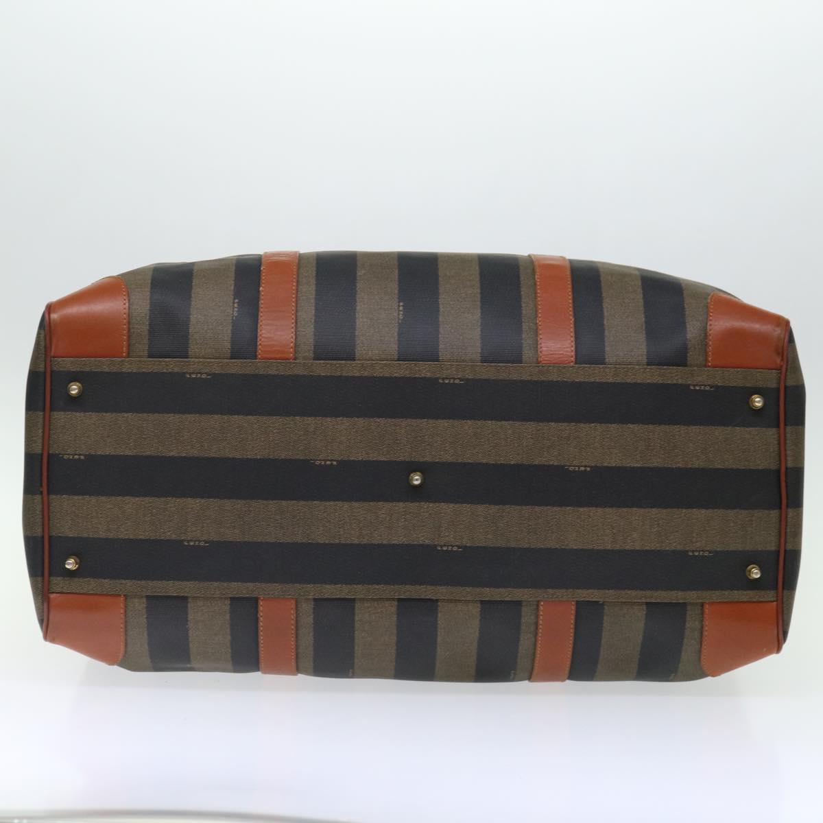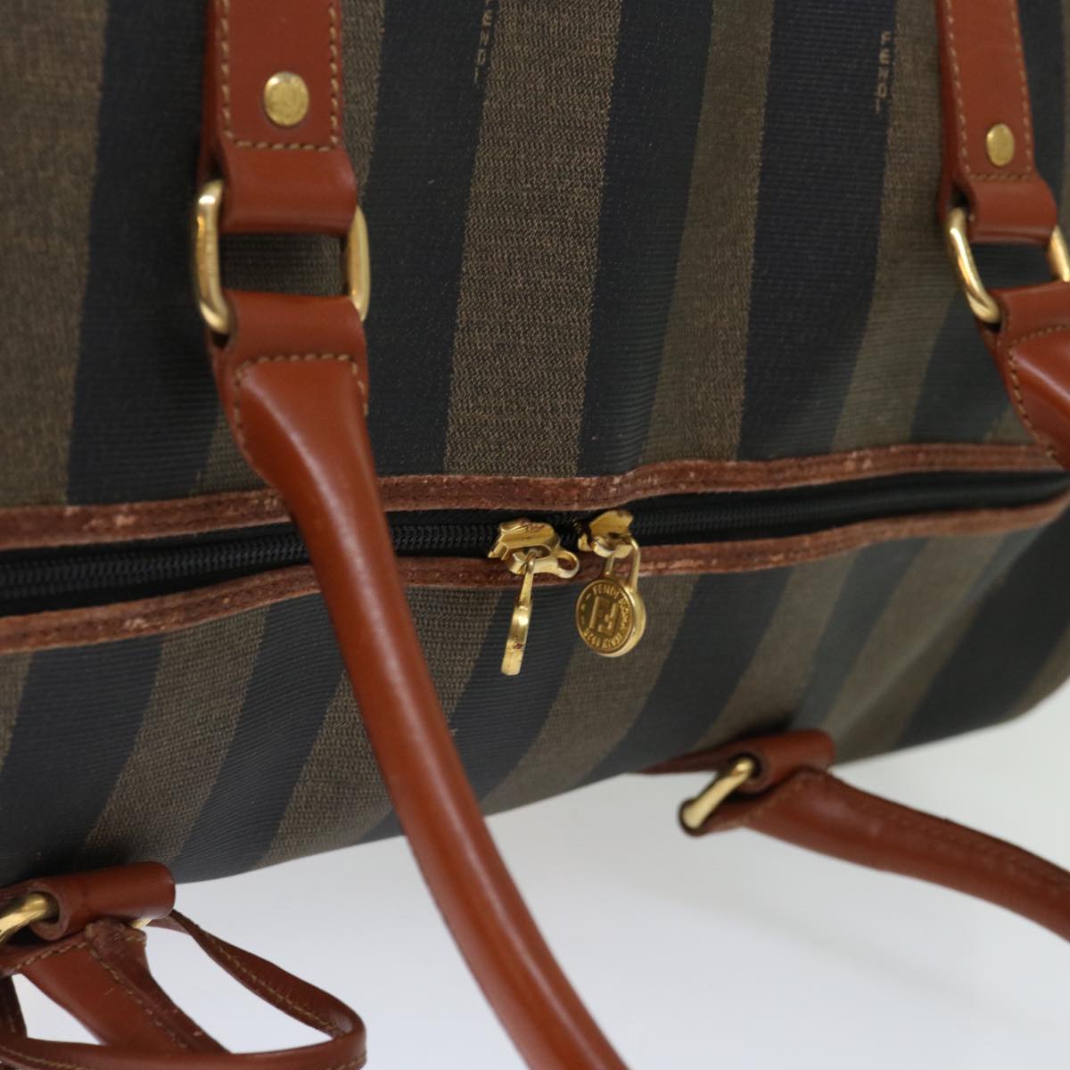 FENDI Pecan Canvas Boston Bag Coated Canvas 2way Brown Khaki Auth hk1204