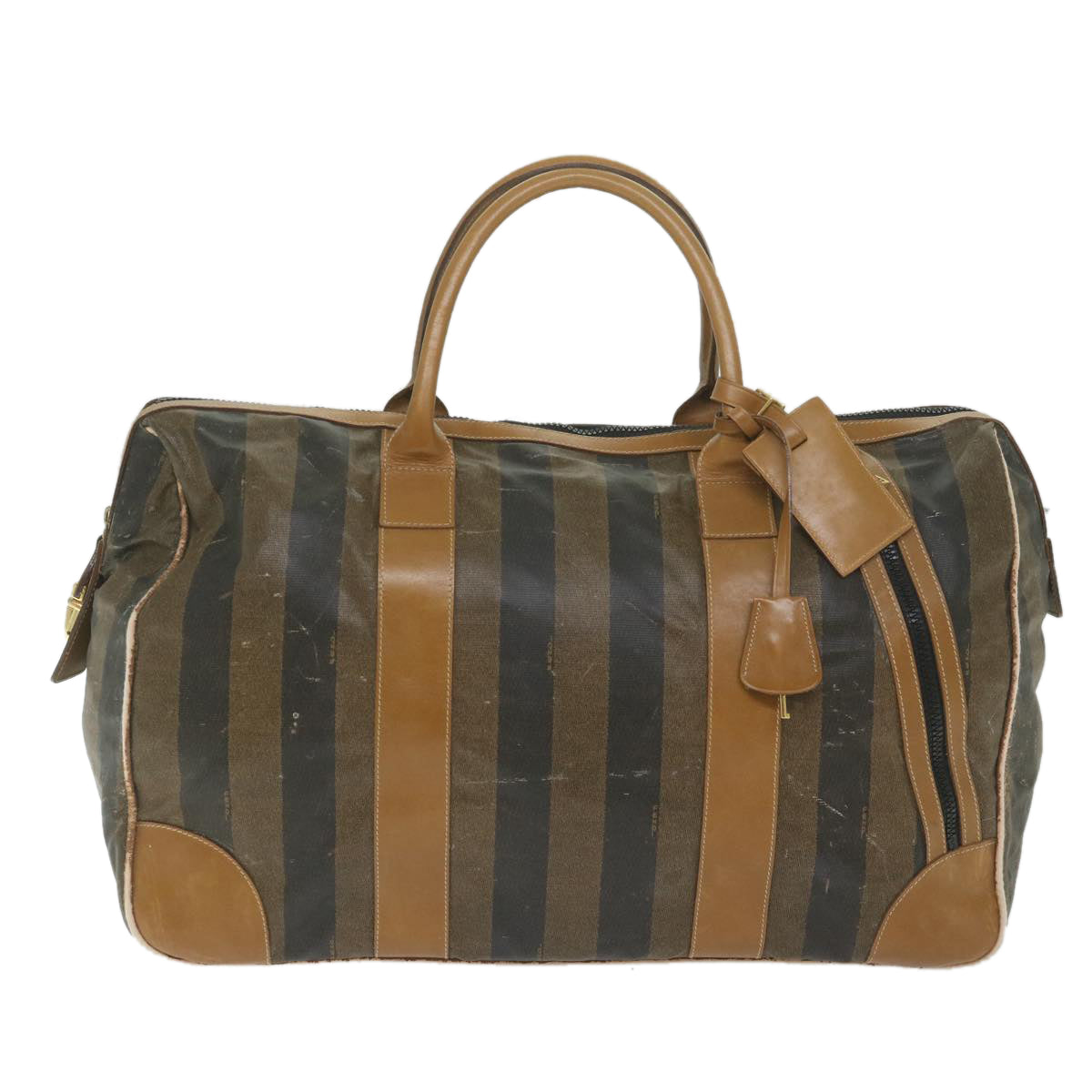 FENDI Pecan Canvas Boston Bag Coated Canvas Brown Auth bs10091