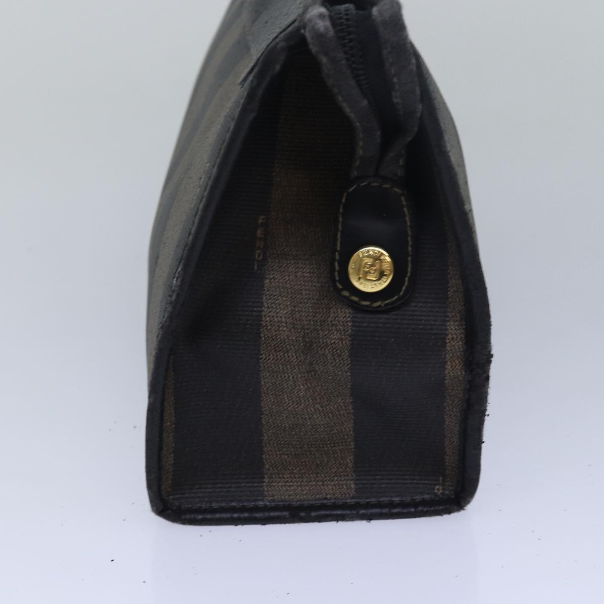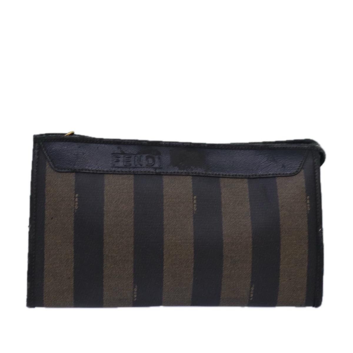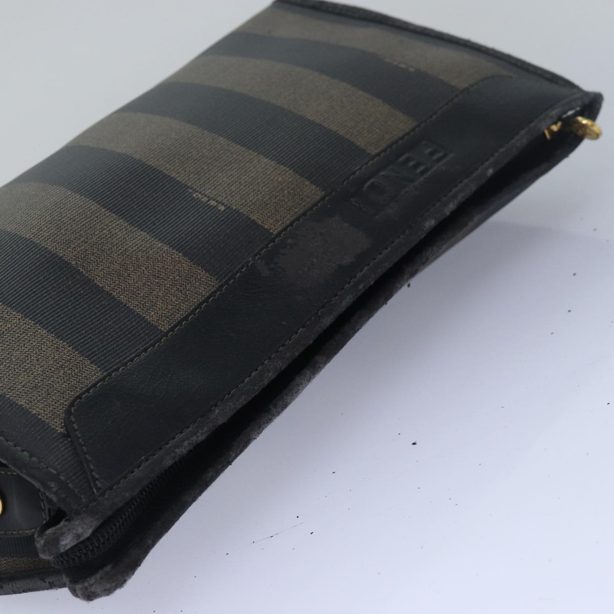 FENDI Pecan Canvas Clutch Bag Black Brown Auth ti1705