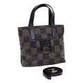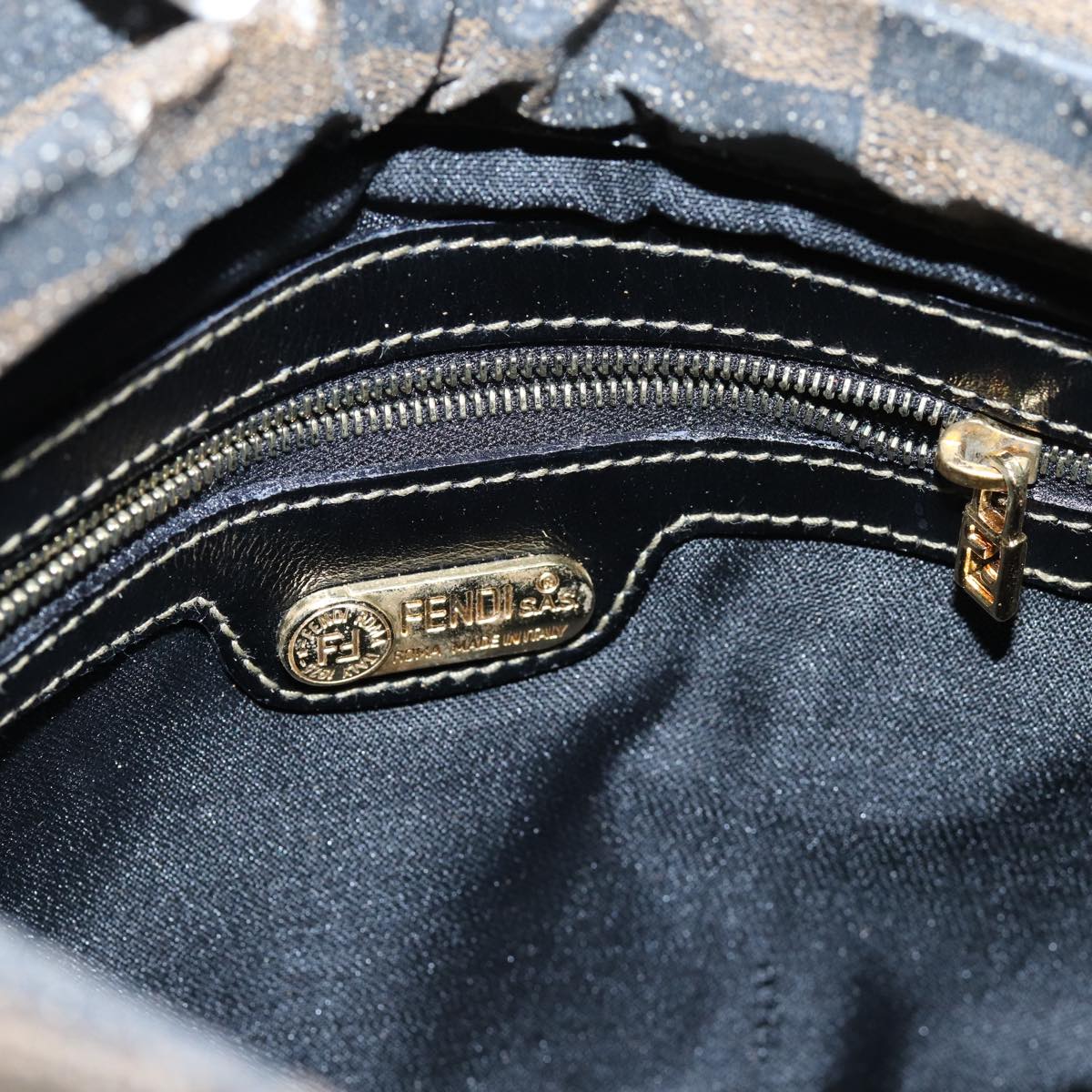 FENDI Pecan Canvas Hand Bag 2way Brown Black Auth 69215