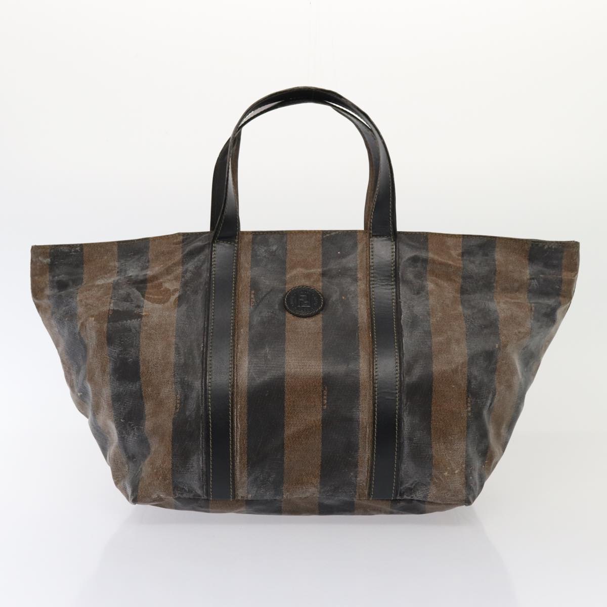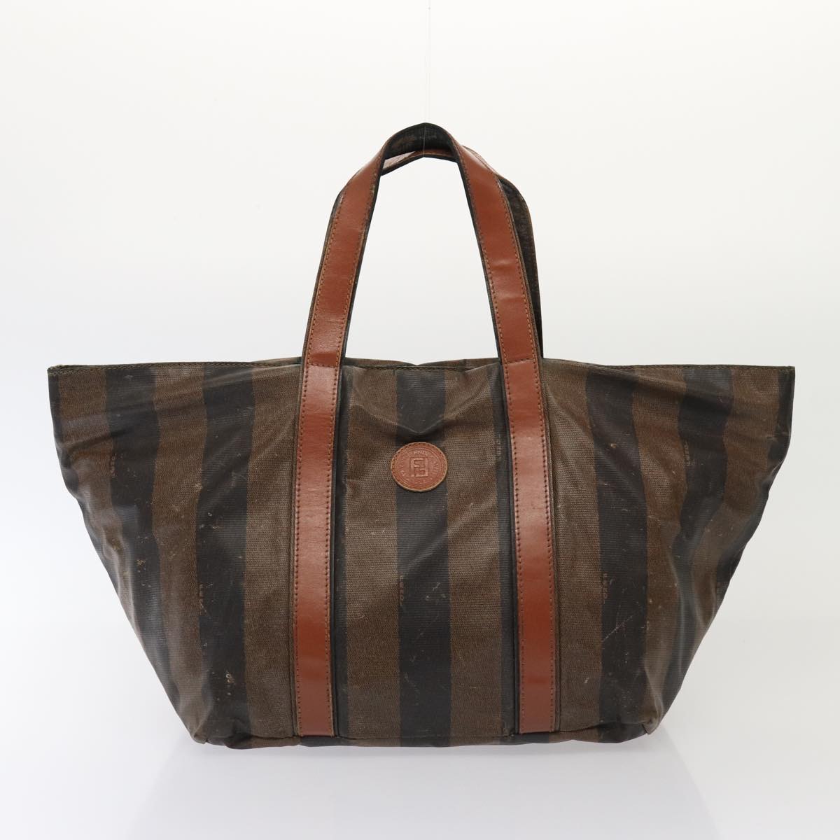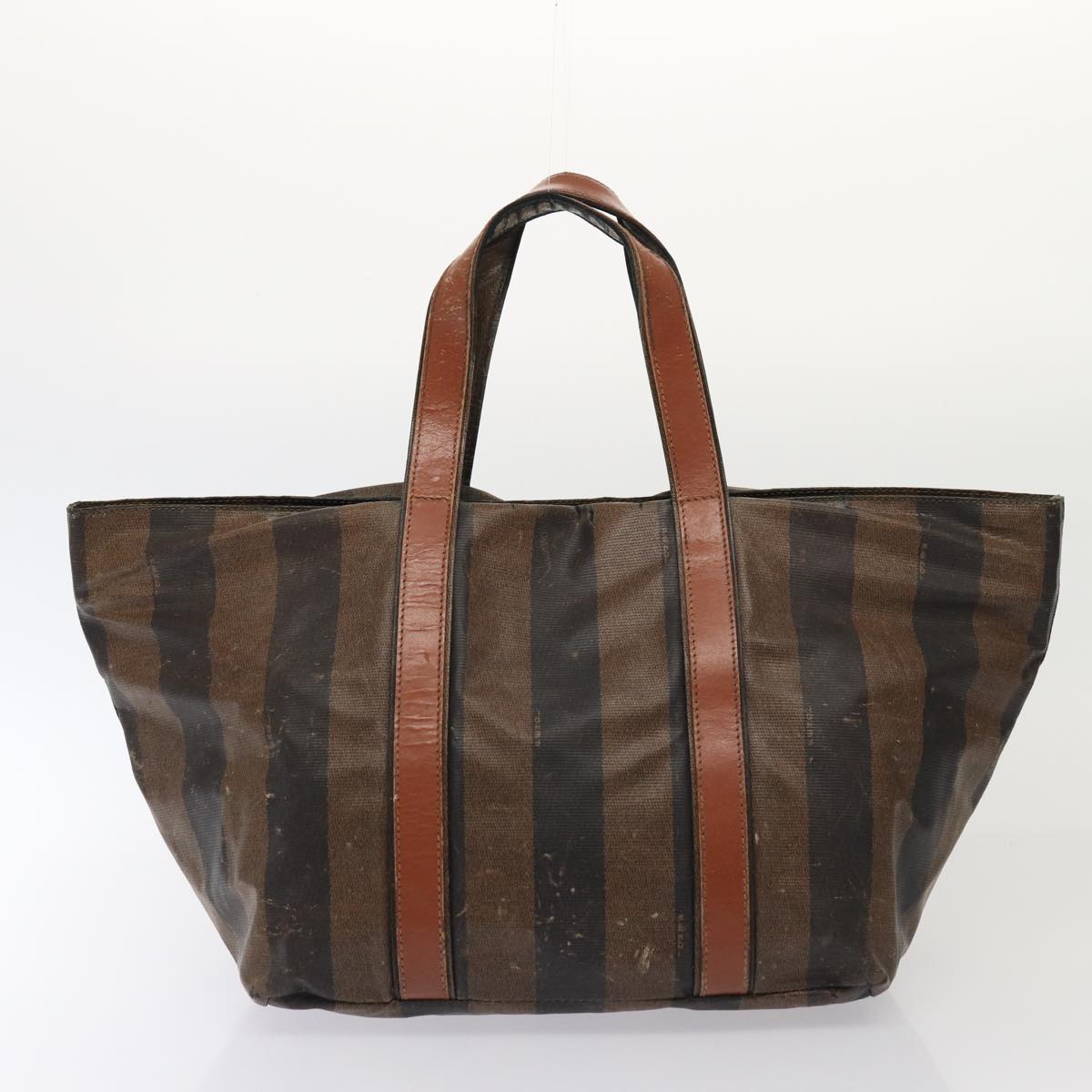 FENDI Pecan Canvas Hand Bag 3Set Black Brown Auth fm3719