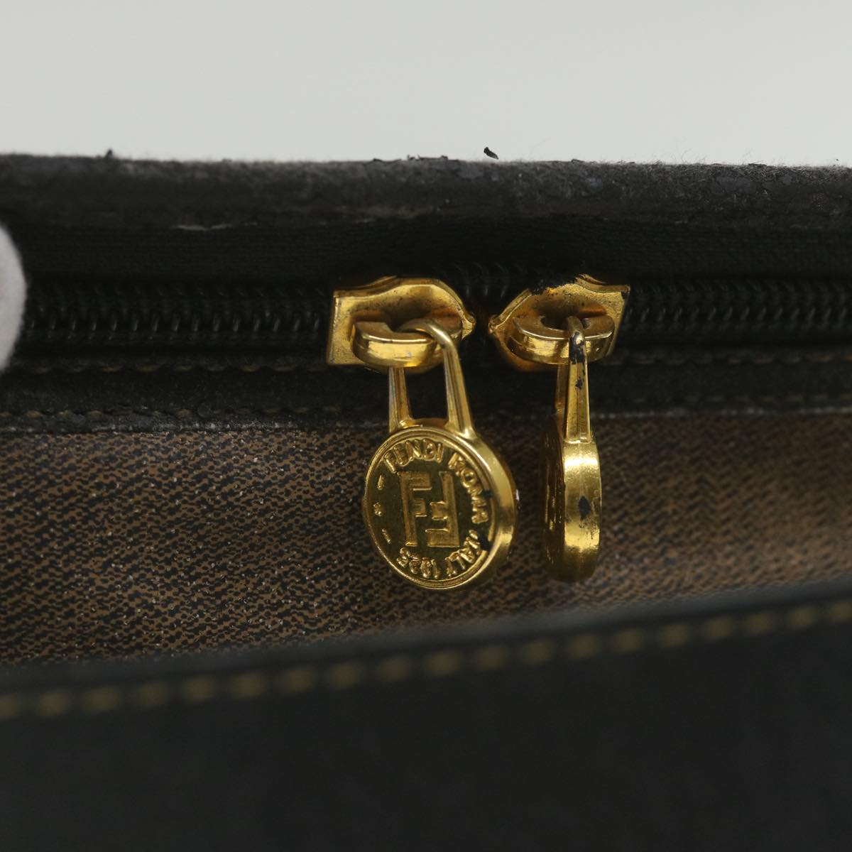FENDI Pecan Canvas Hand Bag Black Brown 2241 30939 078 Auth bs9842