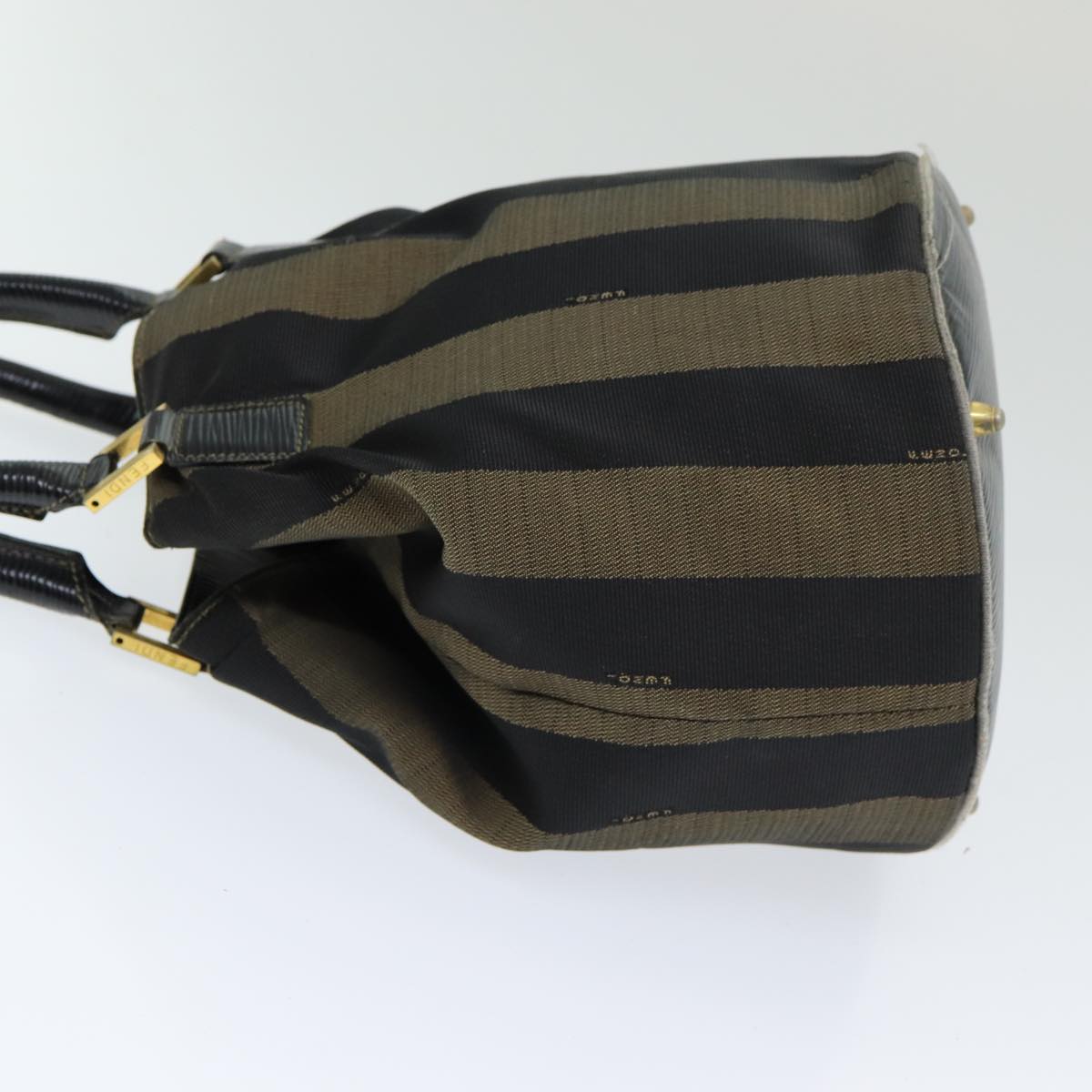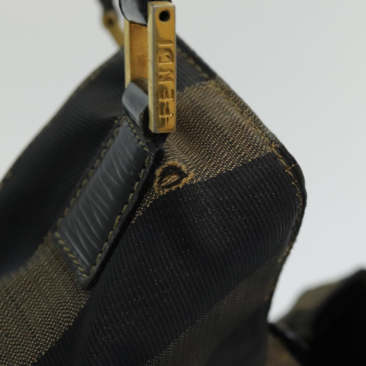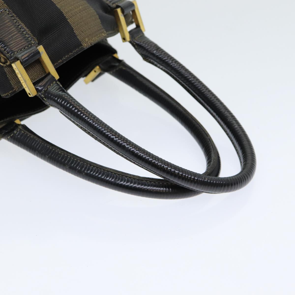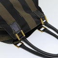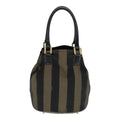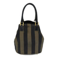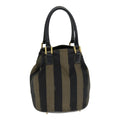 FENDI Pecan Canvas Hand Bag Brown Black Auth ar12316