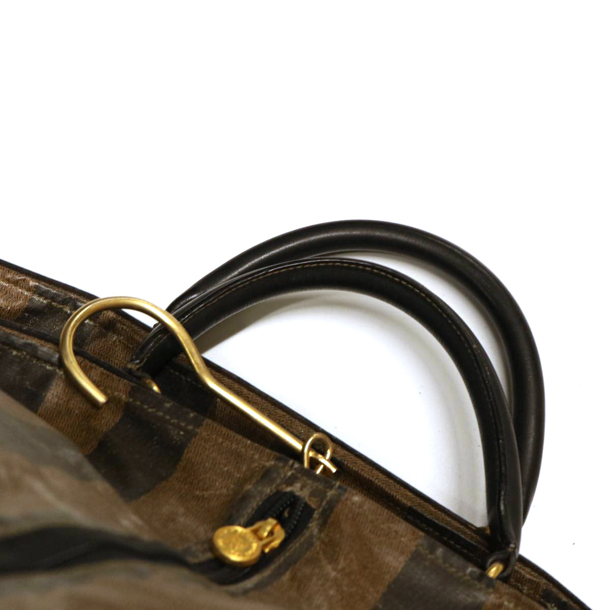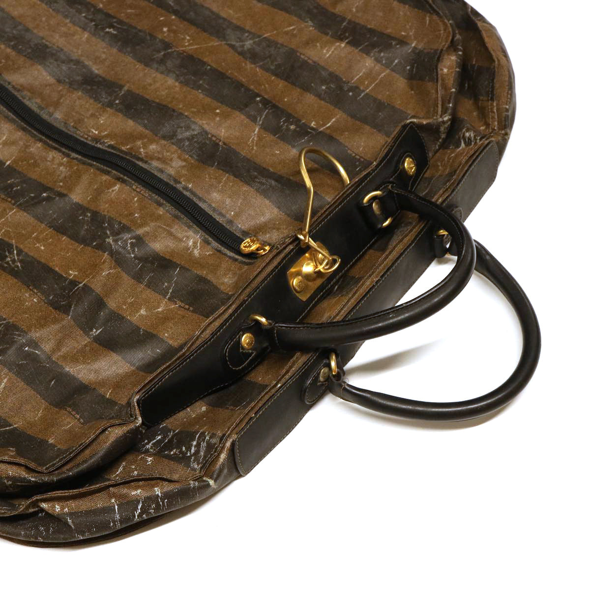 FENDI Pecan Canvas Hand Bag Garment Cover Nylon 2Set Brown Black Auth bs6470