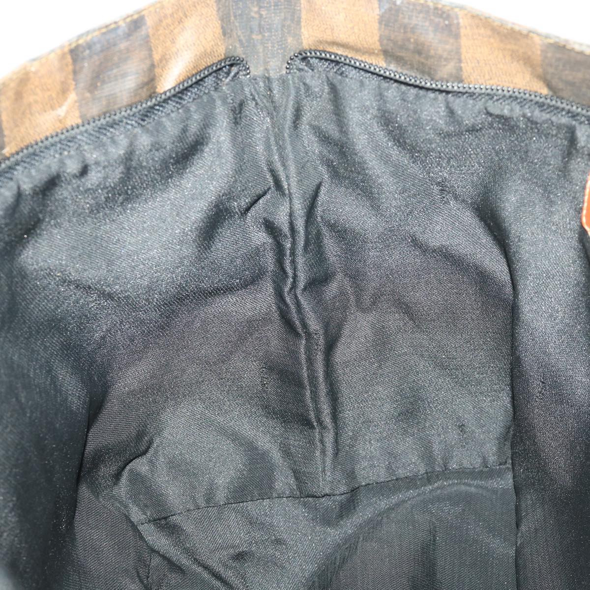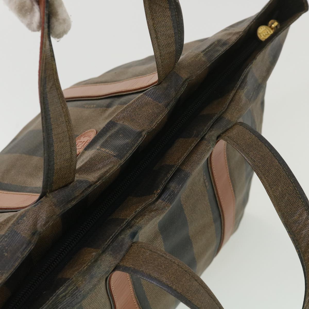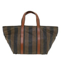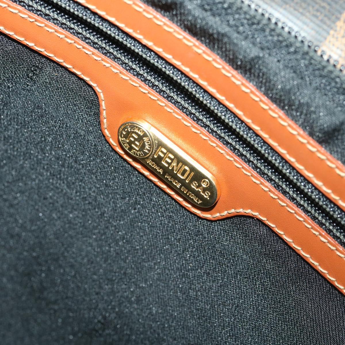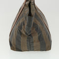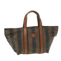 FENDI Pecan Canvas Hand Bag Nylon Black Brown Auth ti988