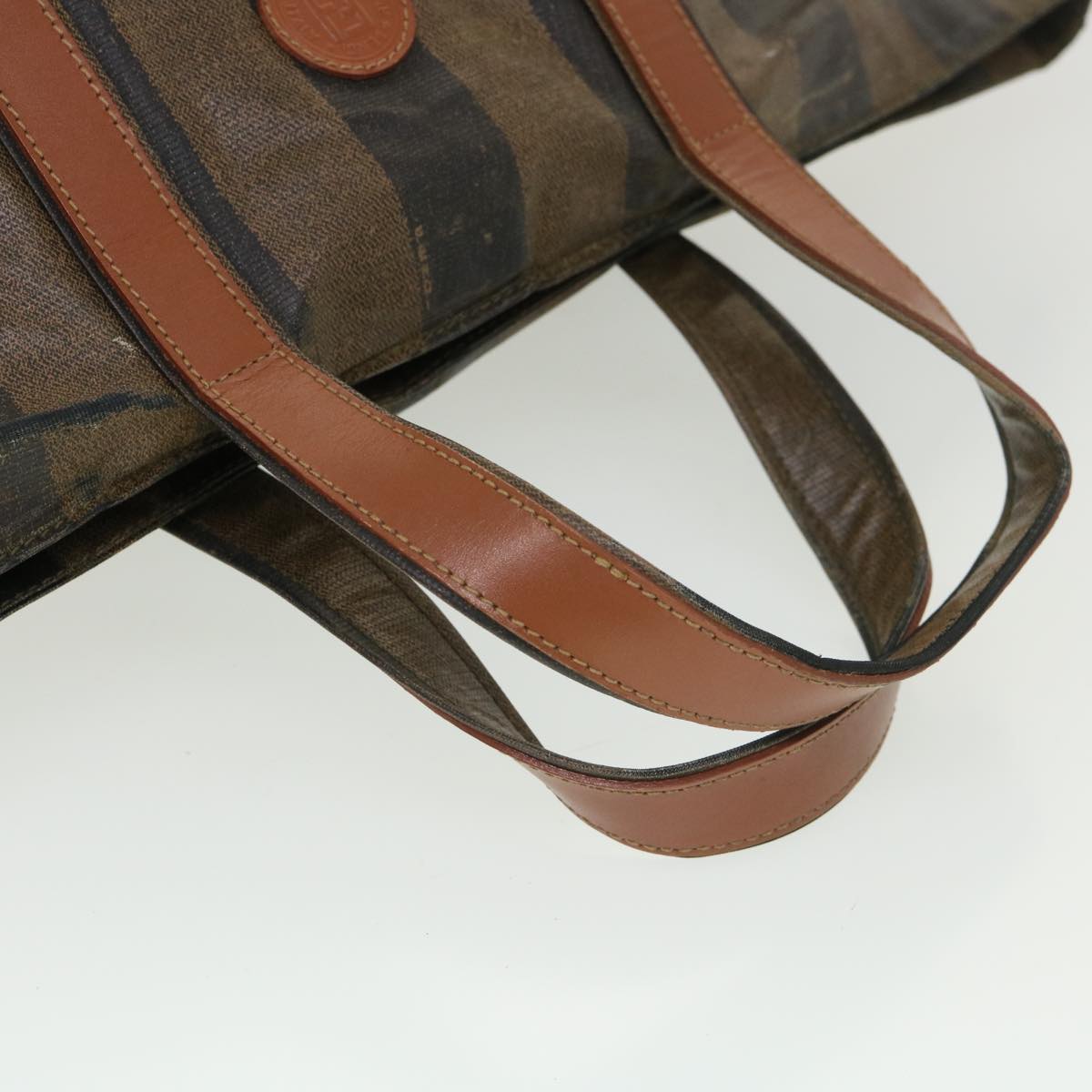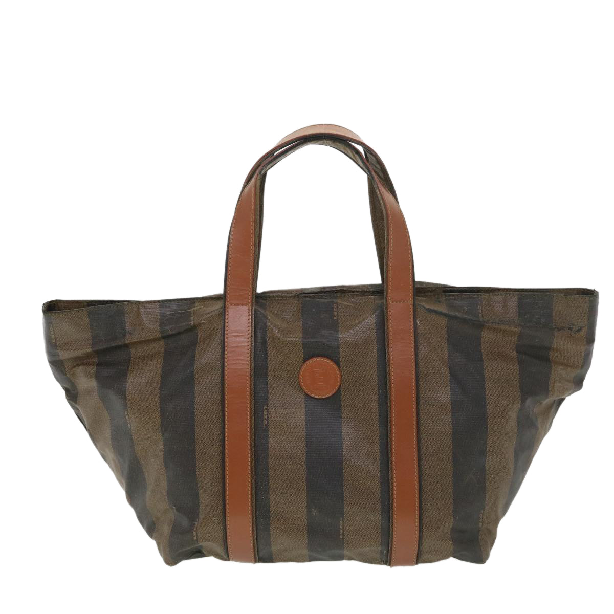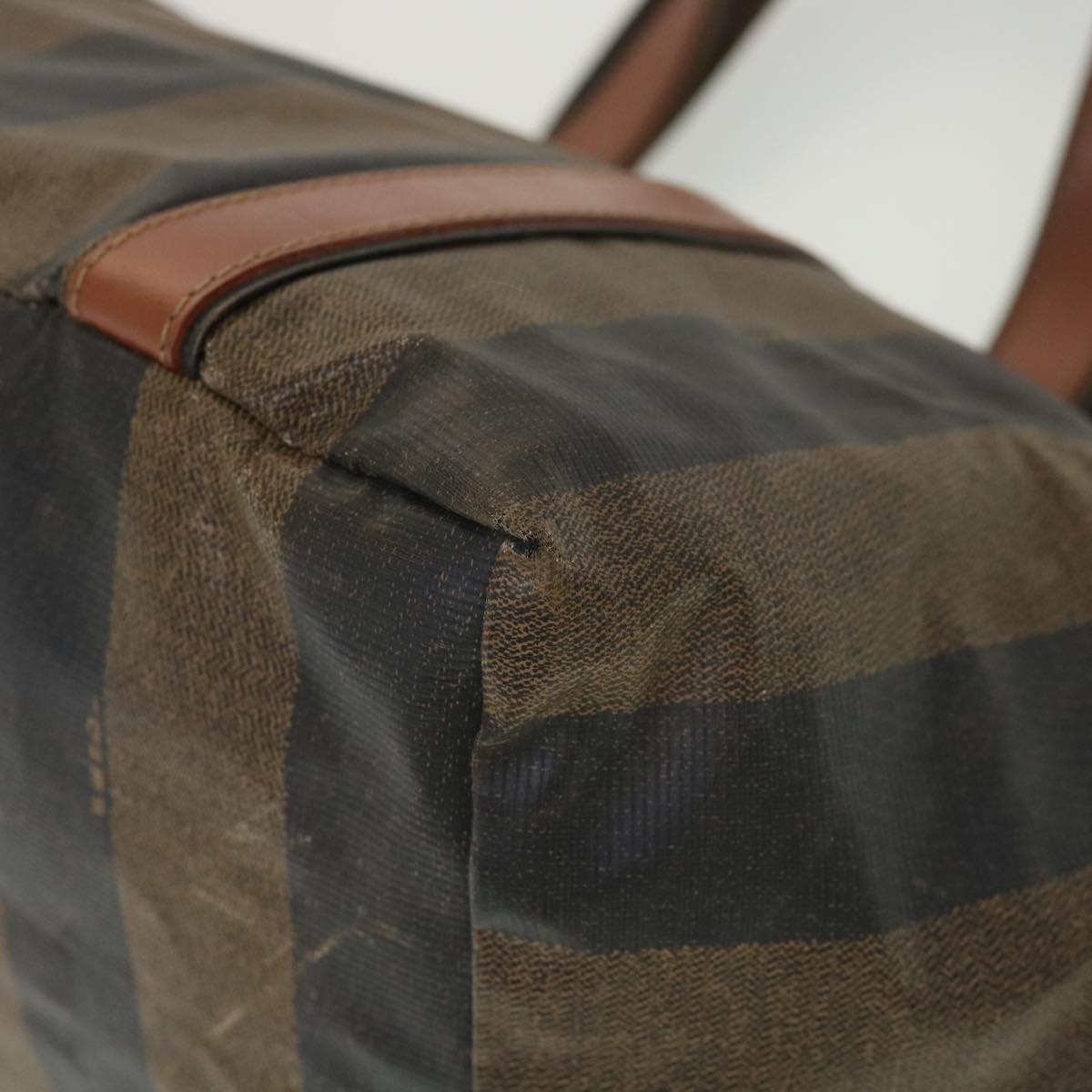 FENDI Pecan Canvas Hand Bag Nylon Black Brown Auth ti988