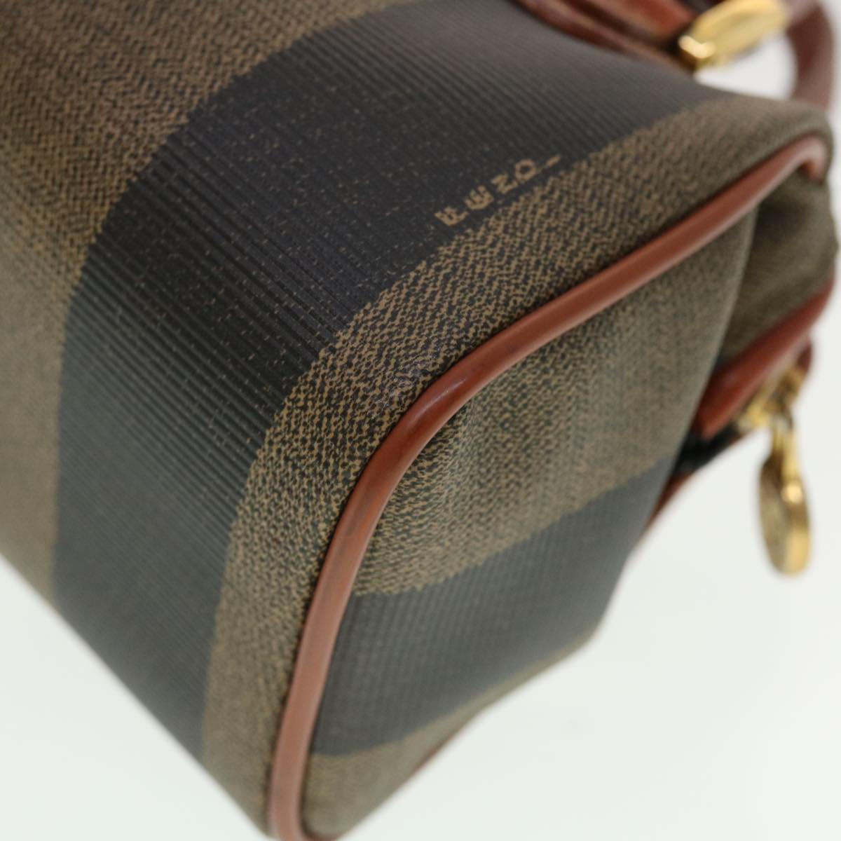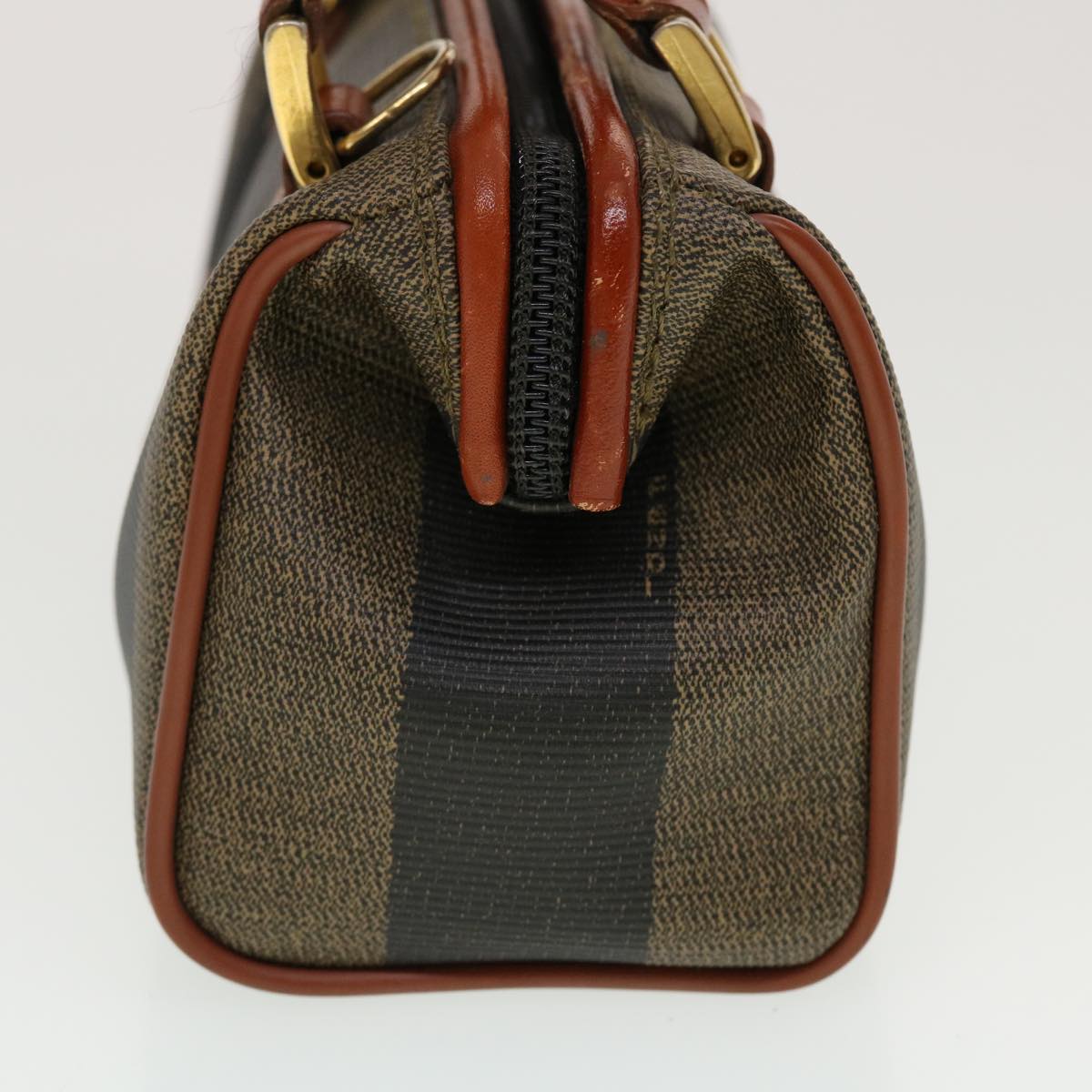 FENDI Pecan Canvas Mini Hand Bag Brown Black Auth am4474