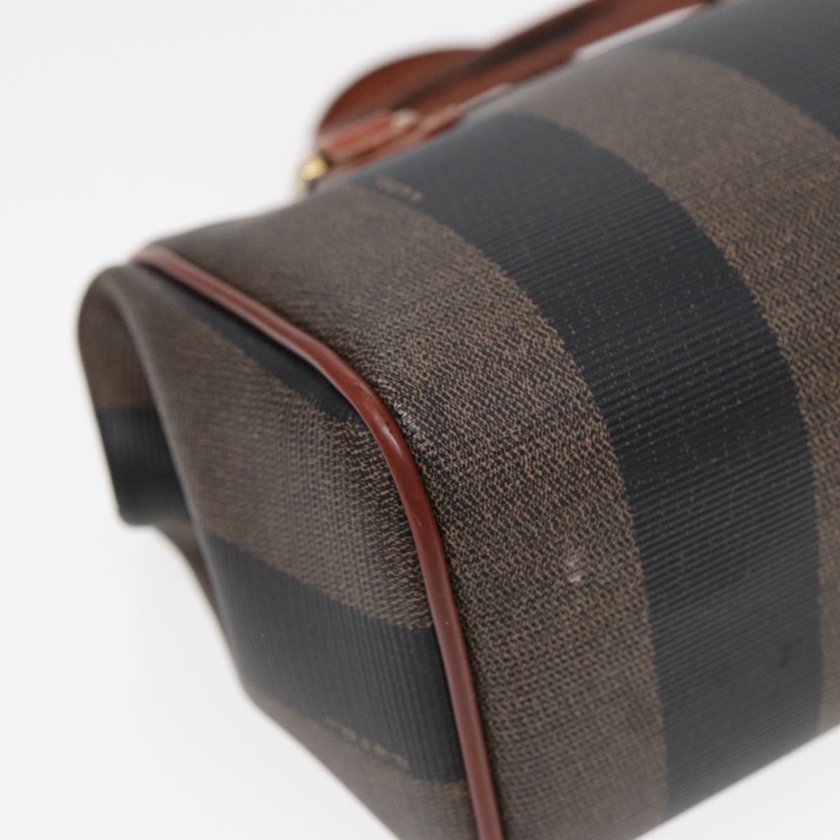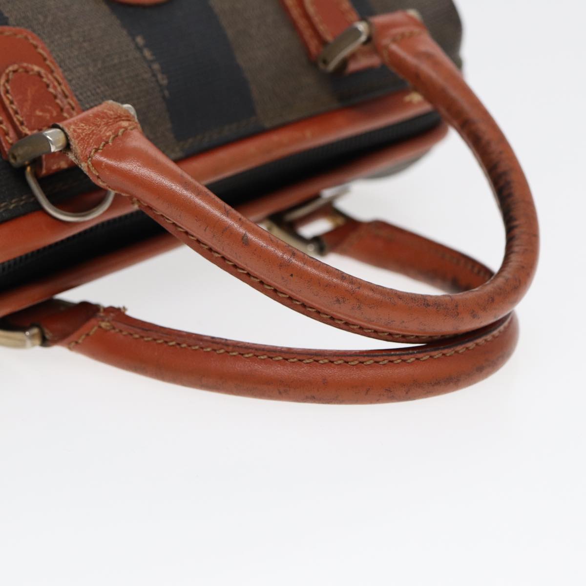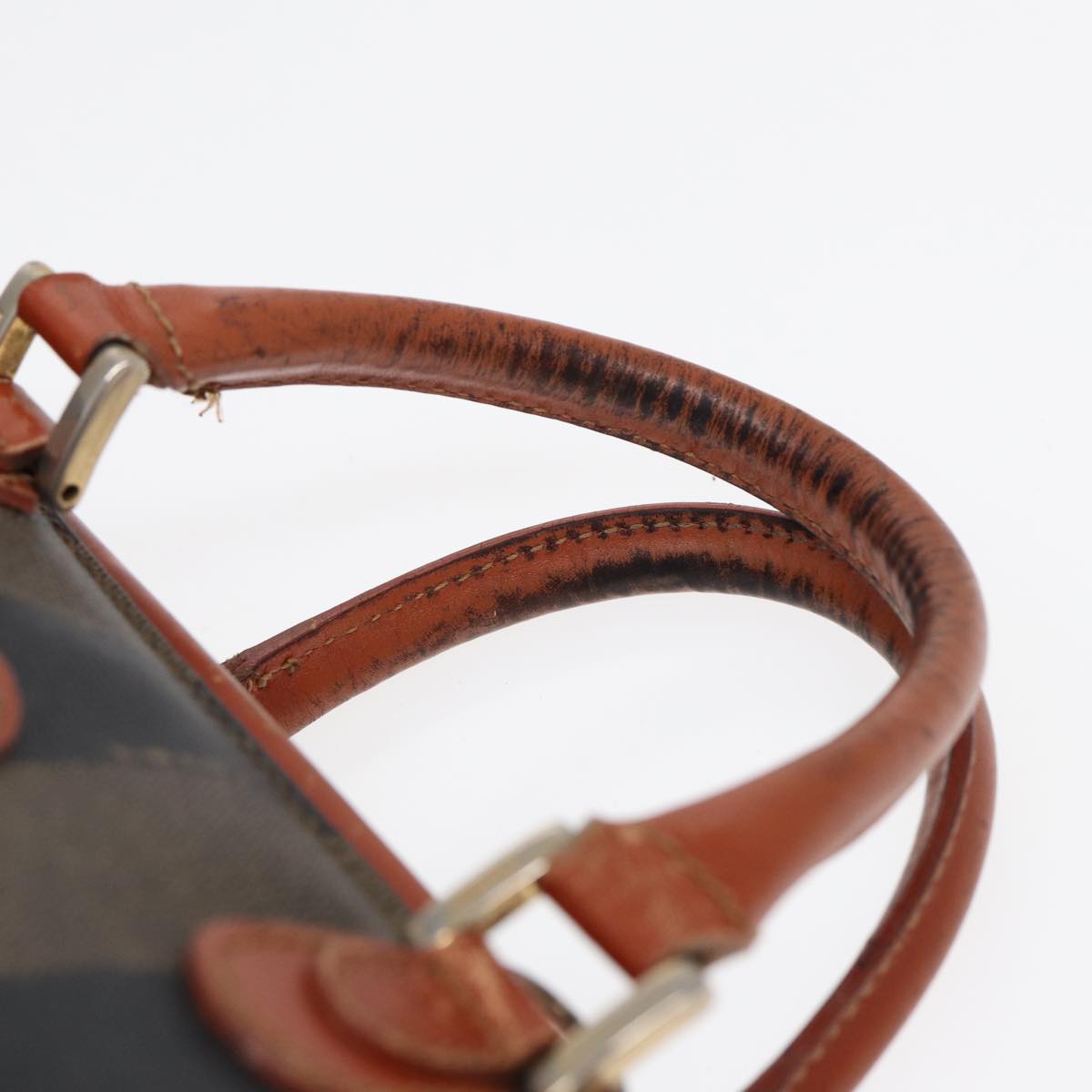 FENDI Pecan Canvas Mini Hand Bag Brown Black gold Auth yk14400