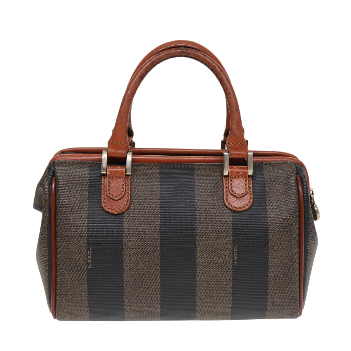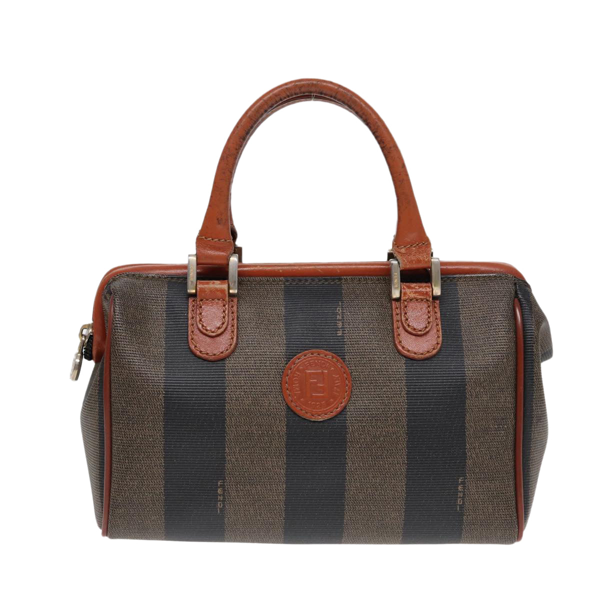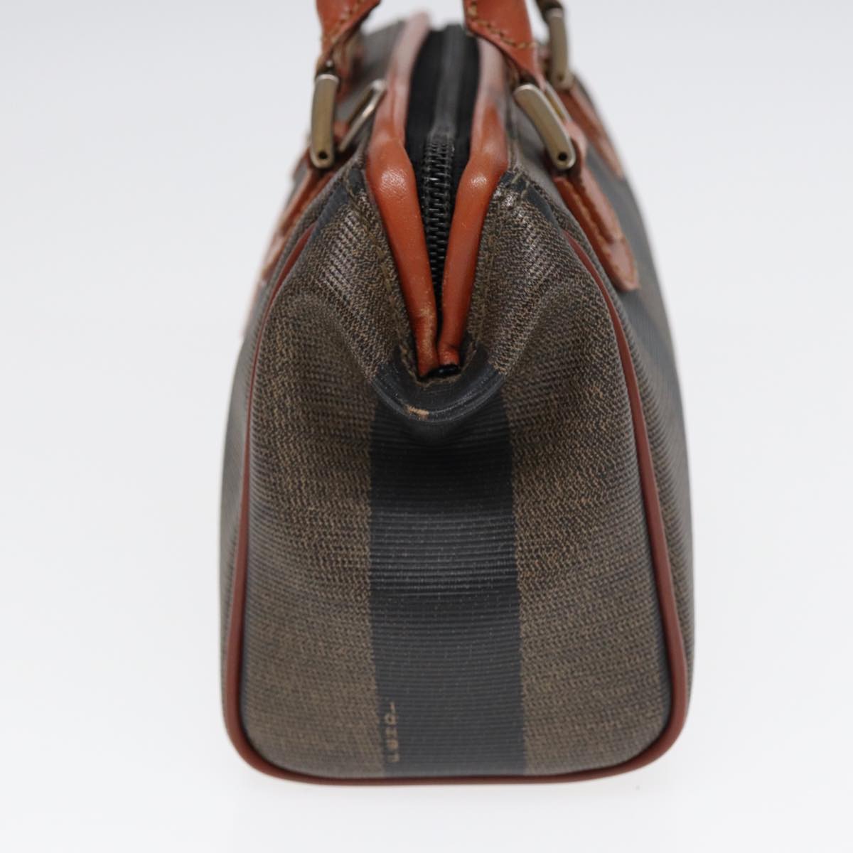 FENDI Pecan Canvas Mini Hand Bag Brown Black gold Auth yk14400