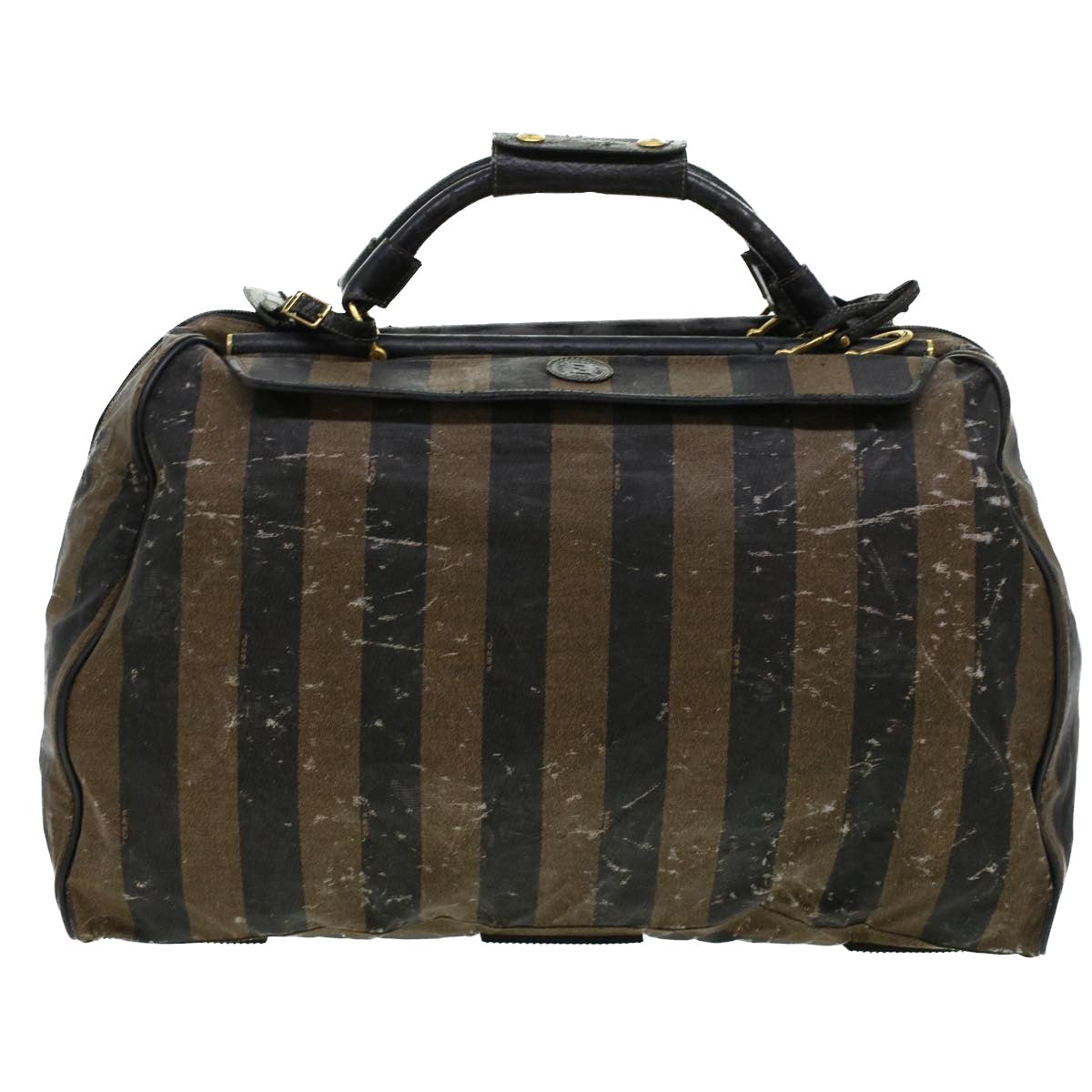 FENDI Pecan Canvas Shoulder Bag 2way Black Brown Auth th3595