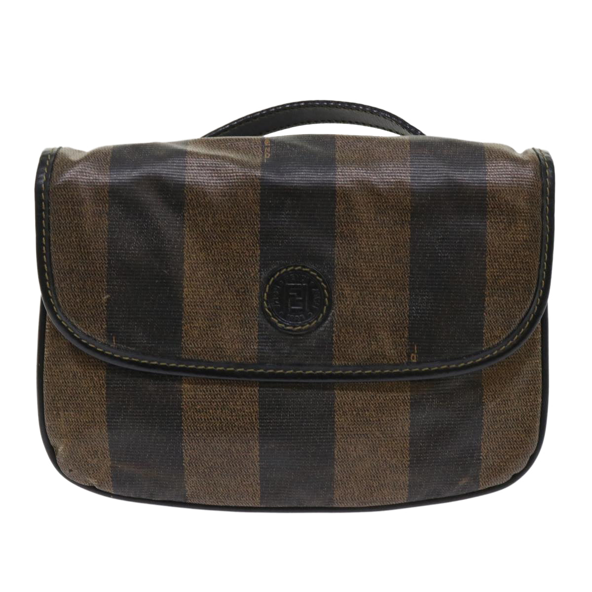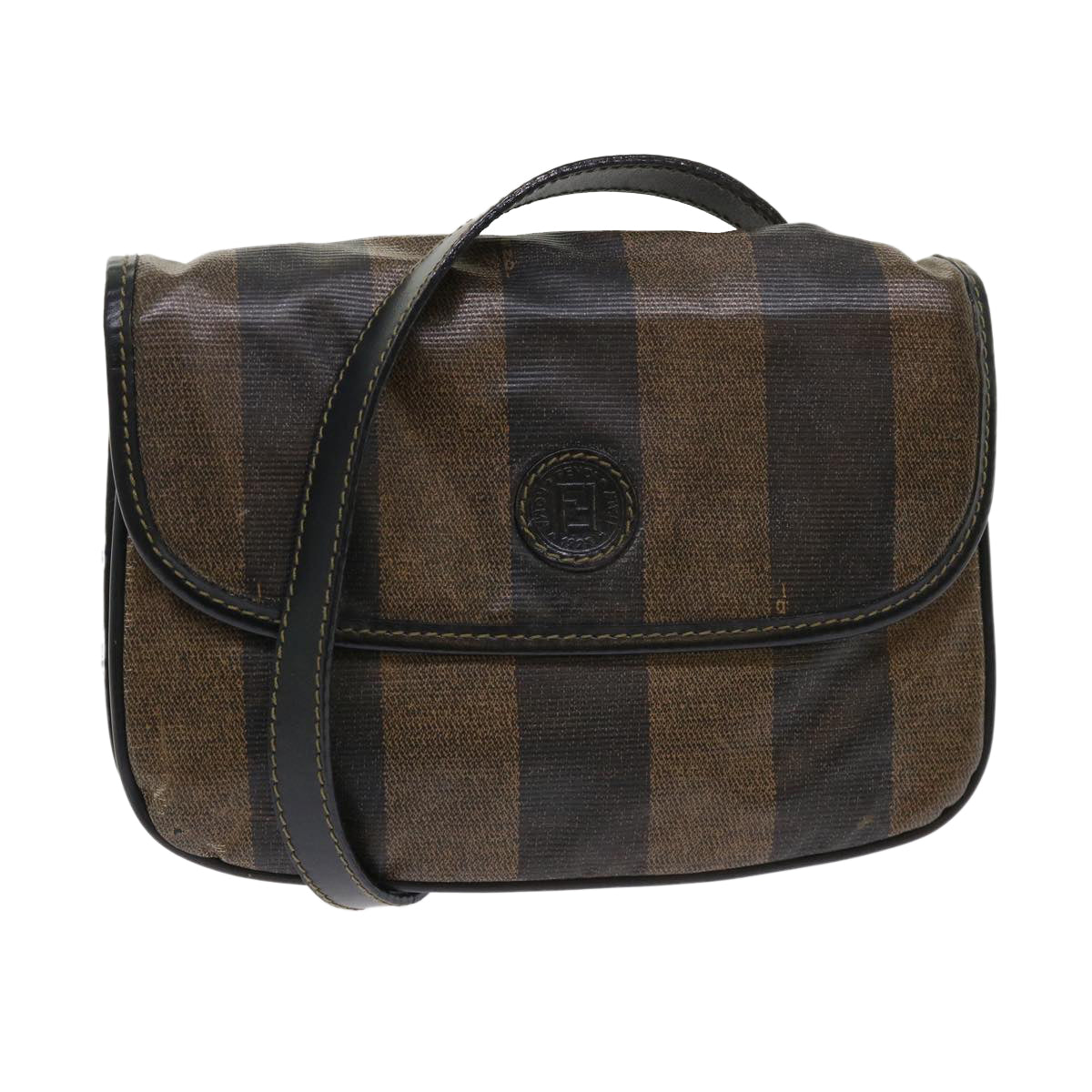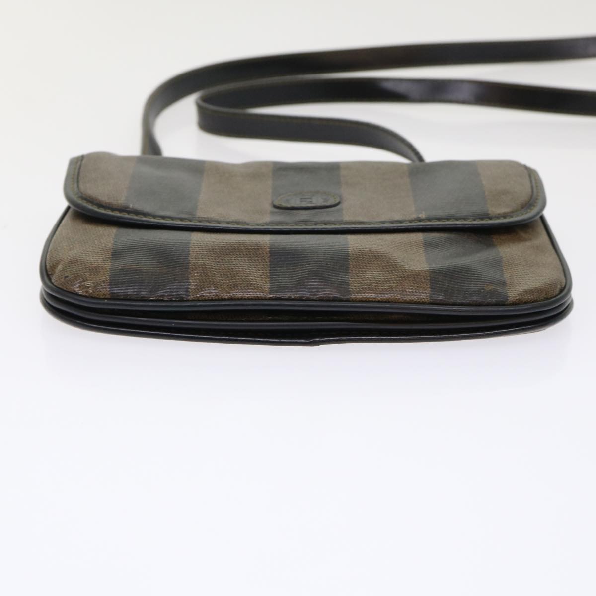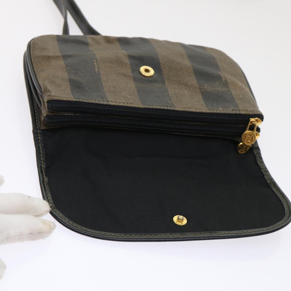 FENDI Pecan Canvas Shoulder Bag Black Brown Auth bs6553