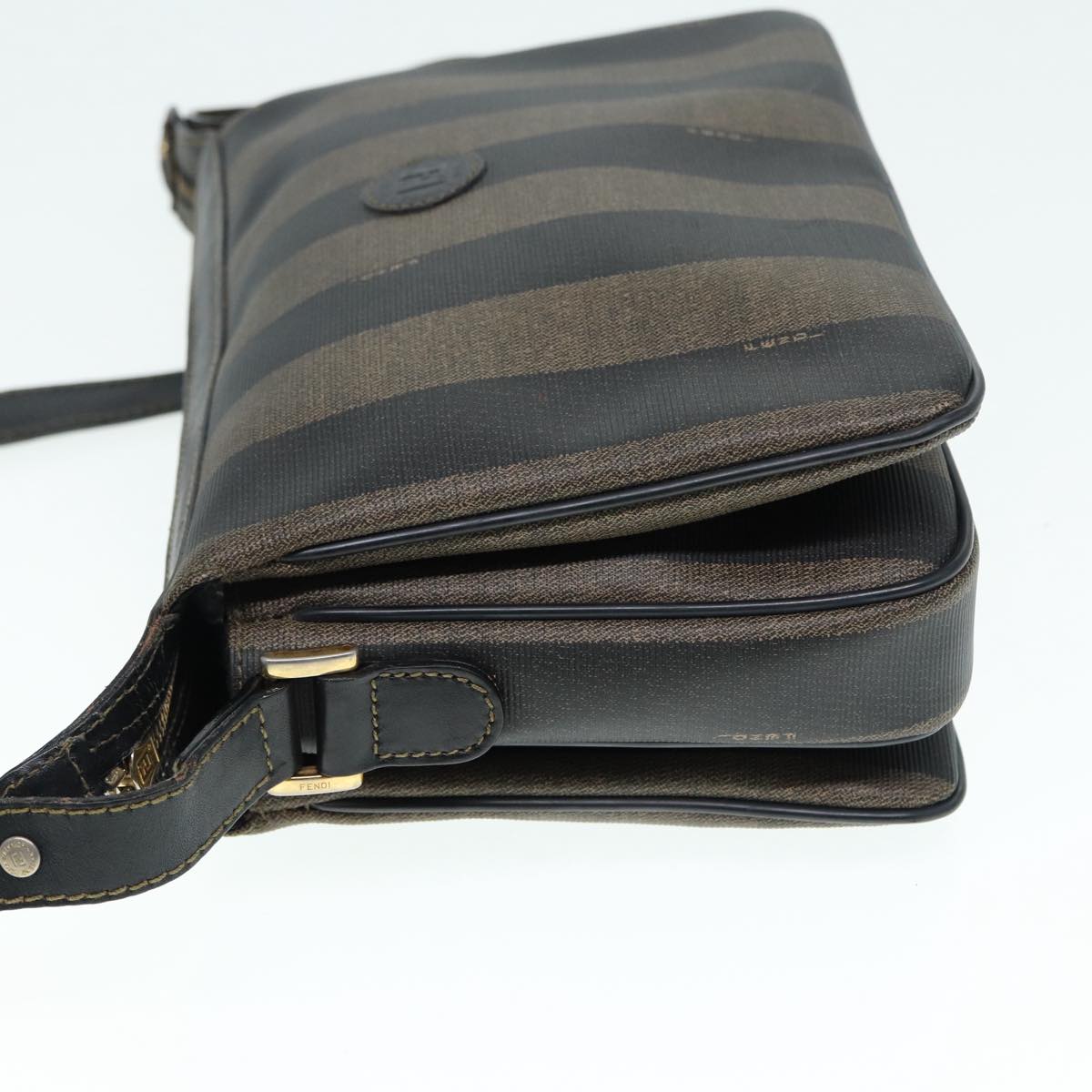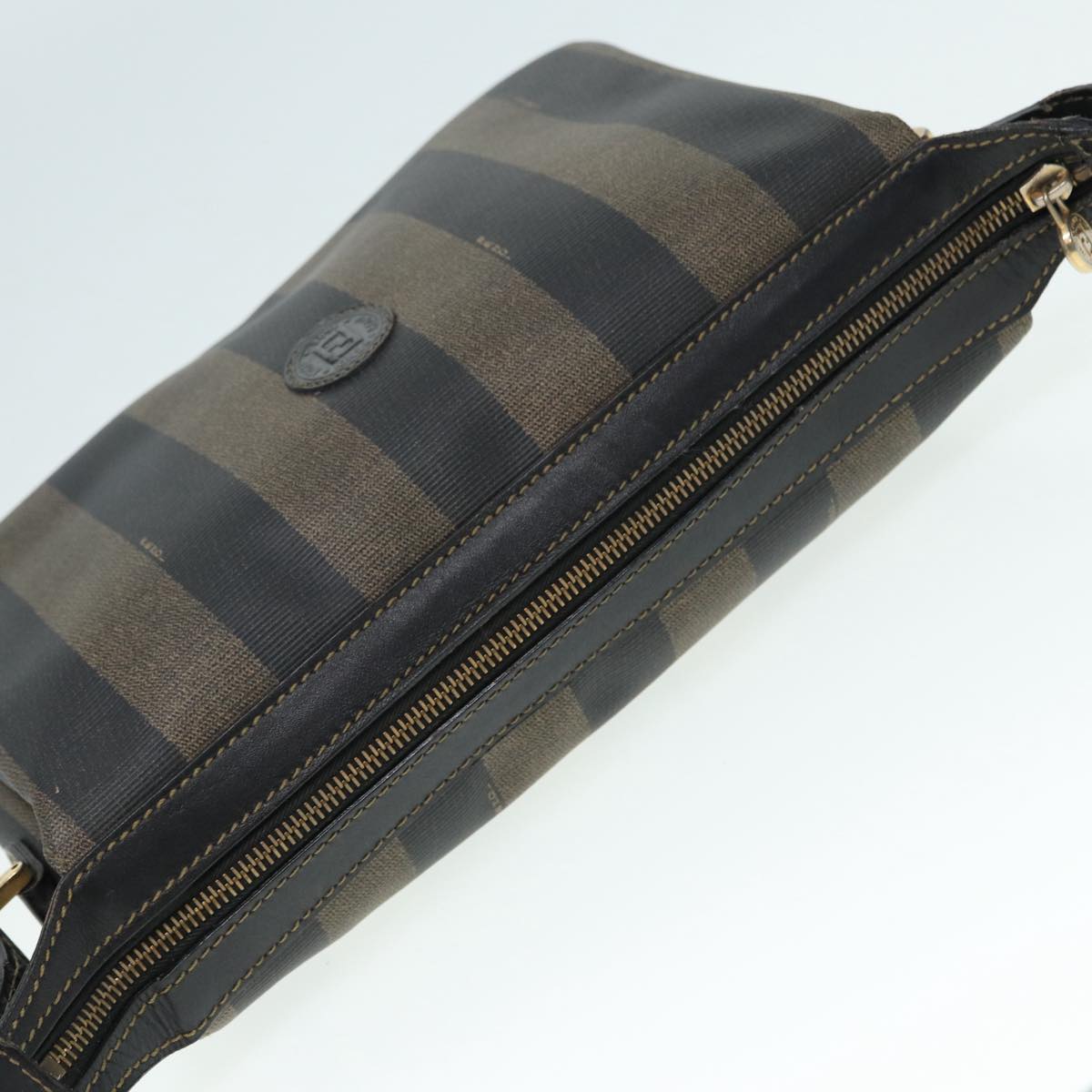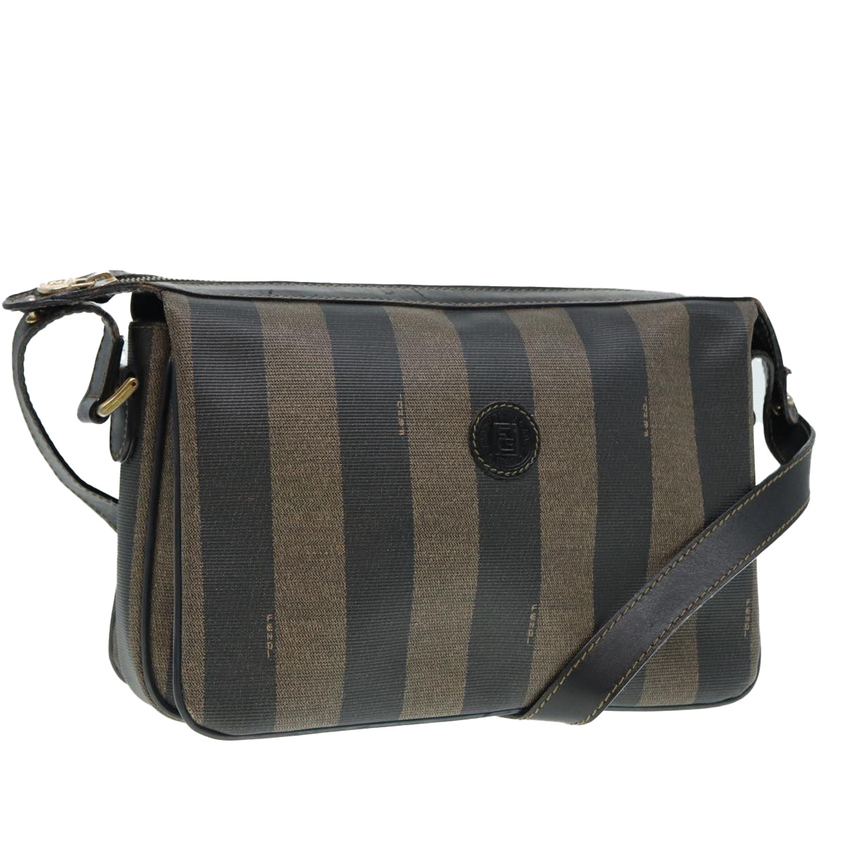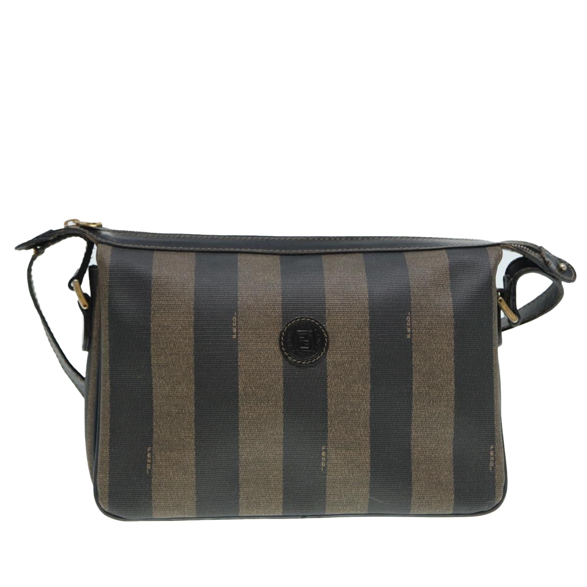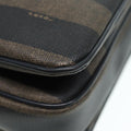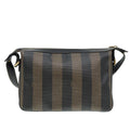 FENDI Pecan Canvas Shoulder Bag Brown Black gold Auth ep5562