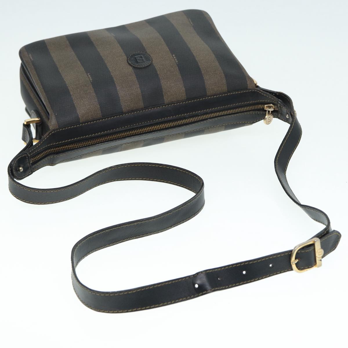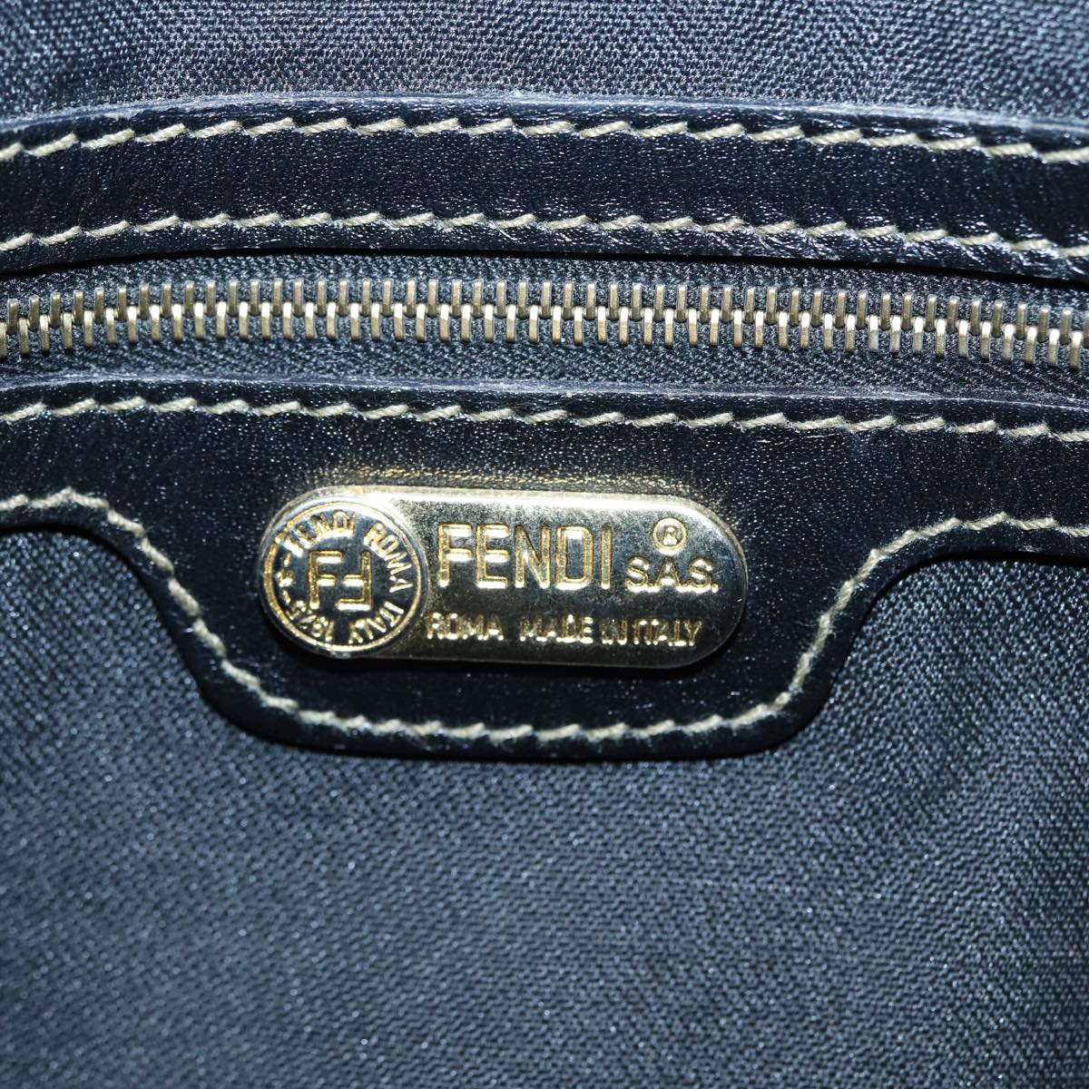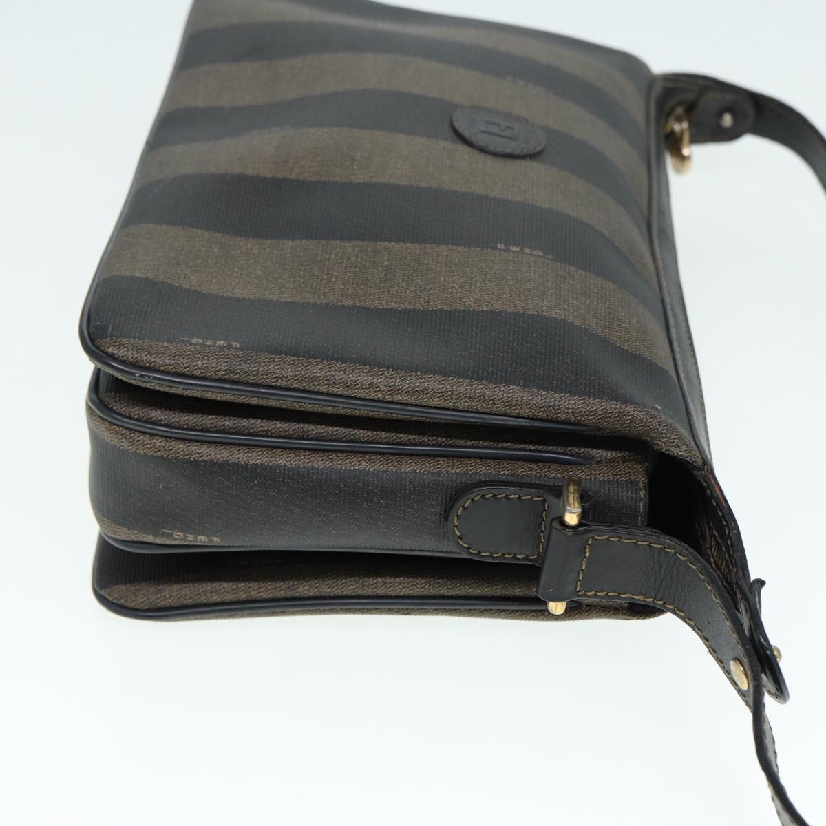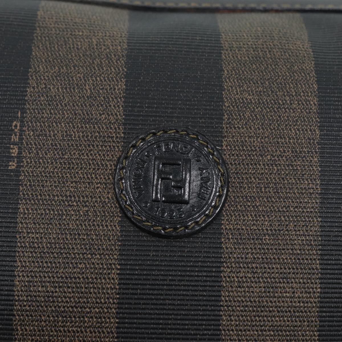 FENDI Pecan Canvas Shoulder Bag Brown Black gold Auth ep5562