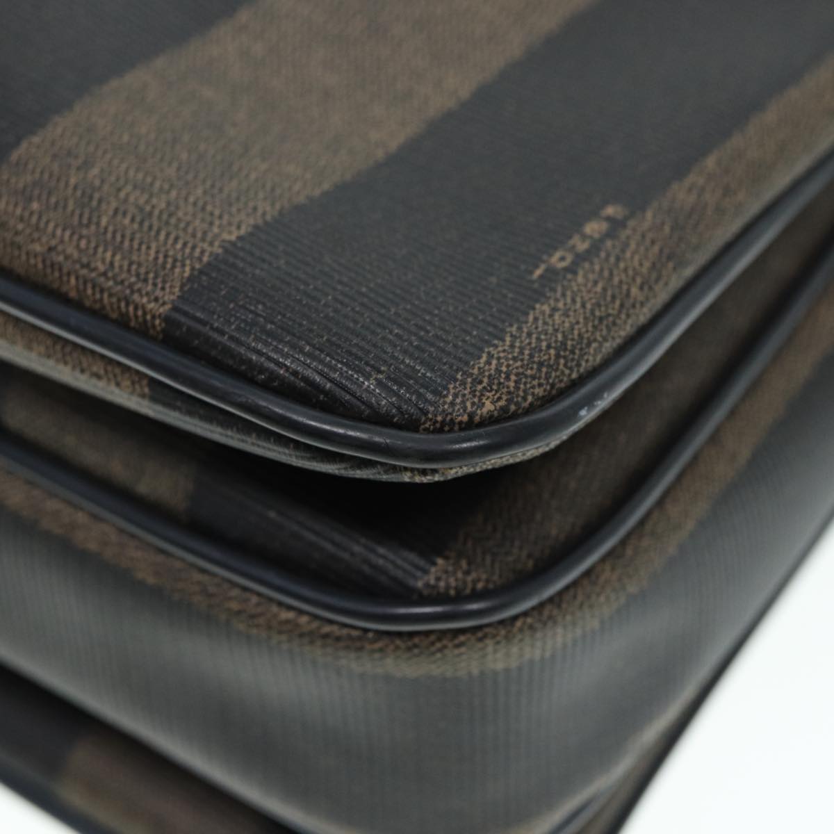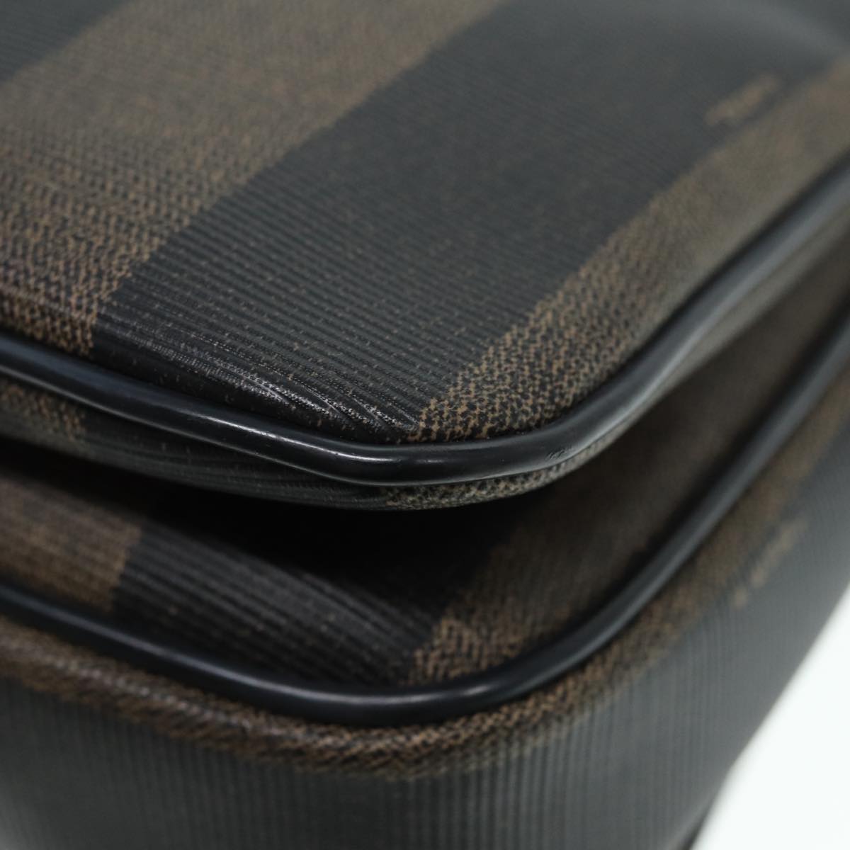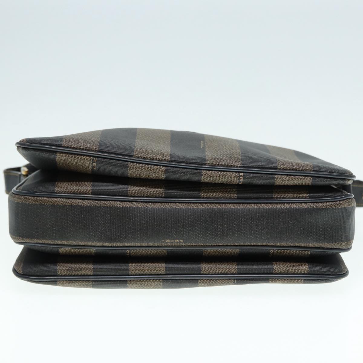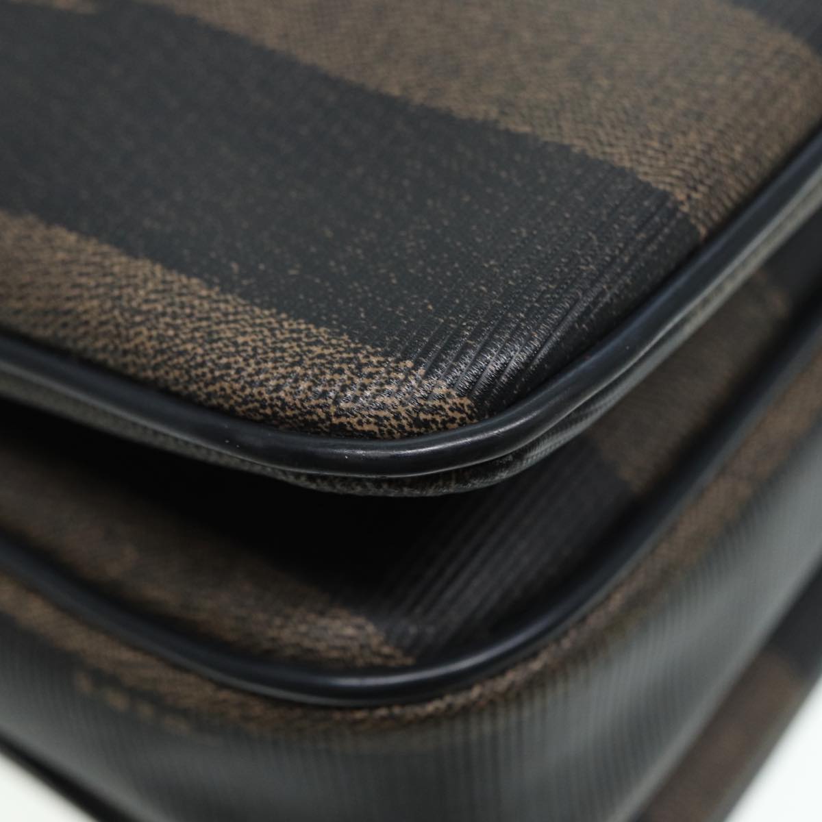 FENDI Pecan Canvas Shoulder Bag Brown Black gold Auth ep5562