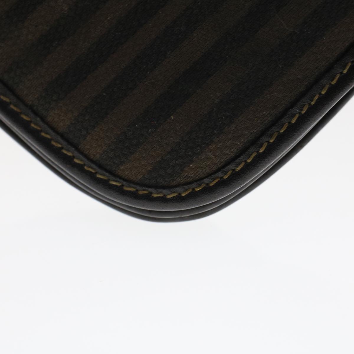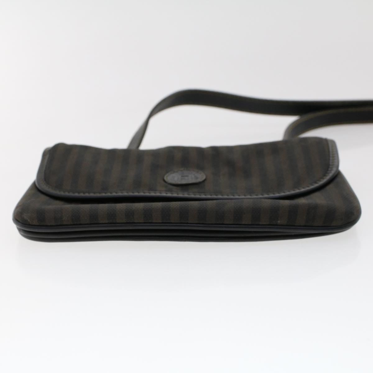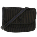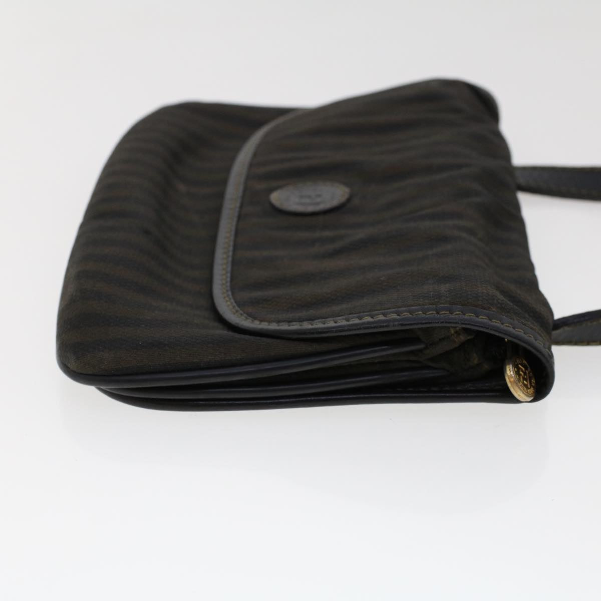 FENDI Pecan Canvas Shoulder Bag Leather Black Brown Auth yb229