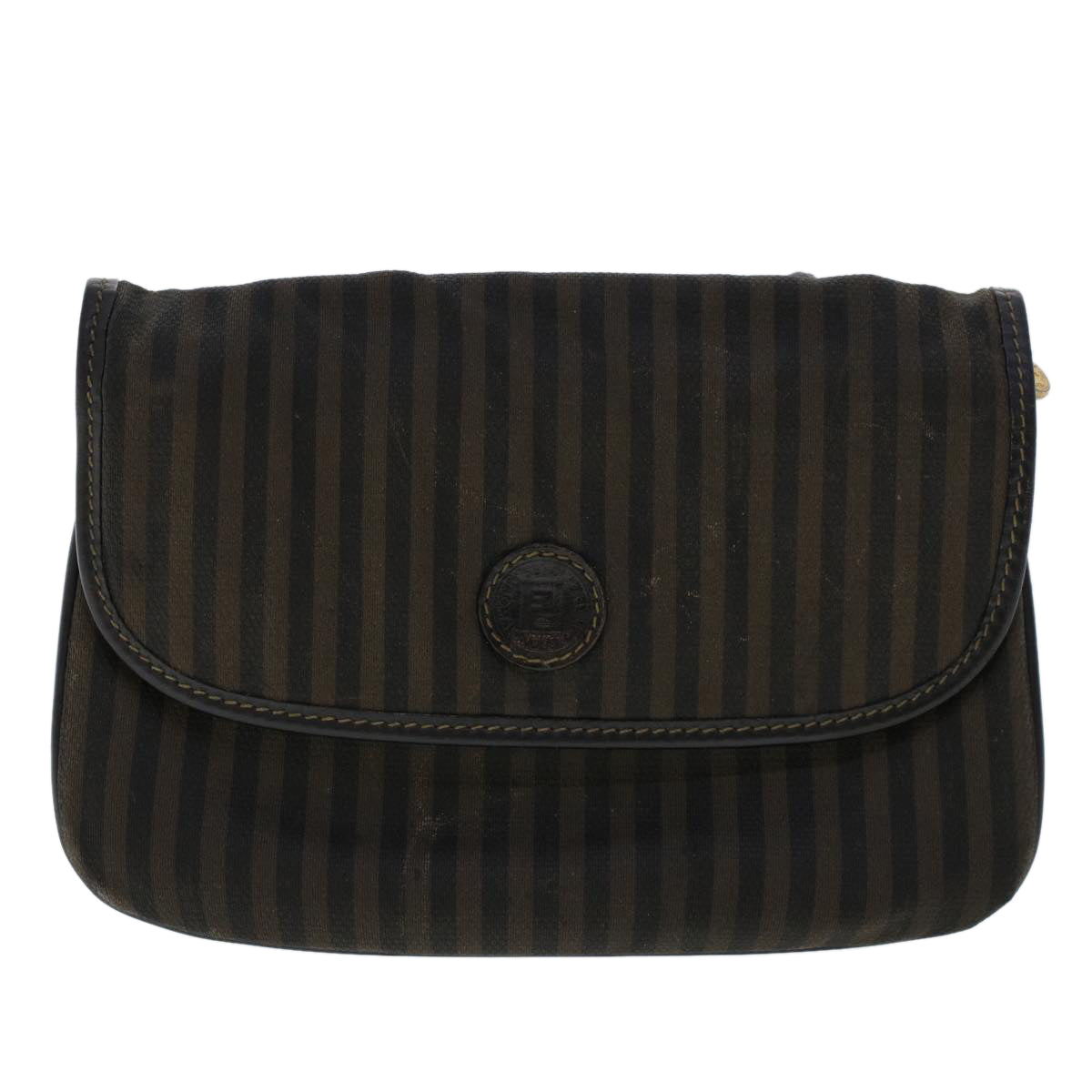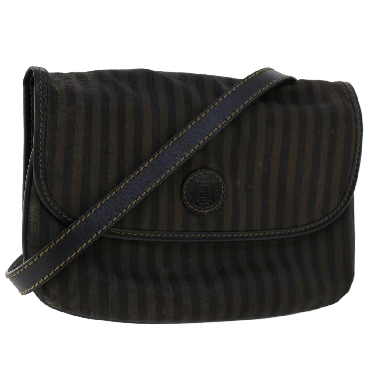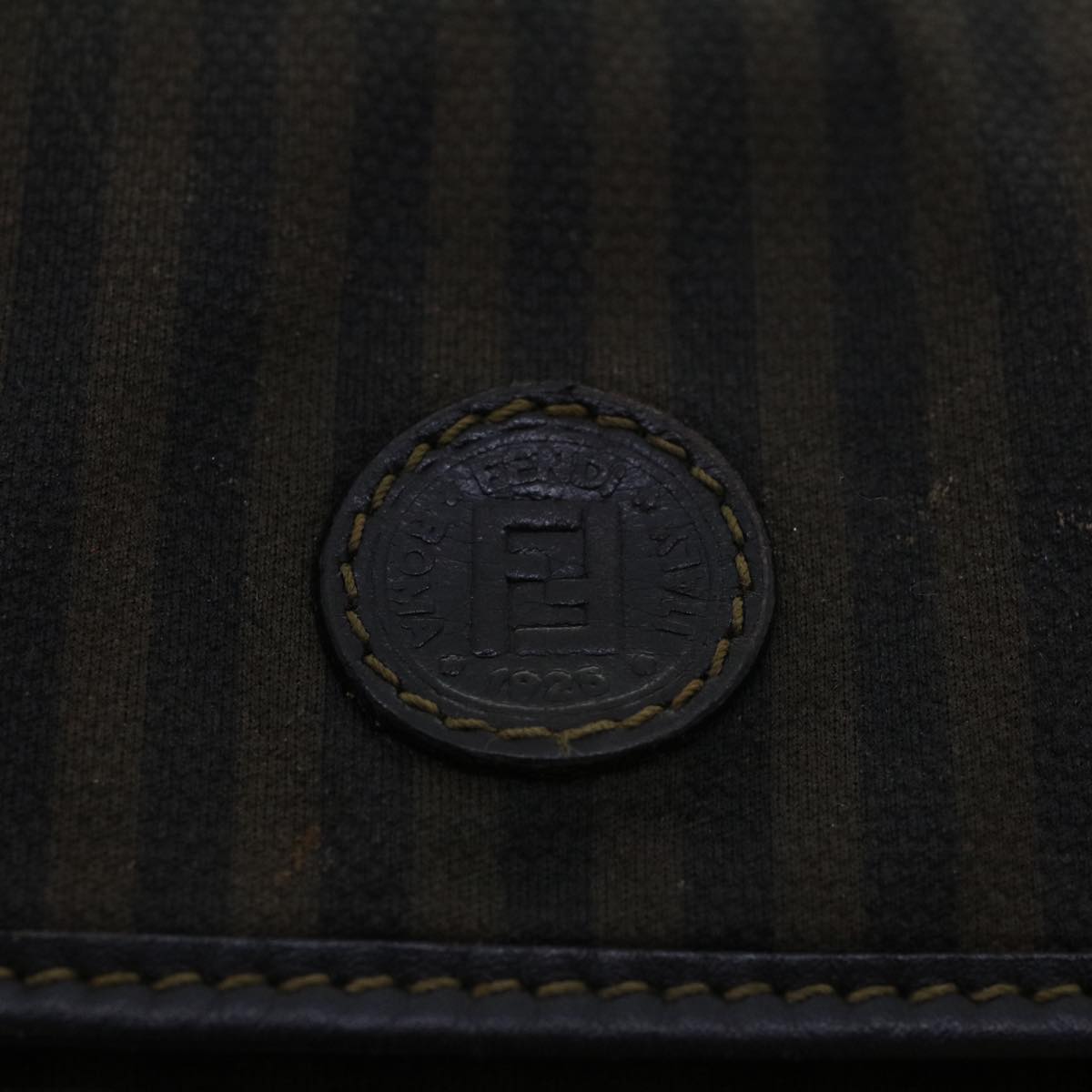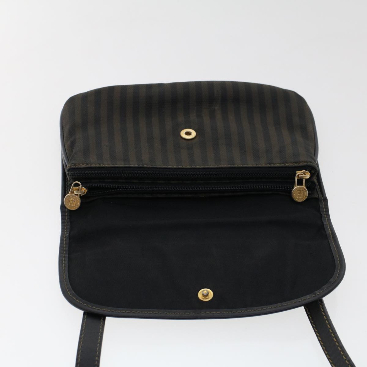 FENDI Pecan Canvas Shoulder Bag Leather Black Brown Auth yb229