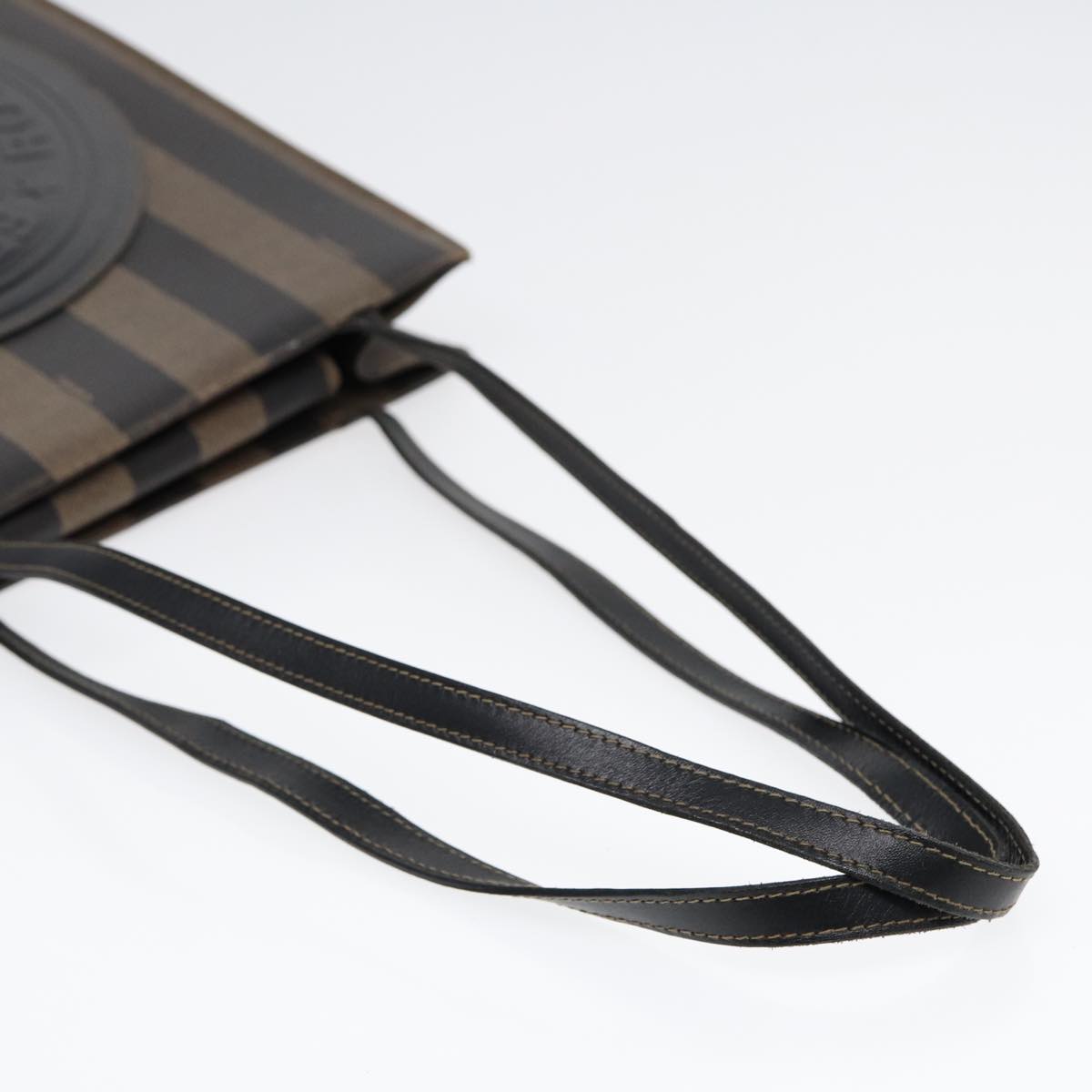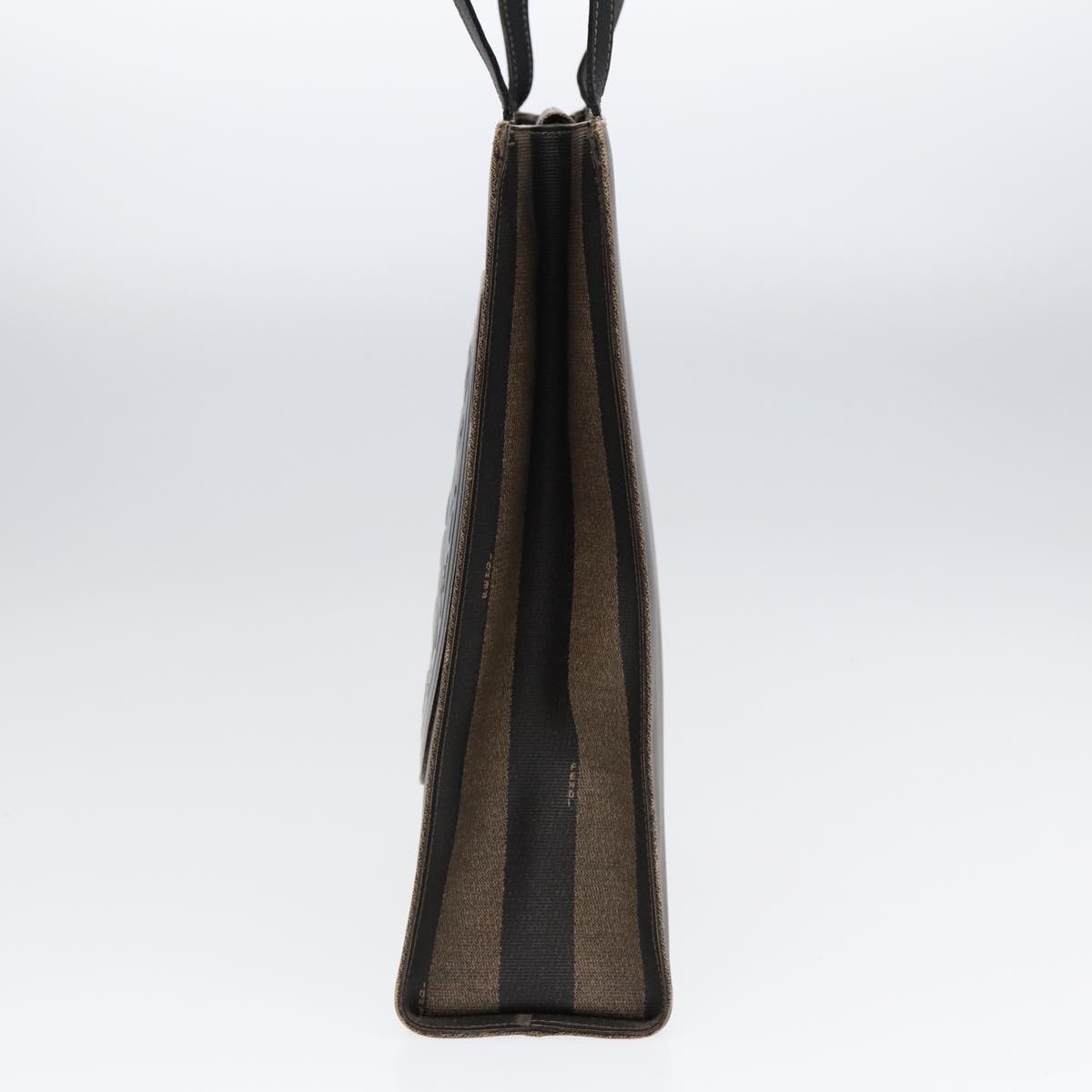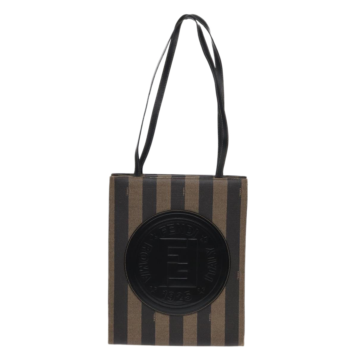 FENDI Pecan Canvas Tote Bag Brown Black gold Auth ep5527