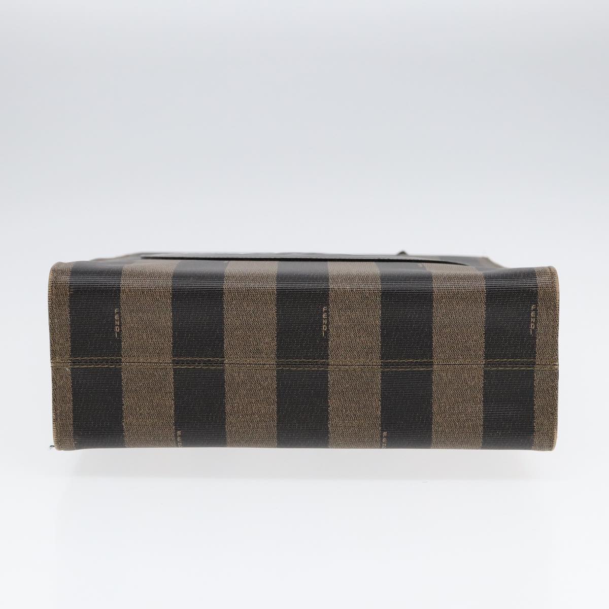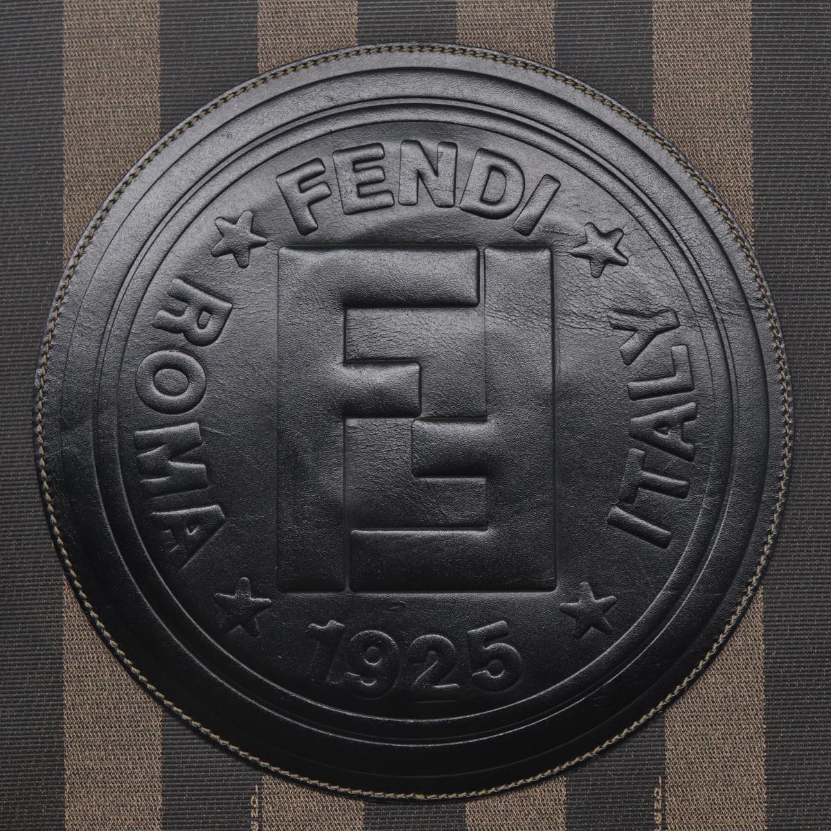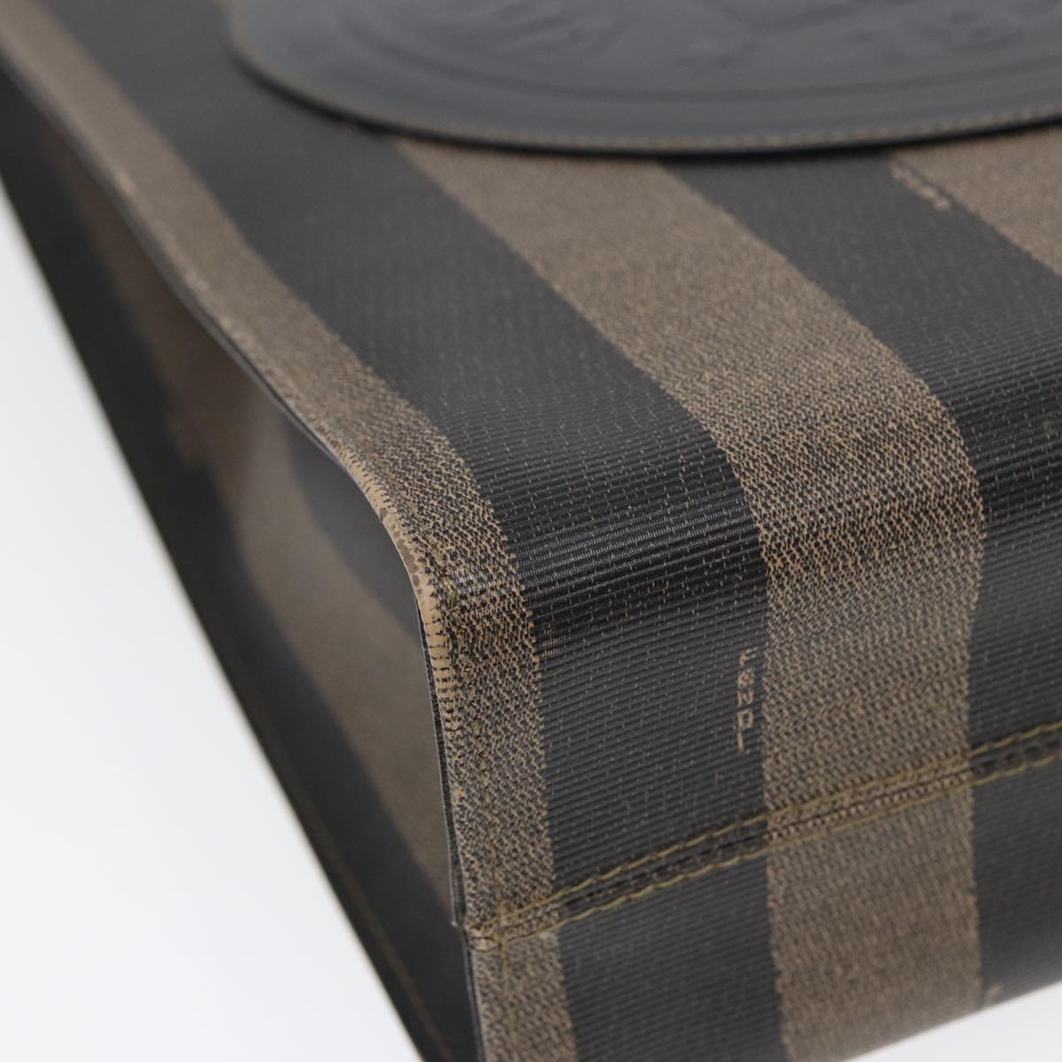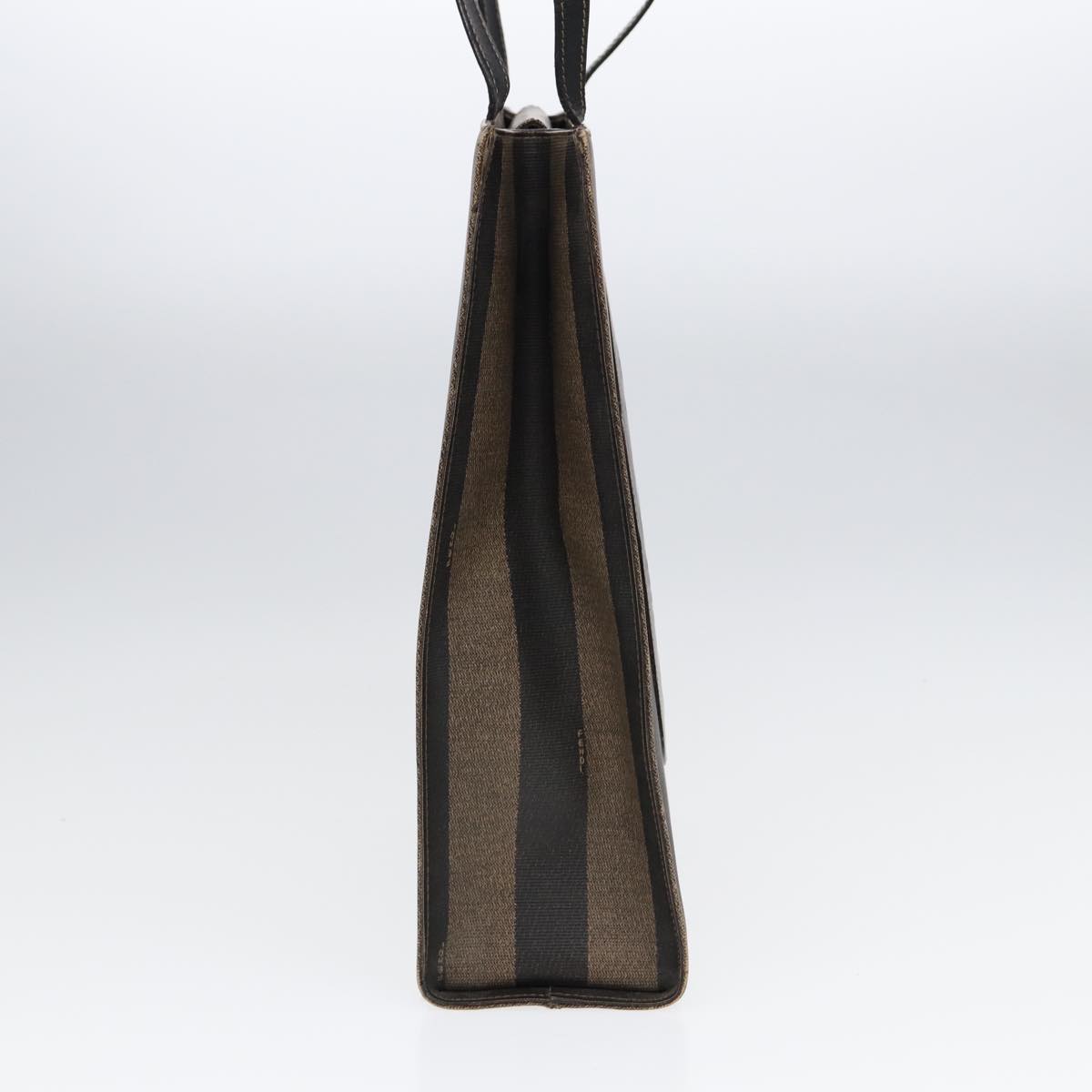 FENDI Pecan Canvas Tote Bag Brown Black gold Auth ep5527