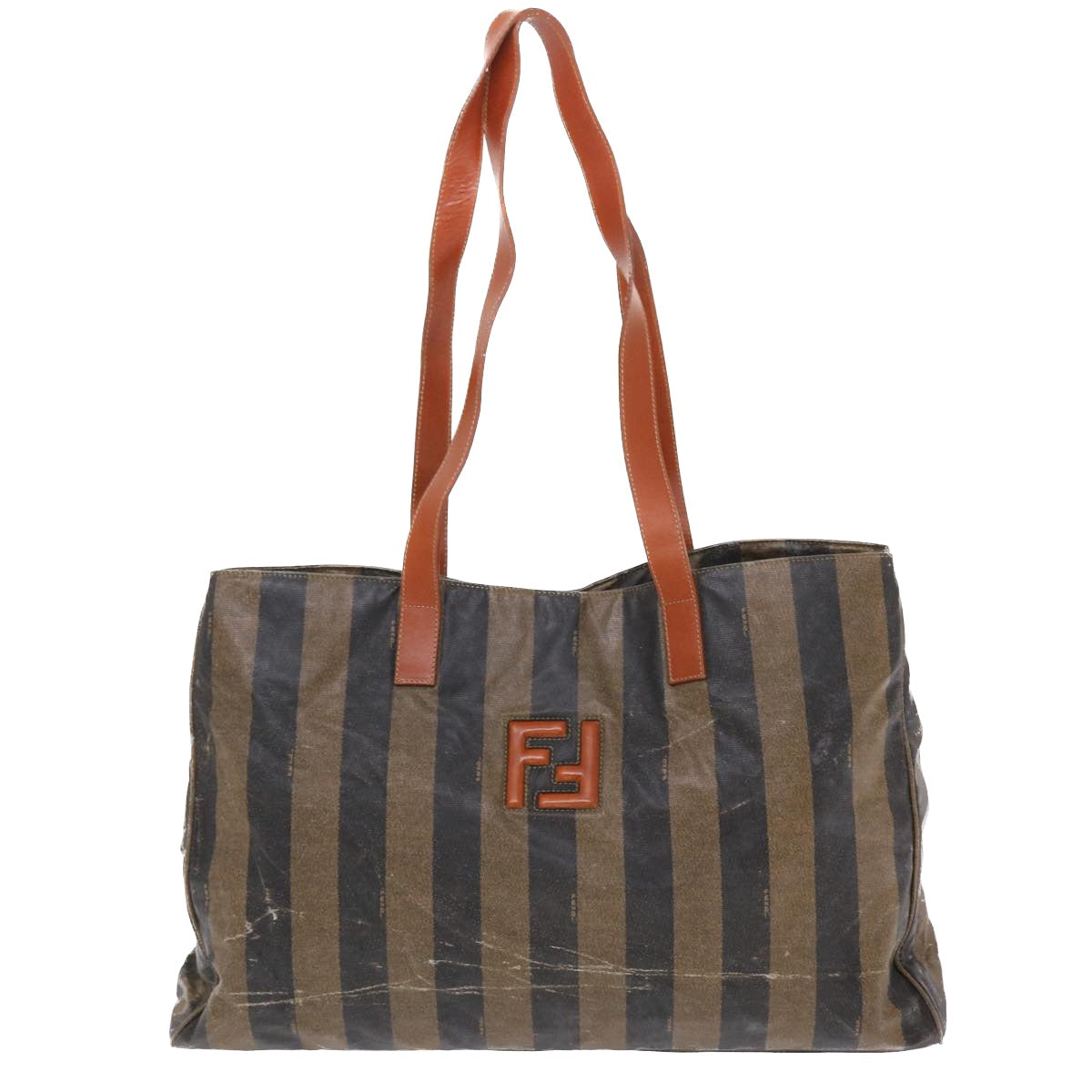 FENDI Pecan Canvas Tote Bag Coated Canvas Brown Black bs7173