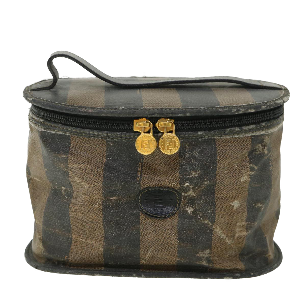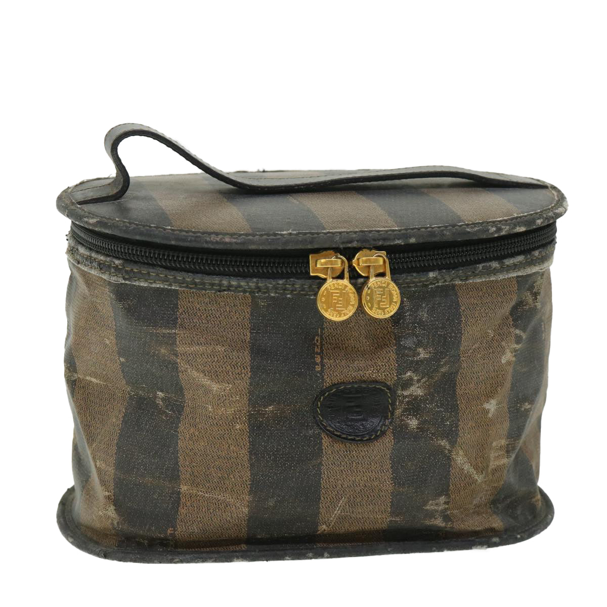 FENDI Pecan Canvas Vanity Cosmetic Pouch Black Brown Auth bs8733